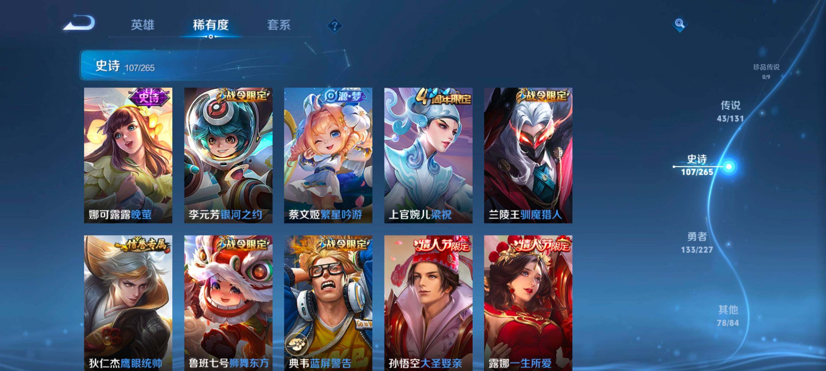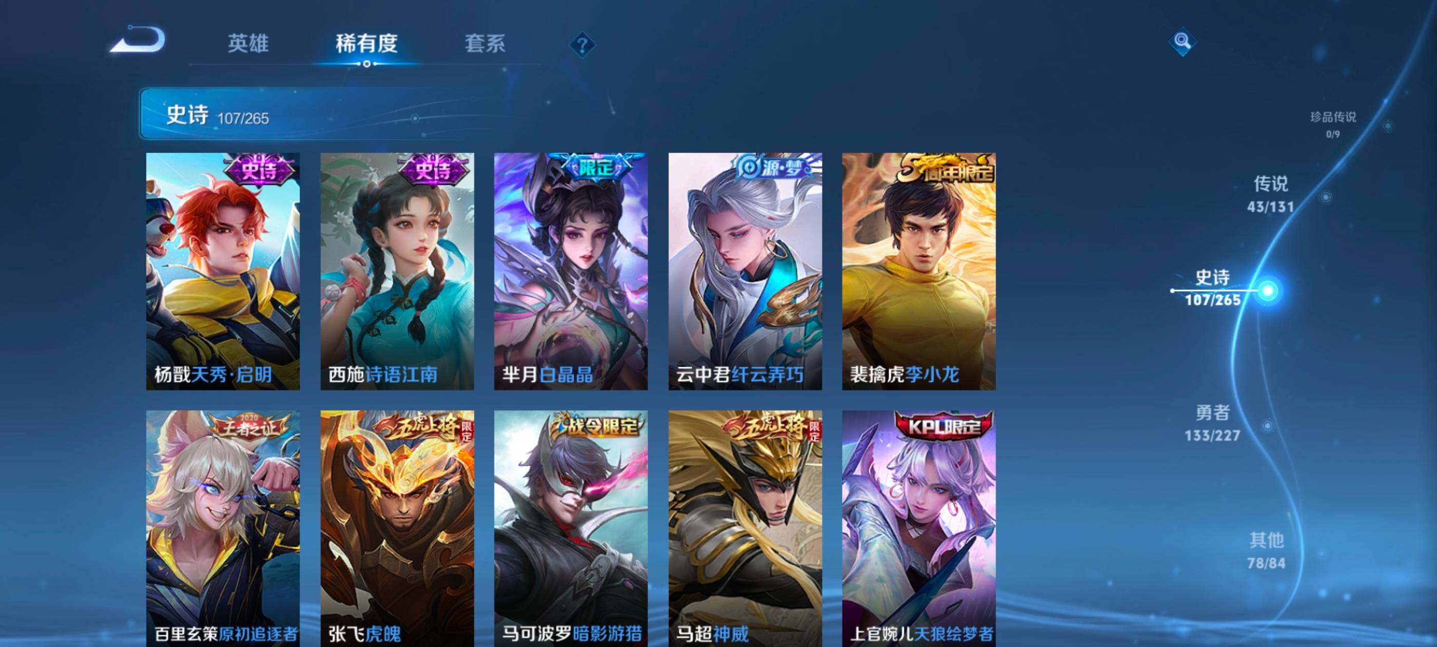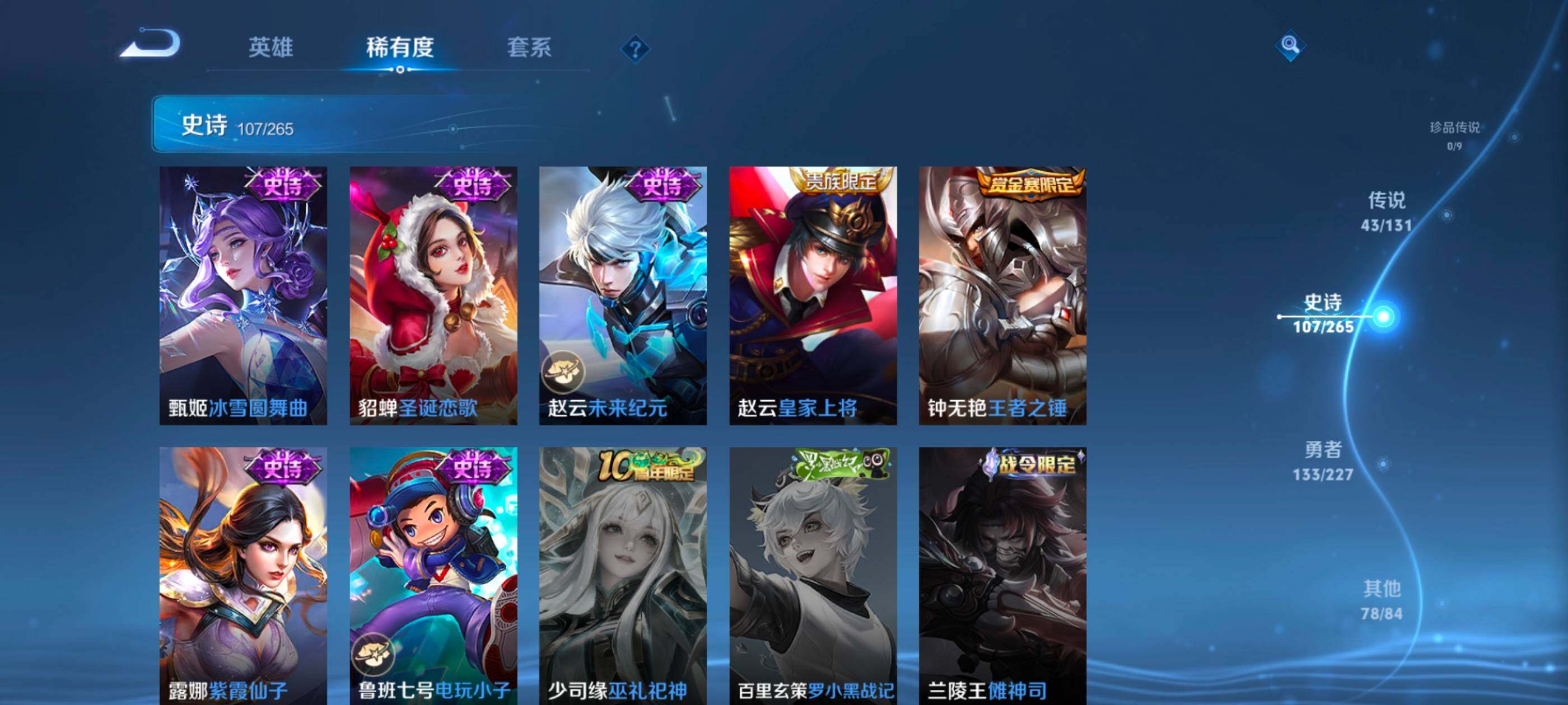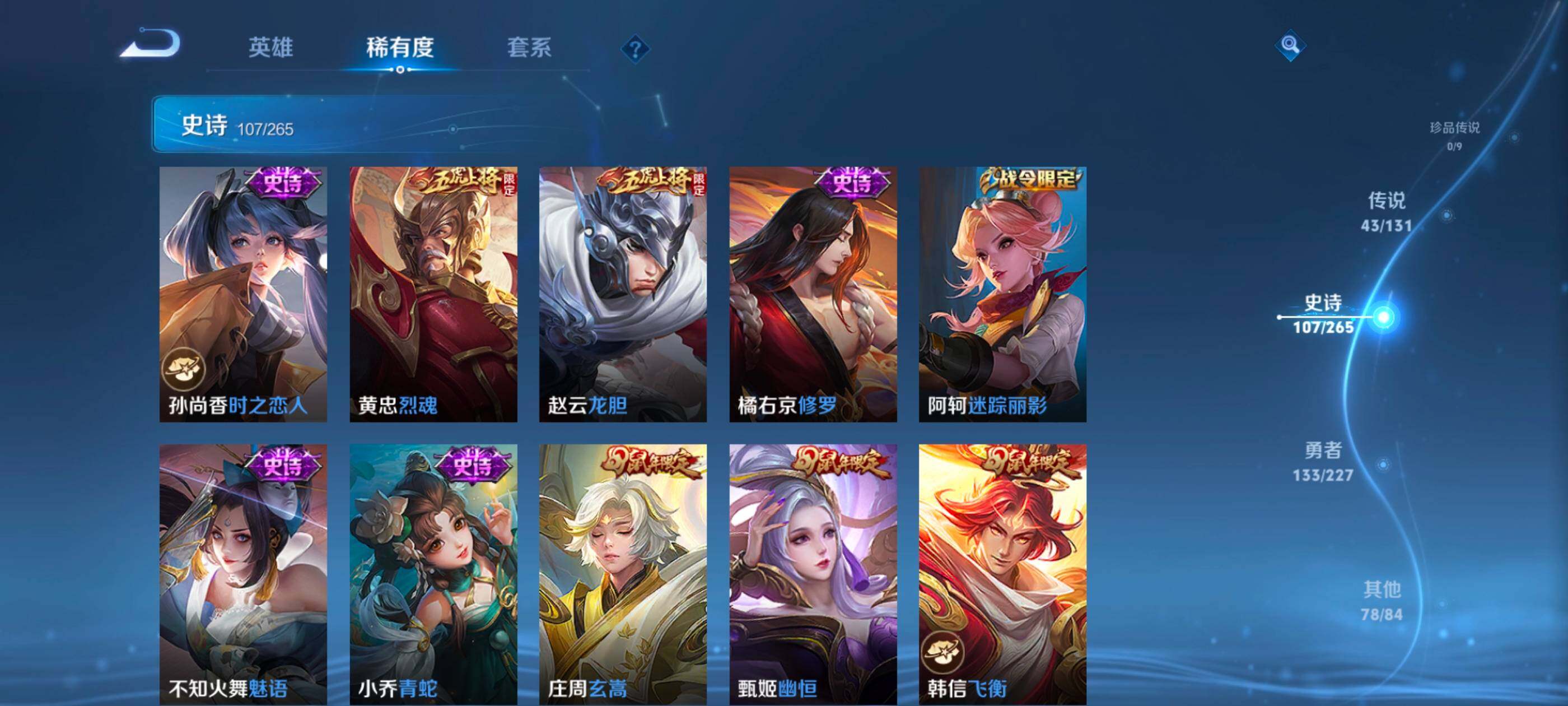安卓q-v10-最强王者段位-126英雄-364皮肤-2典藏皮肤-1无双-43传说-107史诗 【英雄全皮】:李信全皮,蒙恬全皮,夏洛特全皮,戈娅全皮 【荣耀典藏】:孙悟空全息碎影,李白鸣剑曳影 【无双皮肤】:妲己青丘九尾 【传说皮肤】:杨戬纵目迁山,后羿神树通天,桑启鸣野蒿,艾琳觅芳踪,东皇太一灼幽烈阳,诸葛亮鹤羽星尊,张飞百相守梦,公孙离记忆之芯,夏洛特浮生妄,干将莫邪画中仙,虞姬无限倾心,项羽无限倾心,伽罗炽翼辉光,孙悟空齐天大圣,小乔山海琳琅生,曜山海苍雷引,李信山海炽霜斩,吕布怒海麟威,李白诗剑行,狄仁杰神器狴犴令,百里守约碎云,马超无双飞将,赵云淬星耀世,西施游龙清影,周瑜音你心动,李元芳飞鸢探春,公孙离祈雪灵祝,铠绛天战甲,镜炽阳神光,虞姬启明星使,曜云鹰飞将,李信一念神魔,刘备时之恋人,貂蝉猫影幻舞,干将莫邪久胜战神,虞姬云霓雀翎,达摩黄金狮子座,百里玄策白虎志,后羿黄金射手座,李白凤求凰,孙尚香末日机甲,宫本武藏地狱之眼,孙悟空地狱火 【限定皮肤】:白起狰,狄仁杰阴阳师,虞姬凯尔特女王,小乔山海琳琅生,赵云皇家上将,赵云龙胆,墨子降魔,嬴政白昼王子,孙尚香蔷薇恋人,鲁班七号狮舞东方,庄周蜃楼王,庄周云端筑梦师,庄周玄嵩,阿轲迷踪丽影,钟无艳王者之锤,孙膑妖精王,扁鹊炼金王,扁鹊奇幻香踪,芈月白晶晶,吕布猎兽之王,周瑜赤莲之焰,元歌无心,夏侯惇朔风刀,甄姬幽恒,甄姬游园惊梦,曹操烛龙,典韦穷奇,典韦蓝屏警告,马可波罗暗影游猎,马可波罗山海玄木吟,狄仁杰魔术师,狄仁杰万华元夜,狄仁杰神器狴犴令,达摩沙漠行僧,项羽海滩派对,项羽无限倾心,老夫子醍醐杖,关羽百相守梦,程咬金演武夺筹,露娜一生所爱,刘邦夺宝奇兵,韩信飞衡,王昭君凤凰于飞,兰陵王驯魔猎人,兰陵王金庭之子,孙悟空至尊宝,孙悟空大圣娶亲,孙悟空齐天大圣,牛魔御旌,后羿辉光之辰,刘备百相守梦,张飞虎魄,张飞百相守梦,李元芳银河之约,李元芳云中旅人,虞姬启明星使,虞姬无限倾心,钟馗神迹守卫,钟馗驱傩正仪,杨戬潮玩骑兵,女娲朔望之晖,干将莫邪画中仙,蔡文姬繁星吟游,太乙真人饕餮,鬼谷子原初探秘者,鬼谷子五谷丰年,诸葛亮鹤羽星尊,黄忠烈魂,苏烈千军破阵,百里玄策白虎志,百里玄策原初追逐者,弈星混沌棋,公孙离祈雪灵祝,公孙离玉兔公主,沈梦溪星空之诺,沈梦溪大漠名商,沈梦溪匿光破解者,明世隐疑决卦,裴擒虎李小龙,裴擒虎擒涛扼浪,狂铁御狮,米莱狄御霄,瑶山海碧波行,云中君纤云弄巧,李信山海炽霜斩,伽罗炽翼辉光,盾山御銮,上官婉儿梁祝,上官婉儿天狼绘梦者,上官婉儿神器万象笔,嫦娥拒霜思,嫦娥暖冬兔眠,曜山海苍雷引,西施玲珑珍味,鲁班大师探海日志,盘古冰霜神祇,桑启海盐诗旅,夏洛特浮生妄,暃星界游侠,戈娅驭风魔法,艾琳女武神,艾琳流音漫舞,赵怀真鹤归松栖,阿古朵江河有灵,张良古海寻踪,艾琳觅芳踪,蒙恬荣光圣徽,鬼谷子天穹祈灯,周瑜熔金海岸 【年限皮肤】:百里玄策白虎志,王昭君凤凰于飞,李白凤求凰,后羿辉光之辰,公孙离祈雪灵祝,甄姬幽恒,韩信飞衡,庄周玄嵩,马超神威,黄忠烈魂,张飞虎魄,赵云龙胆,瑶山海碧波行,马可波罗山海玄木吟,李信山海炽霜斩,小乔山海琳琅生,曜山海苍雷引,伽罗炽翼辉光 【赛季限定】:庄周蜃楼王,孙膑妖精王,扁鹊炼金王,白起狰,夏侯惇朔风刀,曹操烛龙,典韦穷奇,狄仁杰万华元夜,达摩沙漠行僧,老夫子醍醐杖,程咬金演武夺筹,兰陵王金庭之子,张良古海寻踪,牛魔御旌,李元芳云中旅人,虞姬凯尔特女王,钟馗驱傩正仪,太乙真人饕餮,鬼谷子原初探秘者,苏烈千军破阵,百里玄策原初追逐者,弈星混沌棋,沈梦溪大漠名商,明世隐疑决卦,裴擒虎擒涛扼浪,狂铁御狮,米莱狄御霄,盾山御銮,鲁班大师探海日志,桑启海盐诗旅,鬼谷子天穹祈灯,蒙恬荣光圣徽 【战令限定】:嬴政白昼王子,鲁班七号狮舞东方,阿轲迷踪丽影,扁鹊奇幻香踪,吕布猎兽之王,周瑜赤莲之焰,典韦蓝屏警告,马可波罗暗影游猎,刘邦夺宝奇兵,兰陵王驯魔猎人,艾琳流音漫舞,李元芳银河之约,钟馗神迹守卫,杨戬潮玩骑兵,女娲朔望之晖,沈梦溪星空之诺,嫦娥暖冬兔眠,西施玲珑珍味,暃星界游侠,戈娅驭风魔法 【史诗皮肤】:鲁班七号电玩小子,露娜紫霞仙子,钟无艳王者之锤,赵云皇家上将,赵云未来纪元,貂蝉圣诞恋歌,甄姬冰雪圆舞曲,王昭君偶像歌手,狄仁杰魔术师,廉颇地狱岩魂,宫本武藏鬼剑武藏,孙尚香蔷薇恋人,孙尚香水果甜心,嬴政摇滚巨星,妲己魅力维加斯,妲己女仆咖啡,墨子金属风暴,吕布圣诞狂欢,刘禅绅士熊喵,曹操幽灵船长,李白千年之狐,吕布末日机甲,张飞乱世虎臣,韩信白龙吟,王昭君凤凰于飞,孙悟空至尊宝,花木兰水晶猎龙者,刘邦德古拉伯爵,夏侯惇乘风破浪,小乔缤纷独角兽,诸葛亮黄金分割率,甄姬游园惊梦,亚瑟心灵战警,雅典娜冰冠公主,安琪拉心灵骇客,后羿辉光之辰,庄周云端筑梦师,百里守约特工魅影,铠曙光守护者,蔡文姬舞动绿茵,李元芳逐浪之夏,程咬金功夫厨神,白起星夜王子,阿轲节奏热浪,嬴政白昼王子,孙策猫狗日记,大乔猫狗日记,露娜一生所爱,孙悟空大圣娶亲,典韦蓝屏警告,鲁班七号狮舞东方,狄仁杰鹰眼统帅,兰陵王驯魔猎人,上官婉儿梁祝,蔡文姬繁星吟游,李元芳银河之约,娜可露露晚萤,韩信飞衡,甄姬幽恒,庄周玄嵩,小乔青蛇,不知火舞魅语,阿轲迷踪丽影,橘右京修罗,马超神威,赵云龙胆,黄忠烈魂,孙尚香