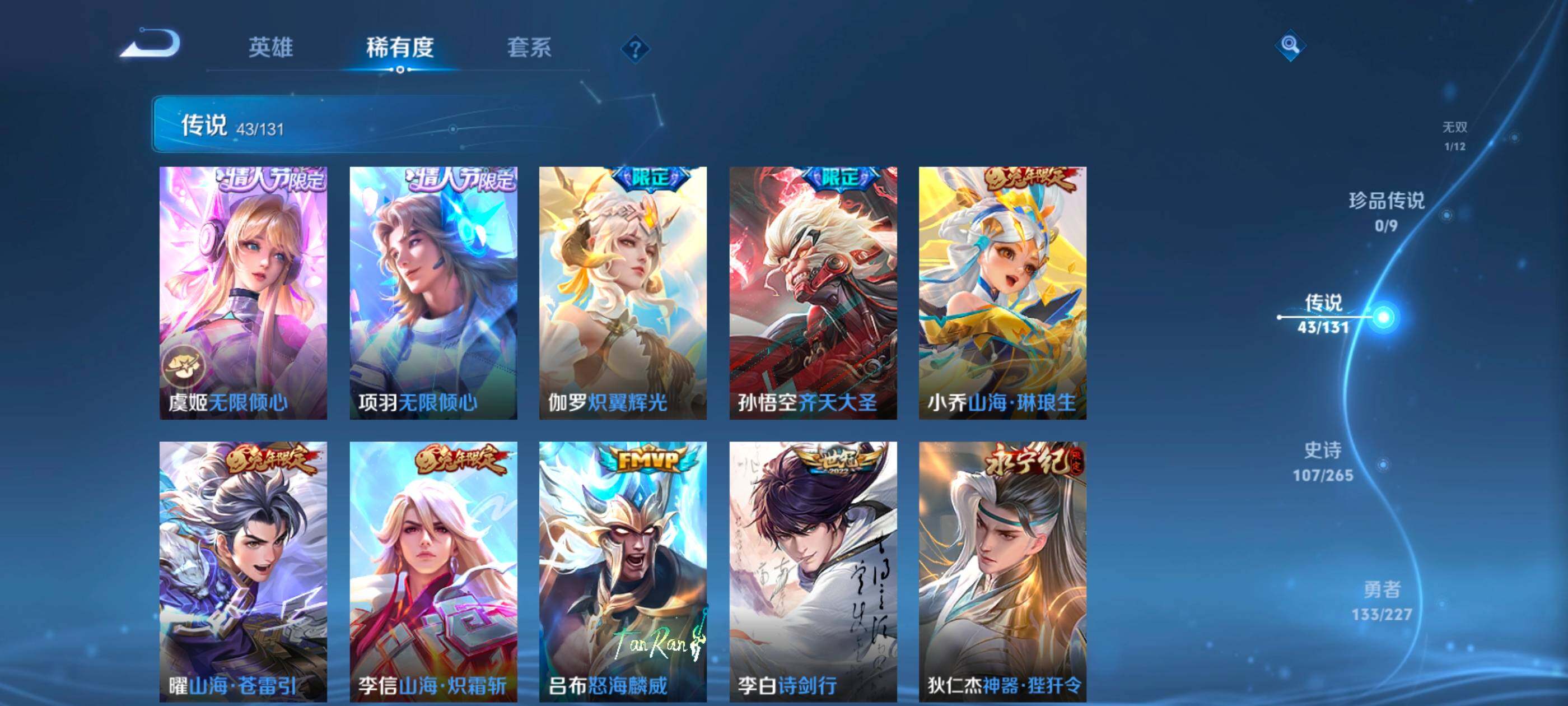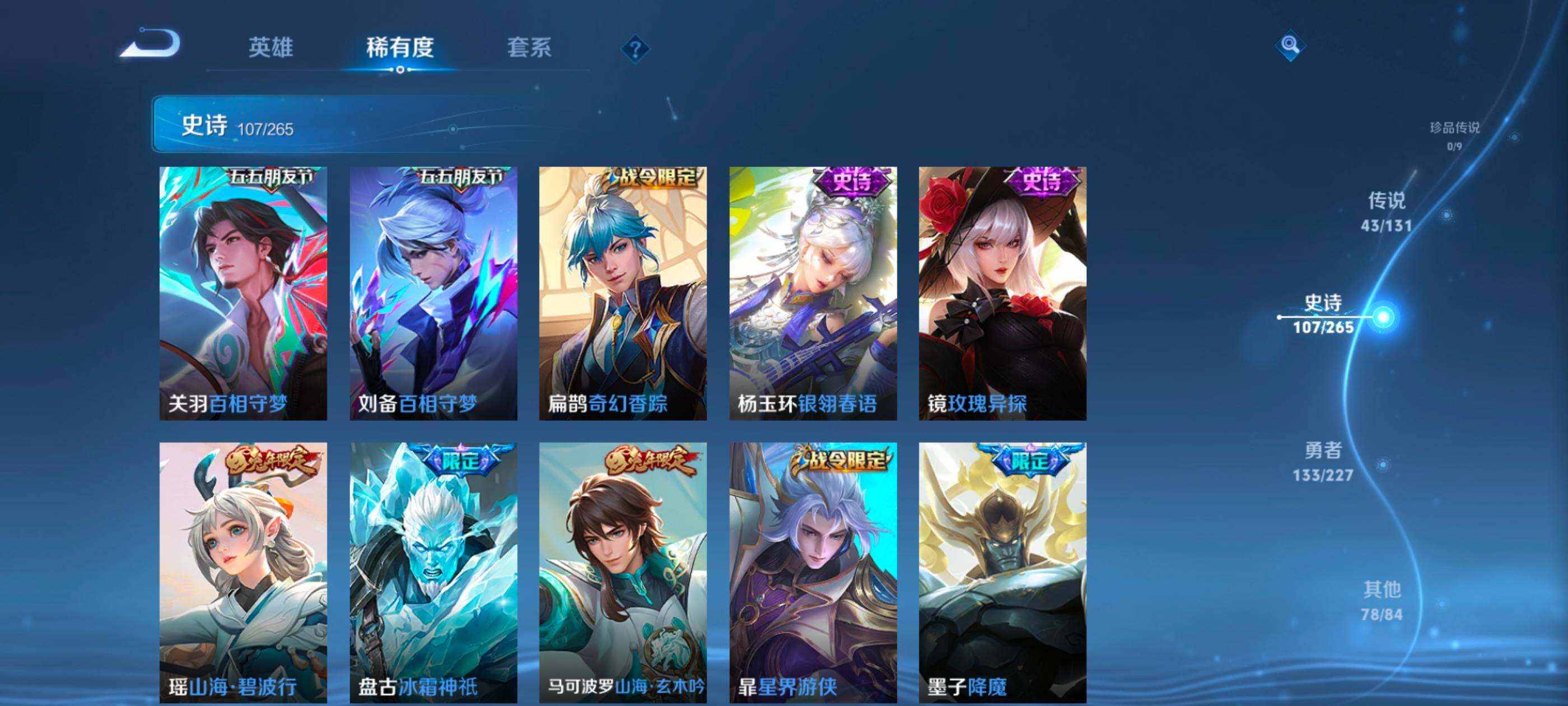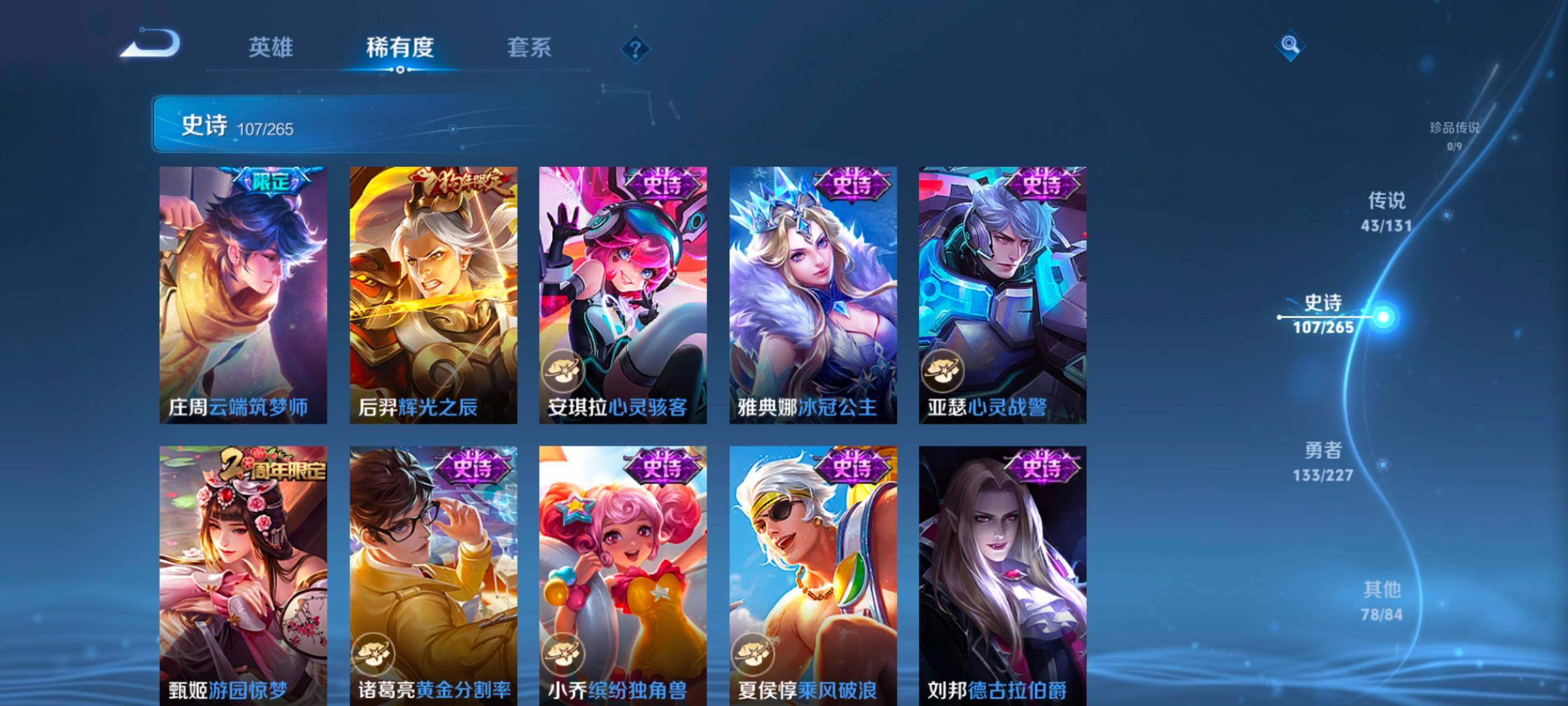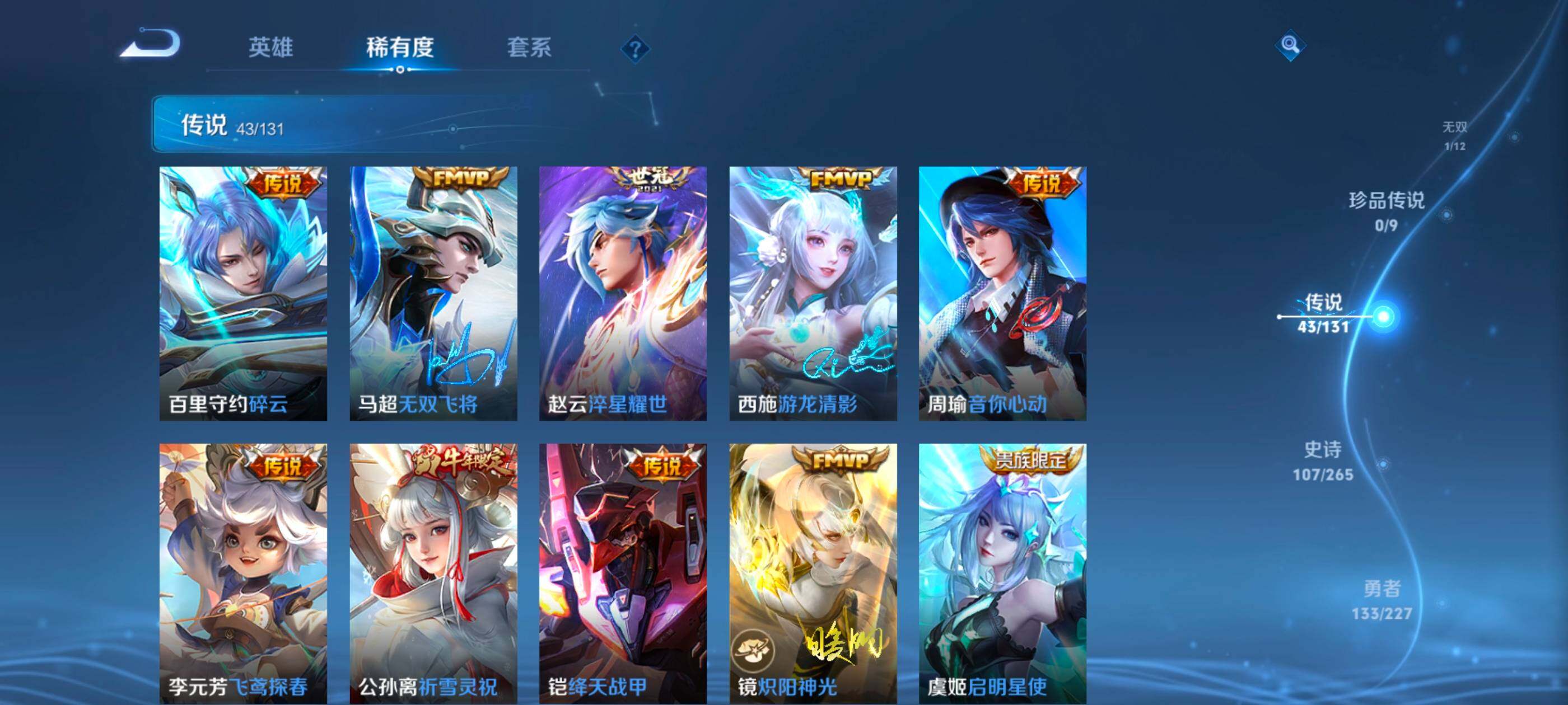 安卓q-v10-最强王者段位-126英雄-364皮肤-2典藏皮肤-1无双-43传说-107史诗 【英雄全皮】:李信全皮,蒙恬全皮,夏洛特全皮,戈娅全皮 【荣耀典藏】:孙悟空全息碎影,李白鸣剑曳影 【无双皮肤】:妲己青丘九尾 【传说皮肤】:杨戬纵目迁山,后羿神树通天,桑启鸣野蒿,艾琳觅芳踪,东皇太一灼幽烈阳,诸葛亮鹤羽星尊,张飞百相守梦,公孙离记忆之芯,夏洛特浮生妄,干将莫邪画中仙,虞姬无限倾心,项羽无限倾心,伽罗炽翼辉光,孙悟空齐天大圣,小乔山海琳琅生,曜山海苍雷引,李信山海炽霜斩,吕布怒海麟威,李白诗剑行,狄仁杰神器狴犴令,百里守约碎云,马超无双飞将,赵云淬星耀世,西施游龙清影,周瑜音你心动,李元芳飞鸢探春,公孙离祈雪灵祝,铠绛天战甲,镜炽阳神光,虞姬启明星使,曜云鹰飞将,李信一念神魔,刘备时之恋人,貂蝉猫影幻舞,干将莫邪久胜战神,虞姬云霓雀翎,达摩黄金狮子座,百里玄策白虎志,后羿黄金射手座,李白凤求凰,孙尚香末日机甲,宫本武藏地狱之眼,孙悟空地狱火 【限定皮肤】:白起狰,狄仁杰阴阳师,虞姬凯尔特女王,小乔山海琳琅生,赵云皇家上将,赵云龙胆,墨子降魔,嬴政白昼王子,孙尚香蔷薇恋人,鲁班七号狮舞东方,庄周蜃楼王,庄周云端筑梦师,庄周玄嵩,阿轲迷踪丽影,钟无艳王者之锤,孙膑妖精王,扁鹊炼金王,扁鹊奇幻香踪,芈月白晶晶,吕布猎兽之王,周瑜赤莲之焰,元歌无心,夏侯惇朔风刀,甄姬幽恒,甄姬游园惊梦,曹操烛龙,典韦穷奇,典韦蓝屏警告,马可波罗暗影游猎,马可波罗山海玄木吟,狄仁杰魔术师,狄仁杰万华元夜,狄仁杰神器狴犴令,达摩沙漠行僧,项羽海滩派对,项羽无限倾心,老夫子醍醐杖,关羽百相守梦,程咬金演武夺筹,露娜一生所爱,刘邦夺宝奇兵,韩信飞衡,王昭君凤凰于飞,兰陵王驯魔猎人,兰陵王金庭之子,孙悟空至尊宝,孙悟空大圣娶亲,孙悟空齐天大圣,牛魔御旌,后羿辉光之辰,刘备百相守梦,张飞虎魄,张飞百相守梦,李元芳银河之约,李元芳云中旅人,虞姬启明星使,虞姬无限倾心,钟馗神迹守卫,钟馗驱傩正仪,杨戬潮玩骑兵,女娲朔望之晖,干将莫邪画中仙,蔡文姬繁星吟游,太乙真人饕餮,鬼谷子原初探秘者,鬼谷子五谷丰年,诸葛亮鹤羽星尊,黄忠烈魂,苏烈千军破阵,百里玄策白虎志,百里玄策原初追逐者,弈星混沌棋,公孙离祈雪灵祝,公孙离玉兔公主,沈梦溪星空之诺,沈梦溪大漠名商,沈梦溪匿光破解者,明世隐疑决卦,裴擒虎李小龙,裴擒虎擒涛扼浪,狂铁御狮,米莱狄御霄,瑶山海碧波行,云中君纤云弄巧,李信山海炽霜斩,伽罗炽翼辉光,盾山御銮,上官婉儿梁祝,上官婉儿天狼绘梦者,上官婉儿神器万象笔,嫦娥拒霜思,嫦娥暖冬兔眠,曜山海苍雷引,西施玲珑珍味,鲁班大师探海日志,盘古冰霜神祇,桑启海盐诗旅,夏洛特浮生妄,暃星界游侠,戈娅驭风魔法,艾琳女武神,艾琳流音漫舞,赵怀真鹤归松栖,阿古朵江河有灵,张良古海寻踪,艾琳觅芳踪,蒙恬荣光圣徽,鬼谷子天穹祈灯,周瑜熔金海岸 【年限皮肤】:百里玄策白虎志,王昭君凤凰于飞,李白凤求凰,后羿辉光之辰,公孙离祈雪灵祝,甄姬幽恒,韩信飞衡,庄周玄嵩,马超神威,黄忠烈魂,张飞虎魄,赵云龙胆,瑶山海碧波行,马可波罗山海玄木吟,李信山海炽霜斩,小乔山海琳琅生,曜山海苍雷引,伽罗炽翼辉光 【赛季限定】:庄周蜃楼王,孙膑妖精王,扁鹊炼金王,白起狰,夏侯惇朔风刀,曹操烛龙,典韦穷奇,狄仁杰万华元夜,达摩沙漠行僧,老夫子醍醐杖,程咬金演武夺筹,兰陵王金庭之子,张良古海寻踪,牛魔御旌,李元芳云中旅人,虞姬凯尔特女王,钟馗驱傩正仪,太乙真人饕餮,鬼谷子原初探秘者,苏烈千军破阵,百里玄策原初追逐者,弈星混沌棋,沈梦溪大漠名商,明世隐疑决卦,裴擒虎擒涛扼浪,狂铁御狮,米莱狄御霄,盾山御銮,鲁班大师探海日志,桑启海盐诗旅,鬼谷子天穹祈灯,蒙恬荣光圣徽 【战令限定】:嬴政白昼王子,鲁班七号狮舞东方,阿轲迷踪丽影,扁鹊奇幻香踪,吕布猎兽之王,周瑜赤莲之焰,典韦蓝屏警告,马可波罗暗影游猎,刘邦夺宝奇兵,兰陵王驯魔猎人,艾琳流音漫舞,李元芳银河之约,钟馗神迹守卫,杨戬潮玩骑兵,女娲朔望之晖,沈梦溪星空之诺,嫦娥暖冬兔眠,西施玲珑珍味,暃星界游侠,戈娅驭风魔法 【史诗皮肤】:鲁班七号电玩小子,露娜紫霞仙子,钟无艳王者之锤,赵云皇家上将,赵云未来纪元,貂蝉圣诞恋歌,甄姬冰雪圆舞曲,王昭君偶像歌手,狄仁杰魔术师,廉颇地狱岩魂,宫本武藏鬼剑武藏,孙尚香蔷薇恋人,孙尚香水果甜心,嬴政摇滚巨星,妲己魅力维加斯,妲己女仆咖啡,墨子金属风暴,吕布圣诞狂欢,刘禅绅士熊喵,曹操幽灵船长,李白千年之狐,吕布末日机甲,张飞乱世虎臣,韩信白龙吟,王昭君凤凰于飞,孙悟空至尊宝,花木兰水晶猎龙者,刘邦德古拉伯爵,夏侯惇乘风破浪,小乔缤纷独角兽,诸葛亮黄金分割率,甄姬游园惊梦,亚瑟心灵战警,雅典娜冰冠公主,安琪拉心灵骇客,后羿辉光之辰,庄周云端筑梦师,百里守约特工魅影,铠曙光守护者,蔡文姬舞动绿茵,李元芳逐浪之夏,程咬金功夫厨神,白起星夜王子,阿轲节奏热浪,嬴政白昼王子,孙策猫狗日记,大乔猫狗日记,露娜一生所爱,孙悟空大圣娶亲,典韦蓝屏警告,鲁班七号狮舞东方,狄仁杰鹰眼统帅,兰陵王驯魔猎人,上官婉儿梁祝,蔡文姬繁星吟游,李元芳银河之约,娜可露露晚萤,韩信飞衡,甄姬幽恒,庄周玄嵩,小乔青蛇,不知火舞魅语,阿轲迷踪丽影,橘右京修罗,马超神威,赵云龙胆,黄忠烈魂,孙尚香