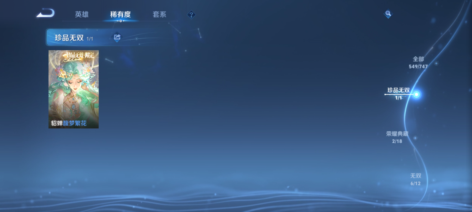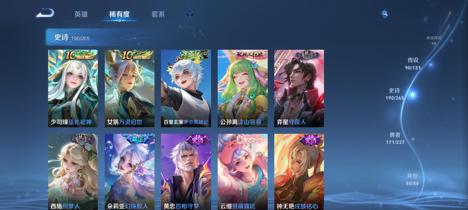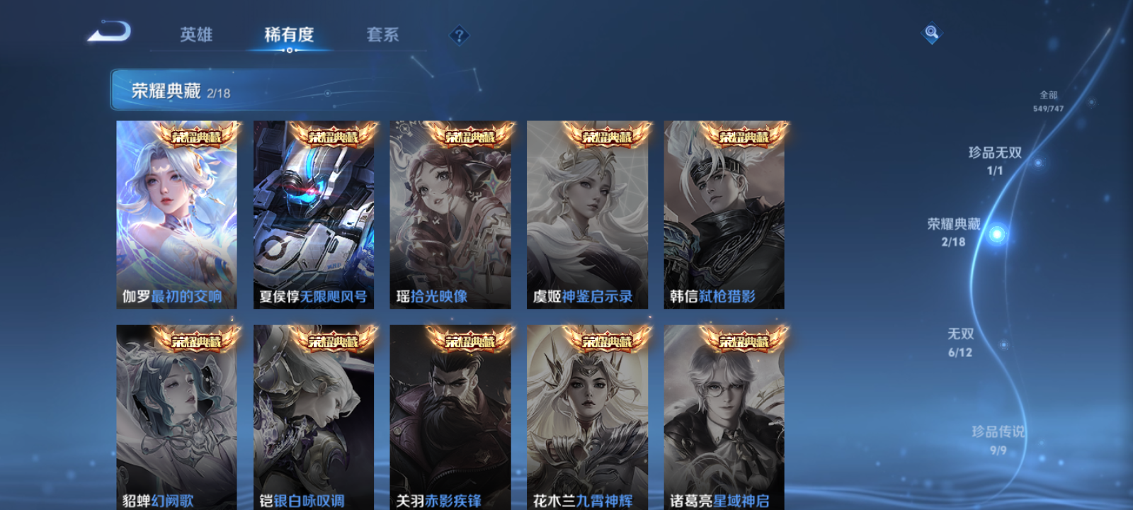 【王者荣耀】【lywz24297】珍品无双1 典藏2 无双6 珍品传说9 传说90 史诗190 英雄128 皮肤549 贵族荣耀级 珍品无双:馥梦繁花__荣耀典藏:无限飓风号|武则天|最初的交响__无双皮肤:群星魔术团|时之魔女|真我赫兹|雪境奇遇|器灵·螭龙剑|天机白泽__珍品传说:江户川柯南|怪盗基德|孙策-时之奇旅|器灵·落星盏|兔狲·蓬尾|大耳狗之梦|酷洛米之心|朽木白哉|黑崎一护__传说皮肤:鸣野蒿|枫霜尽|音你闪耀|深海之息|无双飞将|挚爱花嫁|挚爱之约|启示之音|花朝如约|补天|异界灵契|绛天战甲|炽阳神光|启明星使|胖达荣荣|地狱之眼|地狱火|海洋之心|孙策-末日机甲|云霓雀翎|久胜战神|黄金狮子座|黄金射手座|黄金白羊座|猫影幻舞|刘备-时之恋人|一念神魔|云鹰飞将|冠军飞将|飞鸢探春|李|游龙清影|乞巧织情|淬星耀世|炽翼辉光|绯月行|浮生妄|鹤羽星尊|画中仙|白虎志|惊梅引|兰陵王-默契交锋|零号·赤焰|鲁班七号-时之奇旅|落雪白狼|怒海麟威|祈雪灵祝|燃星之曲|诗剑行|时雨天司|碎云|太华|天魔缭乱|妄想奇谈|妄想实况|武陵仙君|武圣|小乔-音你心动|寅虎·瑞焰|影龙天霄|永曜之星|遇见胡旋|战鼓燎原|周瑜-音你心动|觅芳踪|神器·狴犴令|寅虎·赤拳|至美·化雀舞|灼幽烈阳|映山客|玄雷天君|幻光神呛|祥瑞亨通|愿照·岁时盈|愿照·山河定|愿照·九州拓|愿照·众生和|愿照·福禄聚|星之鸣奏|愿照·千秋盛|千劫归真|续相思|云诺千山|九山相柳|死亡执政官|诡秘之主|千山共赴|神树通天|纵目迁山__稀有限定:寅虎·御盾|寅虎·展翼|寅虎·心曲|奔雷神使|御风骁将|白晶晶|至尊宝|青龙志|玄武志|朱雀志|大圣娶亲|一生所爱|引擎之心|岱宗|玄嵩|幽恒|飞衡|奇迹圣诞|虎魄|神威|烈魂|龙胆|青春决赛季|白鹤梁神女|乒乒小将|孙行者|猪悟能|女儿国国王|傲雪梅呛|玉兔公主|李小龙|山海·碧波行|山海·玄木吟|神器·万象笔|唐三藏|拒霜思|暗影游猎|百木心呛|冰锋战神|冰霜恋舞曲|冰霜神祇|嫦娥-如梦令|妲己-时之奇旅|大漠名商|繁星吟游|高山流水|古海寻踪|海滩派对|海盐诗旅|航海奇遇记|后羿-如梦令|皇家上将|辉光之辰|混沌棋|剑破天穹|降魔|金庭之子|凯尔特女王|狂想玩偶喵|炼金王|迷踪丽影|魔术师|花木兰-默契交锋|匿光决锋者|匿光破解者|匿光侦查者|匿光追影者|女武神|千军破阵|擒涛扼浪|青焰无极|驱傩正仪|荣光圣徽|沙漠行僧|朔风刀|探海日志|醍醐杖|天狼绘梦者|天狼溯光者|天狼运算者|天穹祈灯|阿古朵-顽趣|万华元夜|无心|五谷丰年|午后时光|纤云弄巧|项羽-霸王别姬|星空之诺|演武夺筹|夜都怪侠|疑决卦|阴阳师|银河之约|优雅恋人|遇见飞天|御銮|云间偶戏|真爱魔法|逐梦之光|逐梦之影|暗夜贵公子|暗夜猫娘|暗隐猎兽者|暗渊魔法|白龙吟|白蛇|缤纷独角兽|冰冠公主|冰雪圆舞曲|苍穹之光|乘风破浪|乘龙·聚宝船|大乔-猫狗日记|德古拉伯爵|地狱岩魂|电玩·爆裂旋风|电玩小子|伽罗-琥珀纪元|功夫厨神|鬼剑武藏|唤灵魅影|黄金分割率|箭羽风息|节奏热浪|金属风暴|莱西奥-末日机甲|乐园奇幻夜|龙鼓争鸣|龙骑士|吕布-末日机甲|魅力维加斯|魅语|女仆咖啡|偶像歌手|奇遇舞章|千筹问战|青蛇|赏金猎手|绅士熊喵|圣诞狂欢|圣诞恋歌|诗语江南|水果甜心|水晶猎龙者|孙策-猫狗日记|滕王阁序|天才门将|天秀·幻梦|天秀·启明|天秀·音浪|完美假期|晚萤|赵云-未来纪元|闲日渔趣|星夜王子|雪上飞焰|雪夜绮愿|摇滚巨星|夜落电台|鹰眼统帅|永昼|幽灵船长|遇见神鹿|月团寄思|至美·乘鲤谣|钟无艳-超时空战士|逐浪之夏|紫霞仙子|百里守约-百相守梦|老夫子-百相守梦|谪仙醉月|噬灭天穹|敬我三分|撼地雄心|破空之剑|东方月初|涂山红红|霜北刀|天穹之誓|安琪拉-时之奇旅|修罗|曙光守护者|心灵战警|千年之狐|关羽-百相守梦|孙尚香-时之恋人|无限星赏官|舞动绿茵|特工魅影|心灵骇客|飞车小橘子|茶境仙|谧流熔炉|苍鳞隐世|万物之道|器灵·浮梦炉|糖绘人间|狼魂孤将|绮世丹青|瑰影绮梦|化蝶舞|狰|烛龙|原初探秘者|云中旅人|单词大作战|孙悟空-神迹守卫|达摩-星际陆战队|访茗客|灵卜魔法|夺宝奇兵|苍威无极|圣弓游侠|墨子-神迹守卫|落雪兰心|死神来了|刘禅-鸭鸭历险记|沈梦溪-鸭鸭历险记|灵蛊蚀心|藏狐·褐绒|雪豹·霜爪|龙之律动|布丁狗之约|虚灵犬护|布丁狗之誓|小牛鸭|石田雨龙|逆浪荇歌|孙策-百相守梦|周瑜-百相守梦|戍鼓铭心|赞萌露比|幻珠鲛人|黄忠-百相守梦|织梦人|守夜人|涂山容容|百里玄策-罗小黑战记|荣光之誓|万灵启世|巫礼祀神|鹤鸣心笺__优质皮肤:尼罗河女神|一千零一夜|创世神祝|年年有余|埃及法老|孤猎|木偶奇遇记|熊喵少女|午夜歌剧院|露花倒影|未来旅行|激情绿茵|海之征途|天启骑士|碧珀绯影|秩序猎龙将|锦衣卫|冰刃幻境|森|超能战警|英喵野望|维京掠夺者|海军大将|绯红之刃|踏雪寻梅|启蛰|战争骑士|伊势巫女|画中游|生化警戒|威尼斯狂欢|第七人偶|潮流仙人|芝加哥教父|街头旋风|绝影神呛|地府判官|荷鲁斯之眼|幸存者|赤焰之缨|福禄兄弟|隐刃|前尘|特种部队|三太子|精灵王|剑舞者|范海辛|星航指挥官|龙域领主|爱与和平|占星师|花间舞|魇语军师|极冰防御线|花见巫女|棒球奇才|东海龙王|蔷薇王座|灼热之刃|精准探案法|圣殿之光|帝国元帅|战争女神|霓裳曲|加勒比小姐|阿摩司公爵|异域舞娘|精灵公主|修竹墨客|万圣前夜|长夏之忆|异域游侠|暗都幽影|功夫炙烤|潮