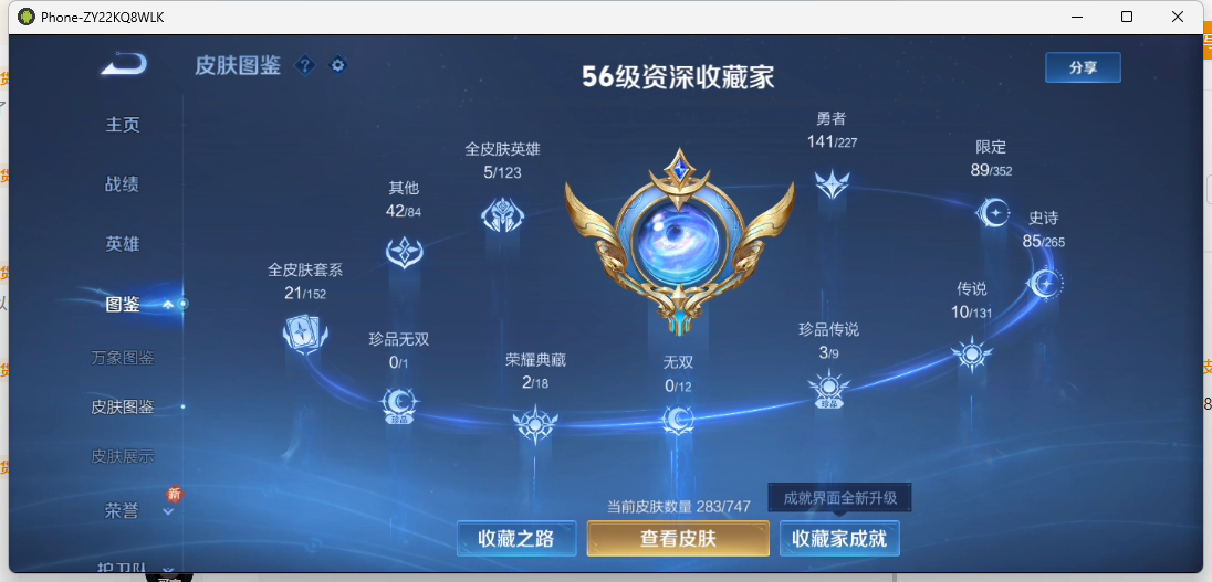 _2320833-实名:可修改性别:男号贵族等级:v7英雄数:127皮肤数:283荣耀水晶:银白咏叹调神鉴启示录珍品传说:江户川柯南怪盗基德大耳狗之梦星传说:幽冥之眼星际治安官传说皮:久胜战神地狱之眼游龙清影超时空战士-狄仁杰金乌负日幻光神呛神树通天限定皮:梁祝五谷丰年鸣野蒿陌上桑逐霄战戟愿照·岁时盈愿照·九州拓亮点:【精品号手慢无】典藏银白咏叹调神鉴启示录珍品传说江户川柯南怪盗基德大耳狗之梦热门限定皮愿照岁时盈愿照·九州拓星传说幽冥之眼星际治安官7个性按键4000星币