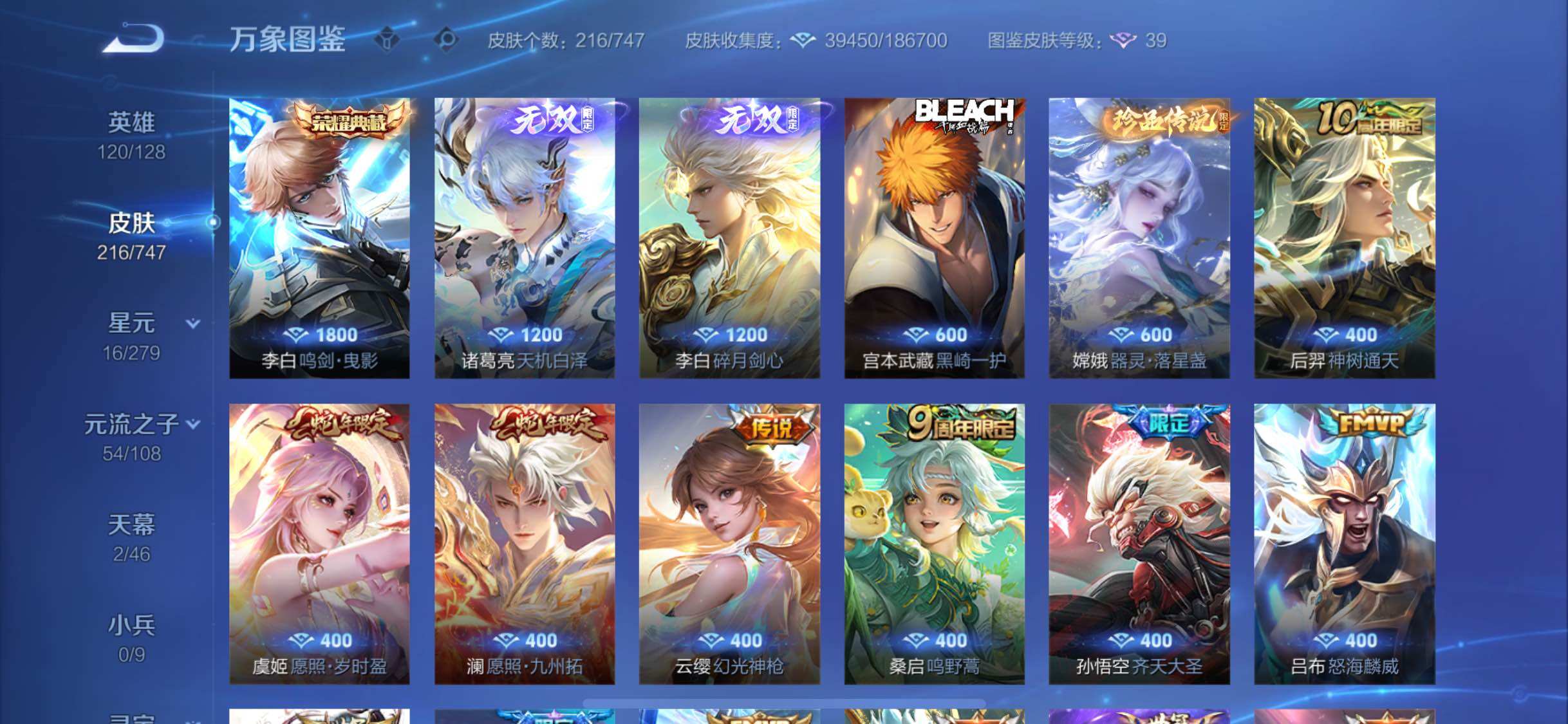【精品v9·鸣剑曳影·碎月剑心·天机白泽·器灵落星盏·黑崎一护·:箭叩九天天幕·金色貂蝉·愿照九州拓·愿照岁时盈·齐天大圣·怒海麟威·诗剑行·深海之息·无双飞将·乞巧织情·祈雪灵祝·炽阳神光·可二次】w8637-苹果q-120英雄-216皮肤-5王者印记-33铭文-贵族积分11w【贵族9】【1典藏·2无双·2珍品·1星传说·26传说·2天幕·19按键】【因赛季更新游戏段付以上号为准!】 【
