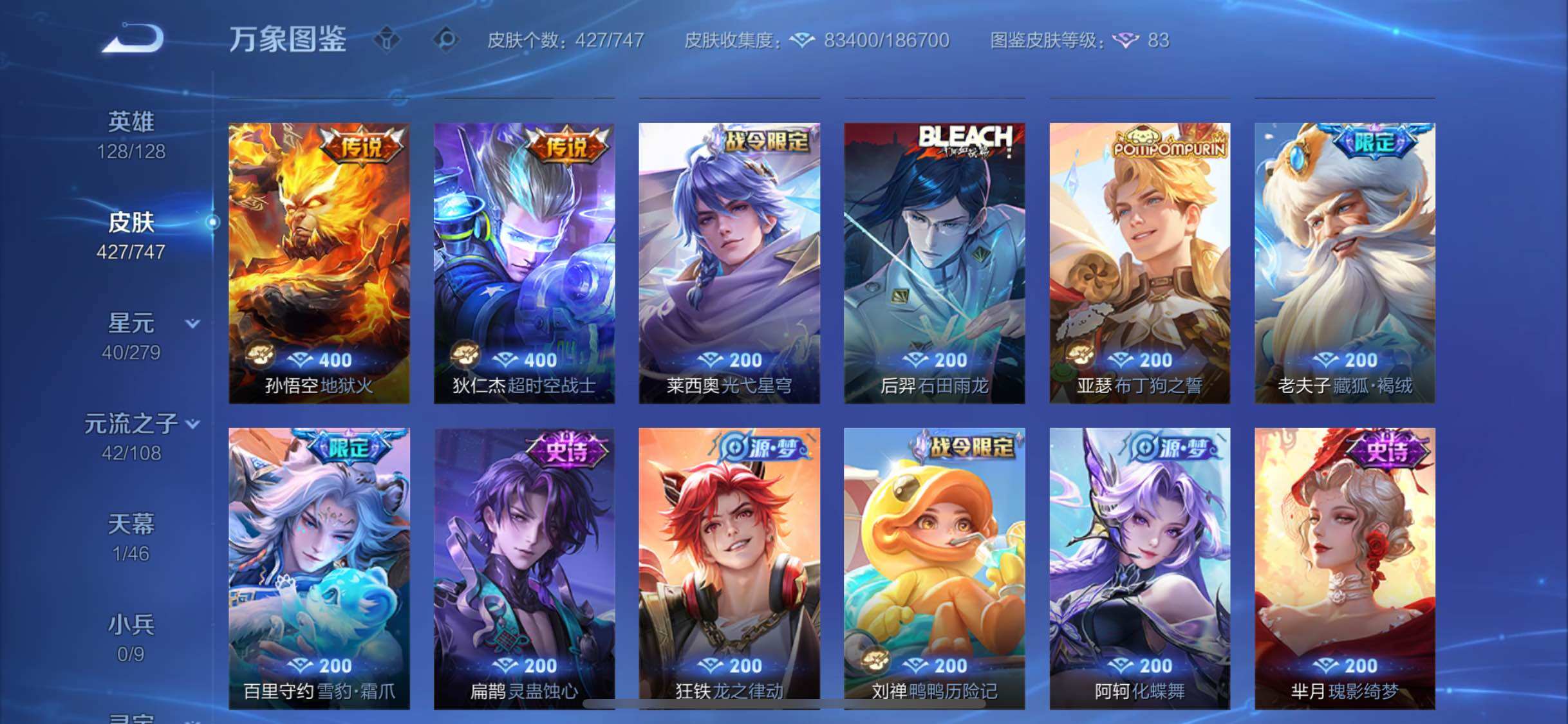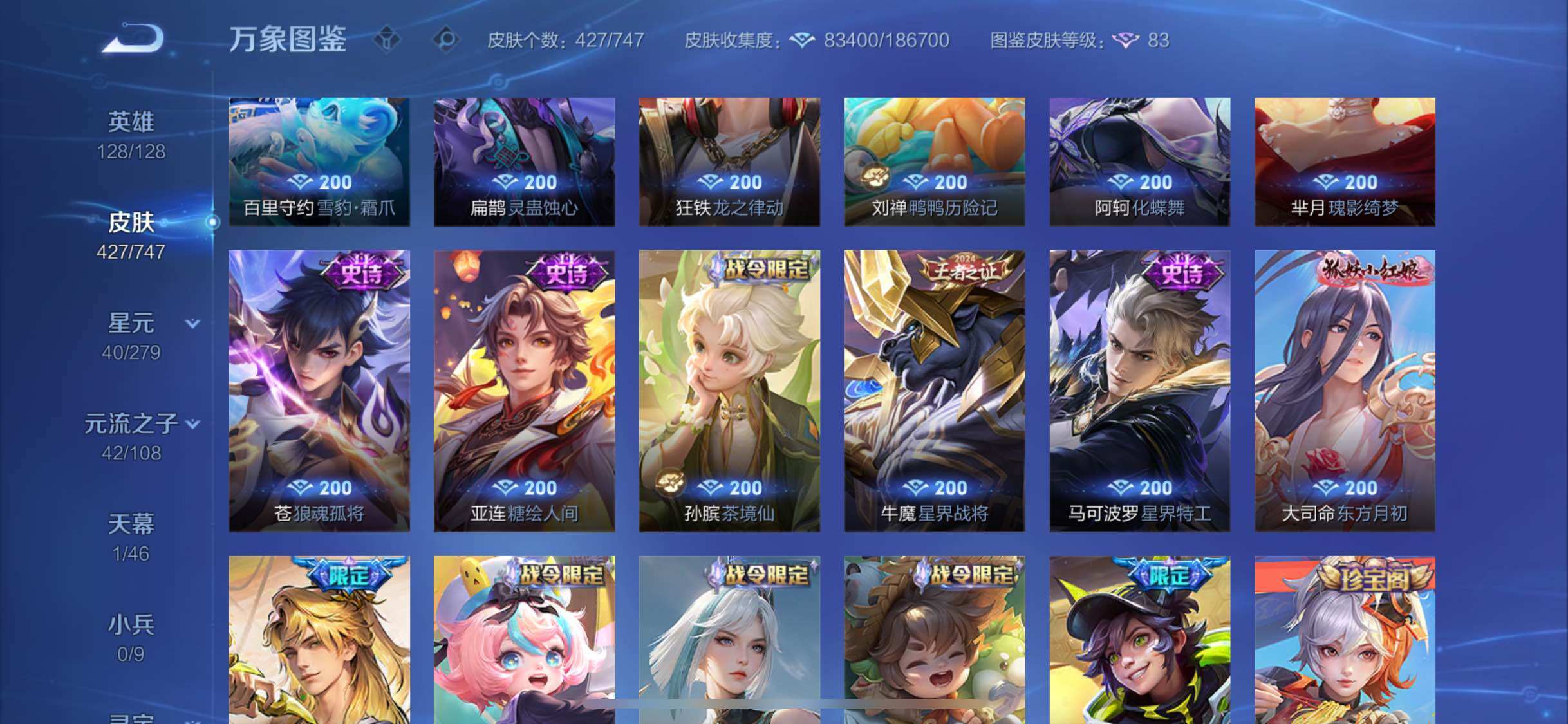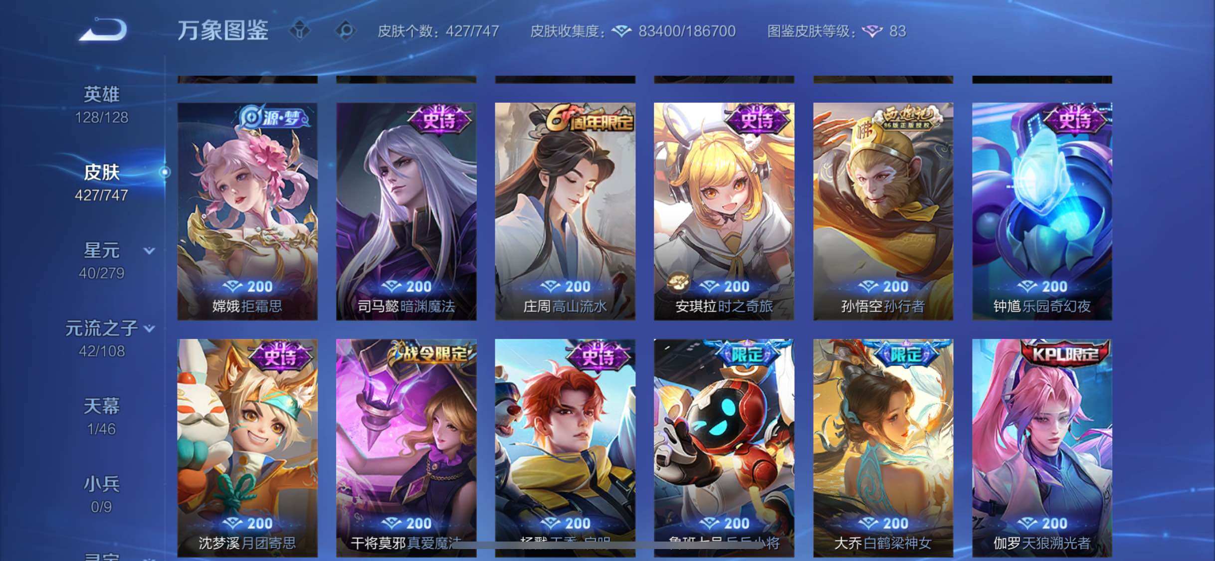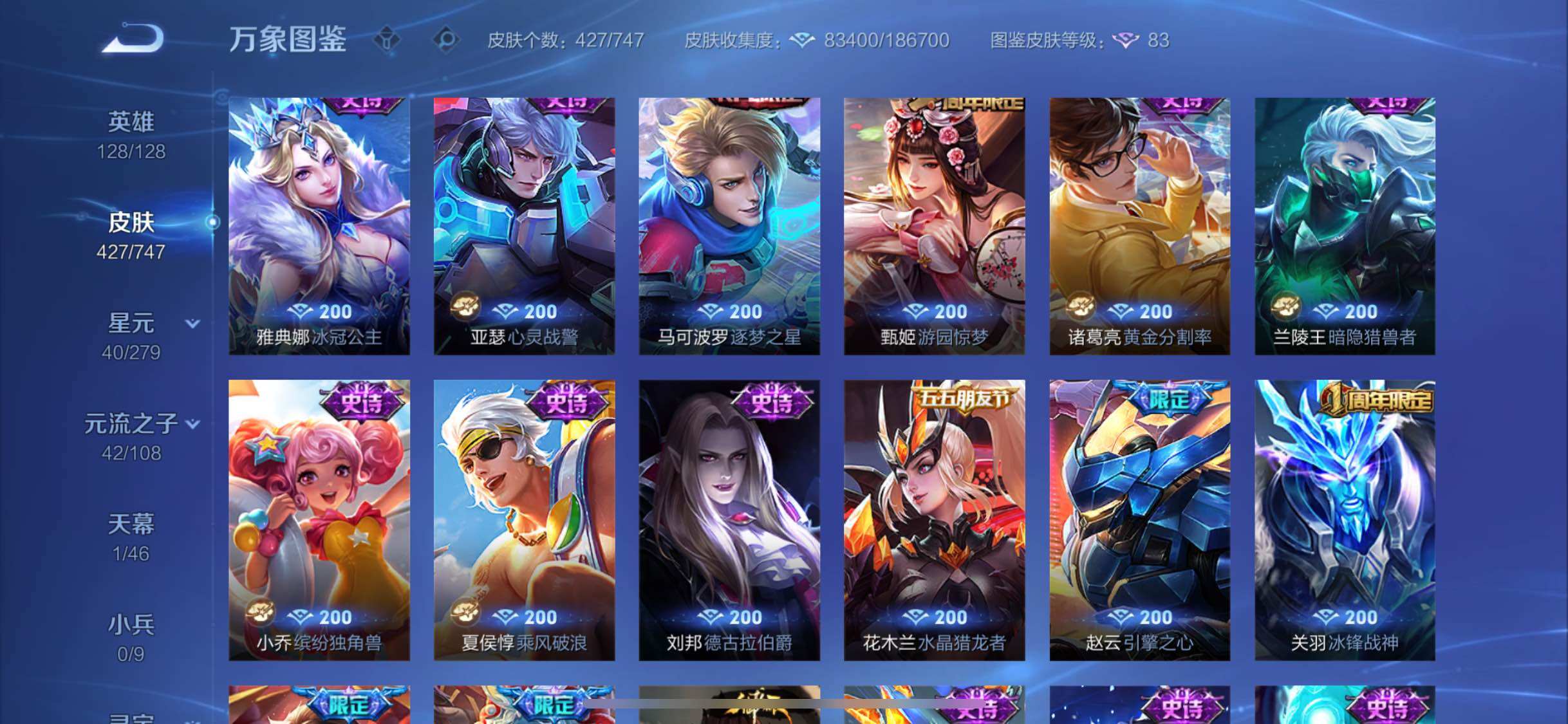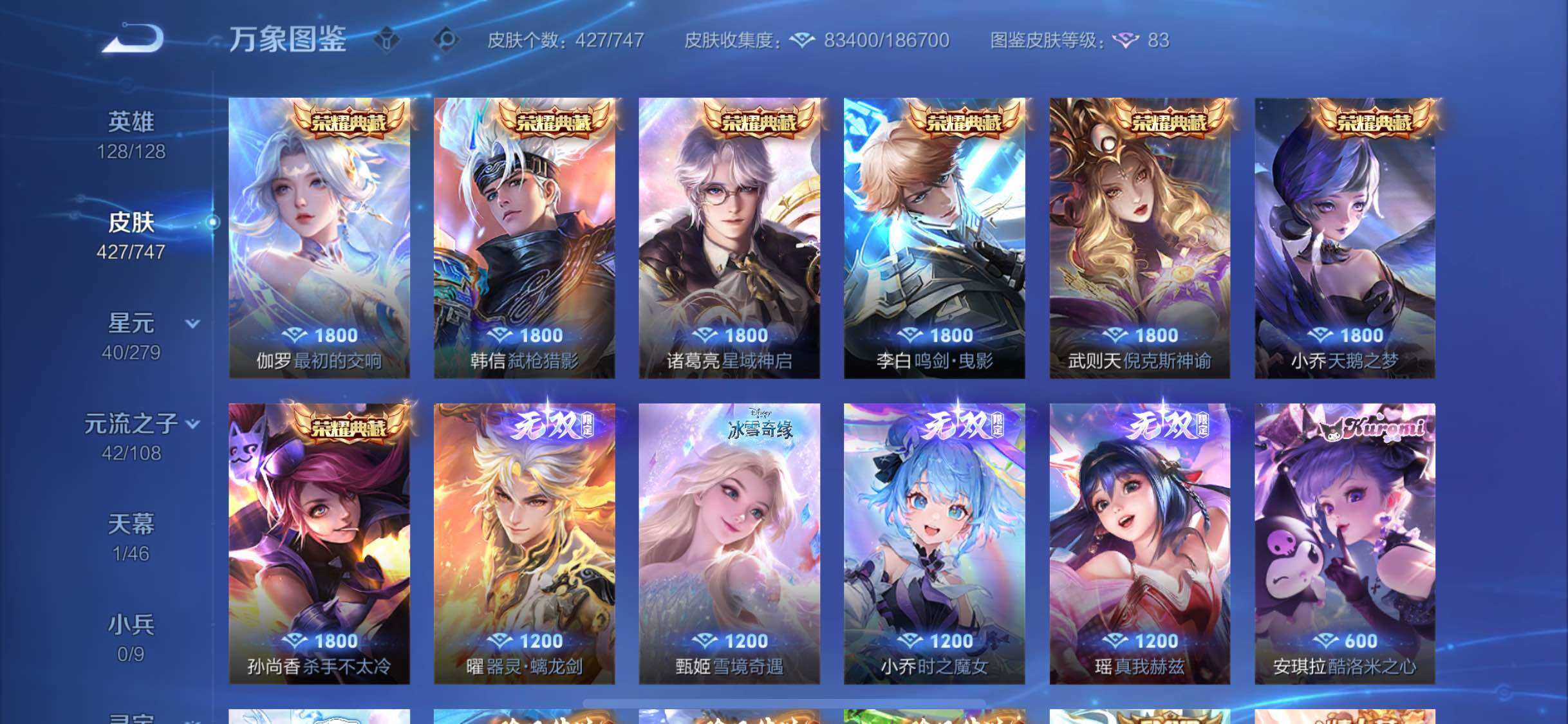 【店铺主推v10·8典藏·4无双·5珍品·3星传说·金标万战暃·金标李白·打野40段·满蛇年限定·满牛年限定·天鹅之梦·鸣剑曳影·弑呛猎影·真我赫兹·时之魔女·雪境奇遇·器灵螭龙剑·大耳狗之梦·酷洛米之心·大乔时之奇旅·寅虎赤拳·白虎志·14年限·可二次】w8673-苹果q-128英雄-427皮肤-20王者印记-290铭文-贵族积分21w【贵族10】【v10·8典藏·4无双·5珍品·3星传