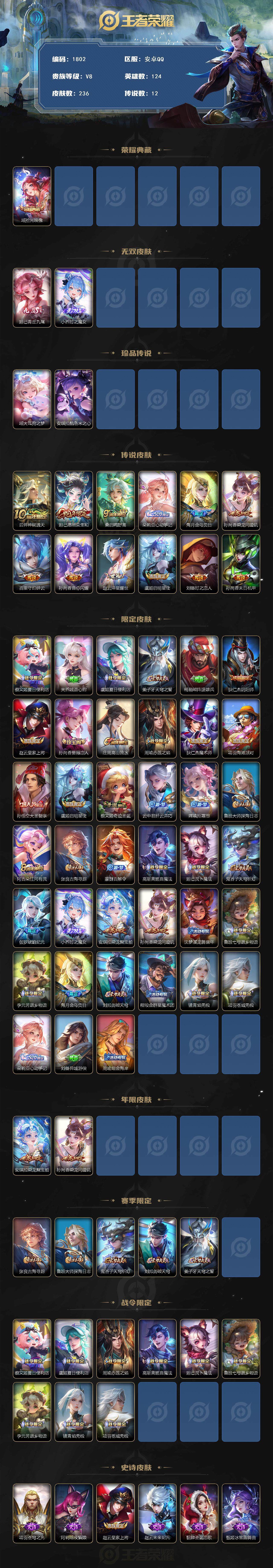 124英雄-236皮肤-贵族8/皮肤236/典藏1/传说12/史诗59/英雄124/朵莉亚全皮/少司缘全皮/拾光映像 瑶/青丘·九尾 妲己/时之魔女 小乔/大耳狗之梦 瑶/酷洛米之心 安琪拉/神树通天 后羿/愿照·众生和 妲己/鸣野蒿 桑启/心动手记 朵莉亚/金乌负日 海月/乘龙·问璇玑 孙尚香/碎云 百里守约/音你闪耀 孙尚香/淬星耀世 赵云/启明星使 虞姬/时之恋人 刘备/末日机甲 孙尚香/夏日便利店 蔡文姬/绒
