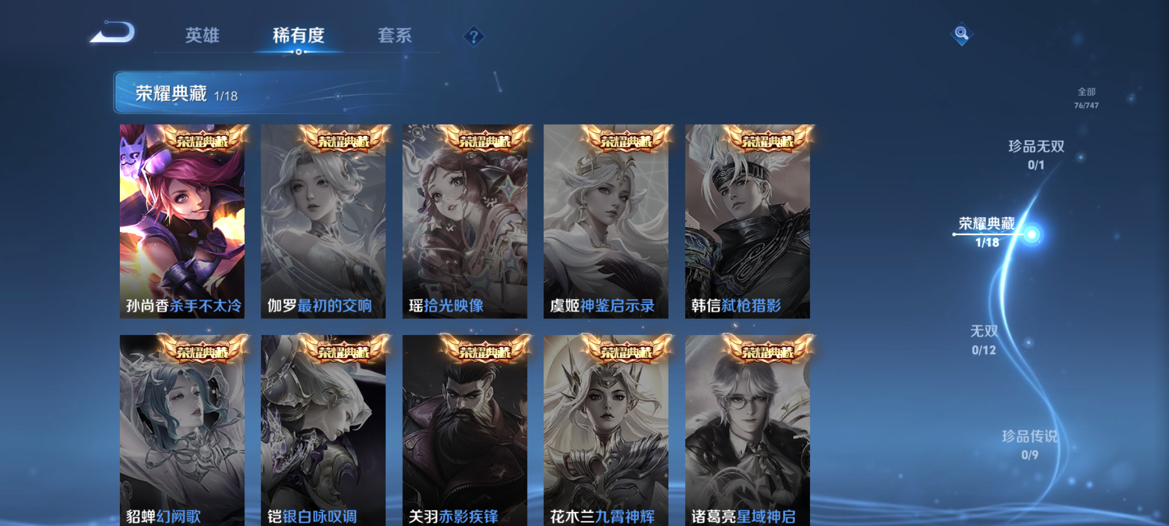 txwz24777 v8 76皮 1典藏 杀手不太冷 13传说 金乌负日,启明星使,曦玄引,炽阳神光,乘龙·问璇玑,诗剑行,琥珀纪元,猫影幻舞,音你闪耀,逐花归海,惊梅引,记忆之芯,碎云 21史诗 暗隐猎兽者,冰雪圆舞曲,缤纷独角兽,千年之狐,无限星赏官,琥珀纪元,女仆咖啡,鬼剑武藏,青蛇,乘龙·聚宝船,偶像歌手,水果甜心,心灵骇客,浮梦罗烟,燃音魔法,魔术师,赏金猎手,时之恋人,遇见神鹿,皇家上将,圣诞恋歌