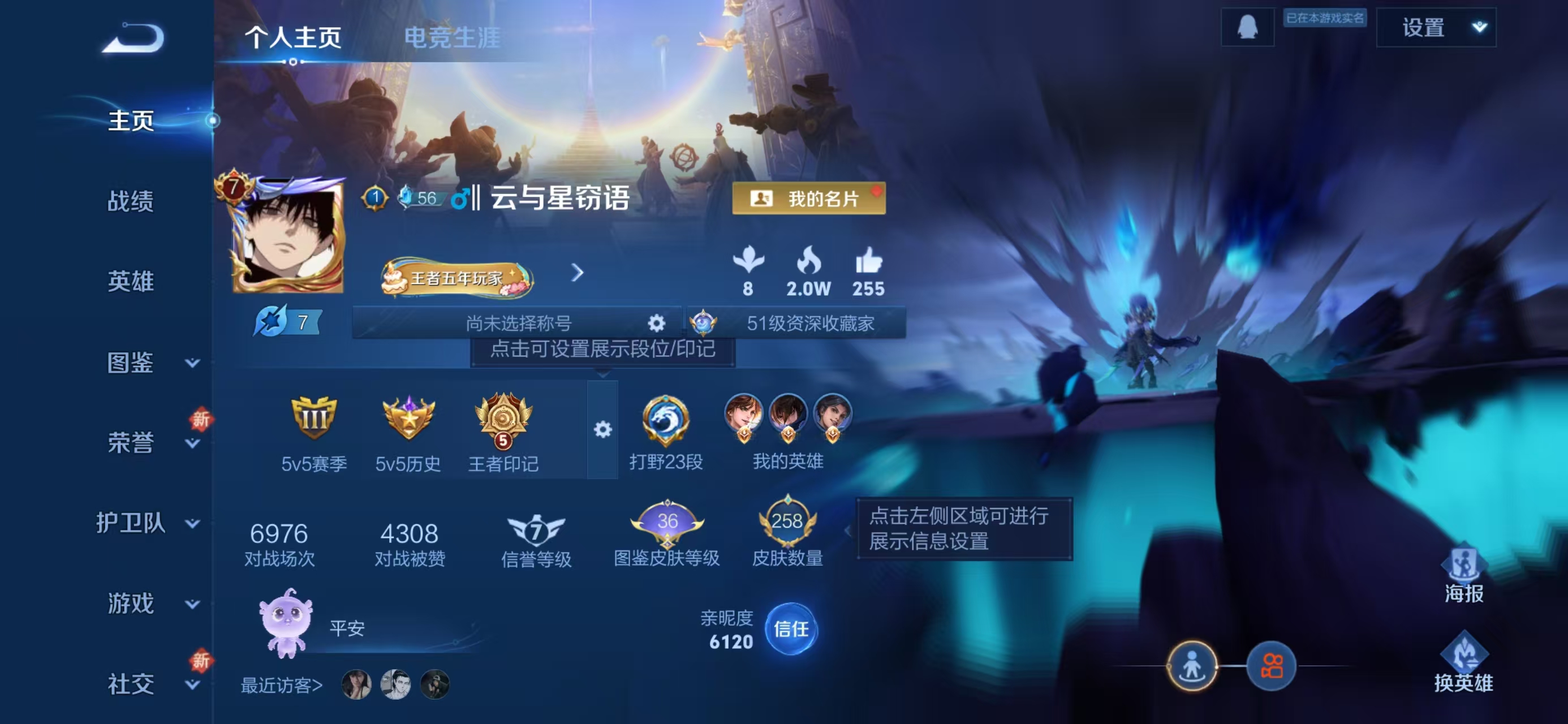 安卓qq/至尊星耀/258皮肤/127英雄/2典藏/0珍品无双/0无双/0珍品传说/8传说/71史诗/9稀有英雄【2 典藏皮肤】鸣剑·曳影 李白九霄神辉 花木兰【8 传说皮肤】无双飞将 马超云鹰飞将 曜地狱之眼 宫本武藏一念神魔 李信愿照·九州拓 澜幻光神呛 云缨愿照·山河定 司空震鸣野蒿 桑启【71 史诗皮肤】蔬乡物语 鲁班七号紫霞仙子 露娜百解令 蒙