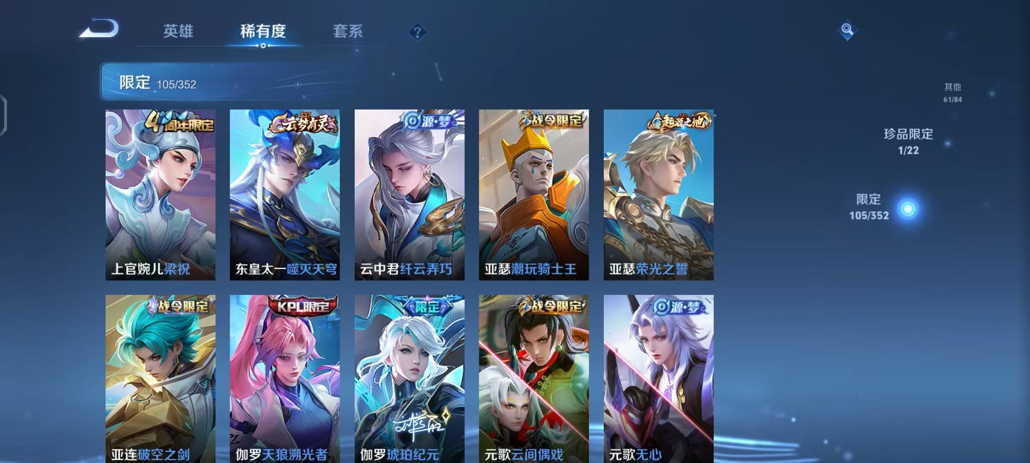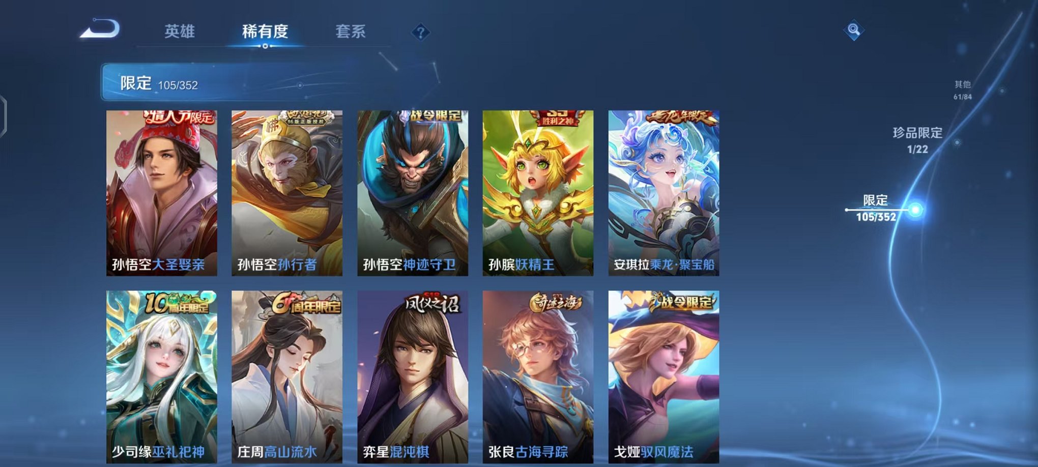 【v8 322皮肤3水晶2星元1珍品9传说可秒换绑】安卓qq-127英雄-322皮肤【3水晶】 拾光映像 全息碎影 鸣剑·曳影【珍品传说】器灵·落星盏【星元皮肤】零号雷霆 幽冥火 金色仲夏夜【传说皮肤】神树通天 鸣野蒿 愿照·九州拓 地狱之眼 久胜战神 异界灵契 地狱火 零号·赤焰 启明星使【史诗皮肤】万灵启世 巫礼祀神 飞衡 龙之律动 大圣娶亲 百相守梦 乘龙·聚宝船 琥珀纪元 驭风魔法 魅语