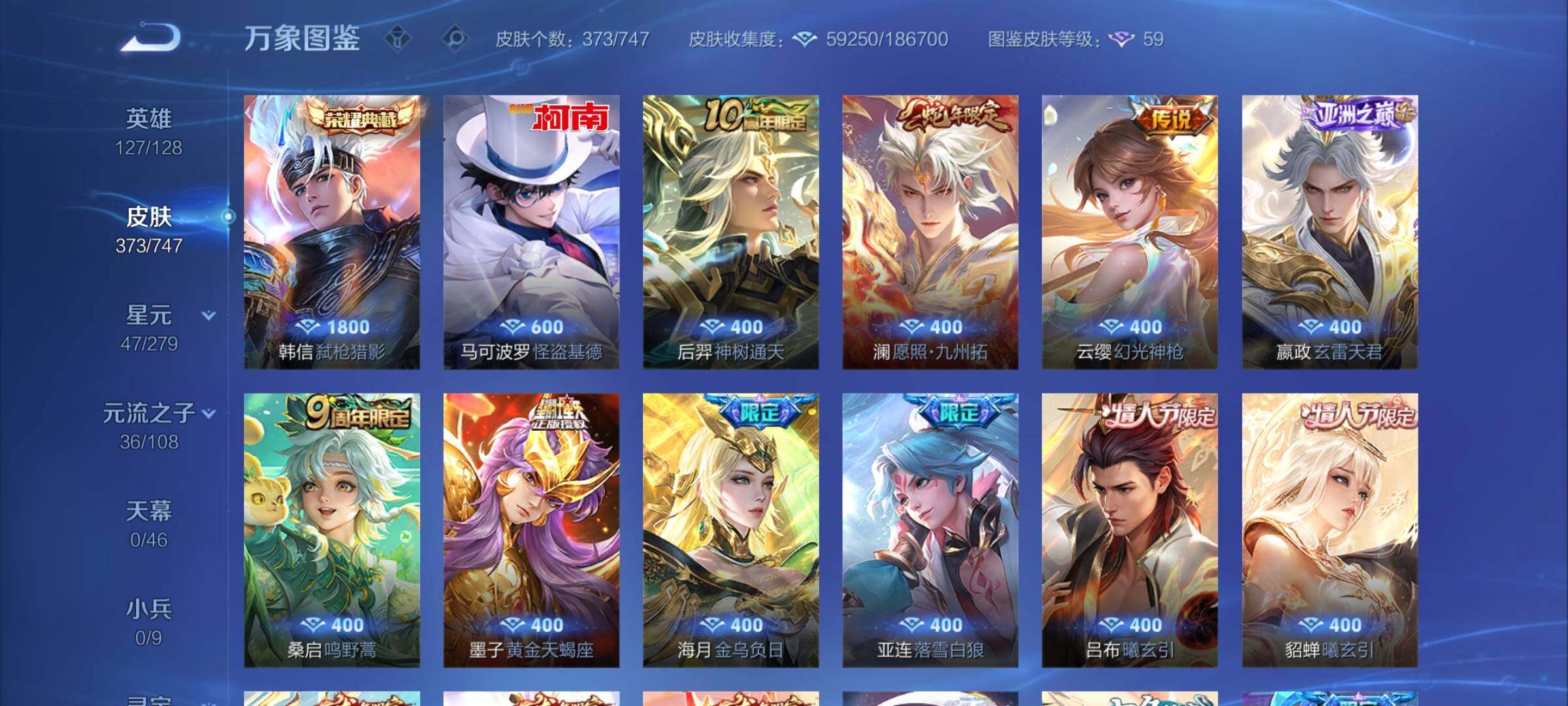 【高性价比推荐·弑呛猎影·基德·李·永恒水手月亮·愿照九州拓·浮生妄·乘龙淬吴钩·玄雷天君·金乌负日·落雪白狼·吕布曦玄引·貂蝉曦玄引·山海琳琅生·山海苍雷引·山海炽霜斩·异界灵契·神威·至尊宝·18年限·可二次】w8773-安卓q区服-127英雄-373皮肤-26王者印记-230铭文-贵族积分12w【贵族9】【1典藏·1珍品·4星传说·44传说·19按键】【因赛季更新游戏段付以上号为