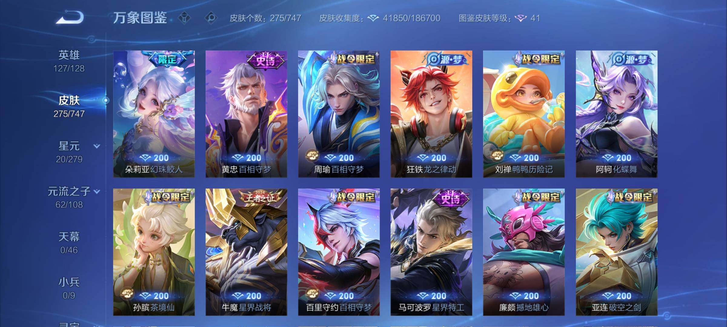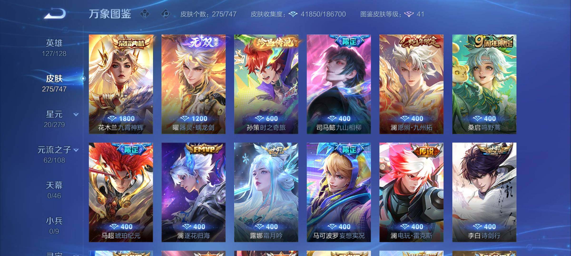 【店铺主推·全皮澜·九霄神辉·器灵螭龙剑·孙策时之奇旅·琥珀纪元·九山相柳·愿照九州拓·妄想实况·霜月吟·诗剑行·绛天战甲·一念神魔·乞巧织情·山海玄木吟·至尊宝·可二次】w8779-安卓q区服-127英雄-275皮肤-10王者印记-30铭文-贵族积分8w【贵族8】【1典藏·1无双·1珍品·1星传说·21传说·43按键】【因赛季更新游戏段付以上号为准!】 【英雄全皮】:司马懿全皮,孙权全皮