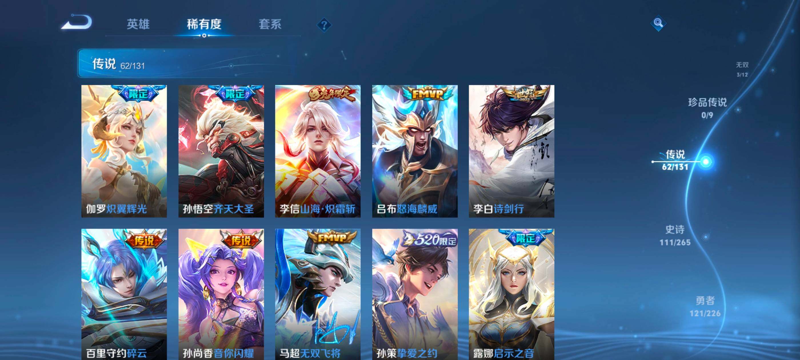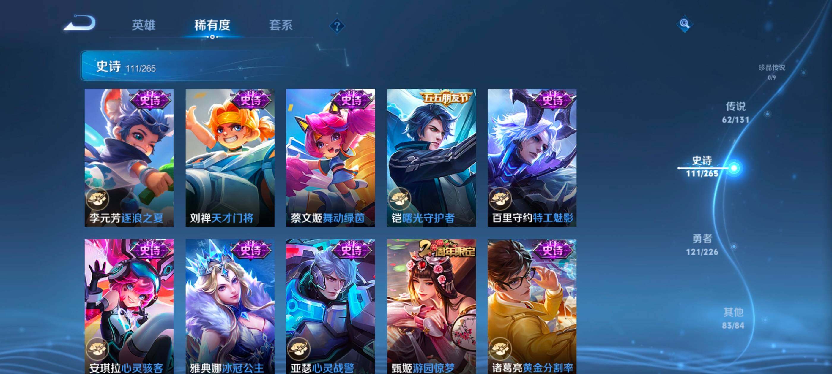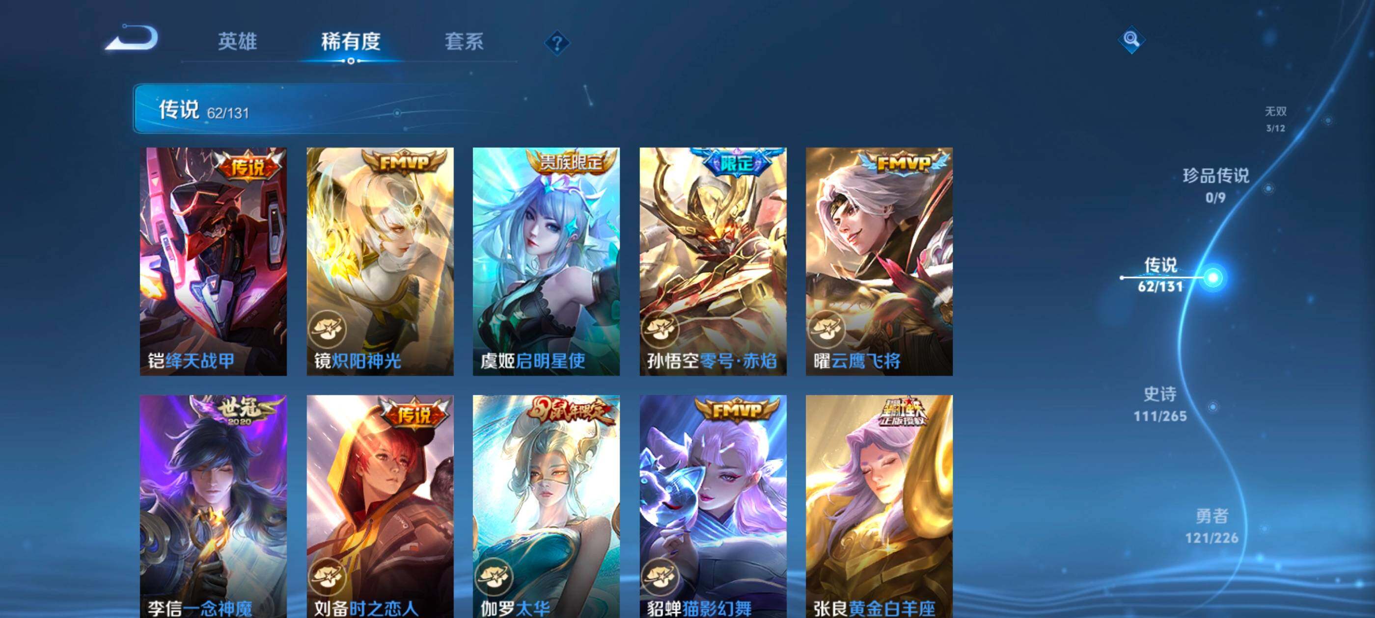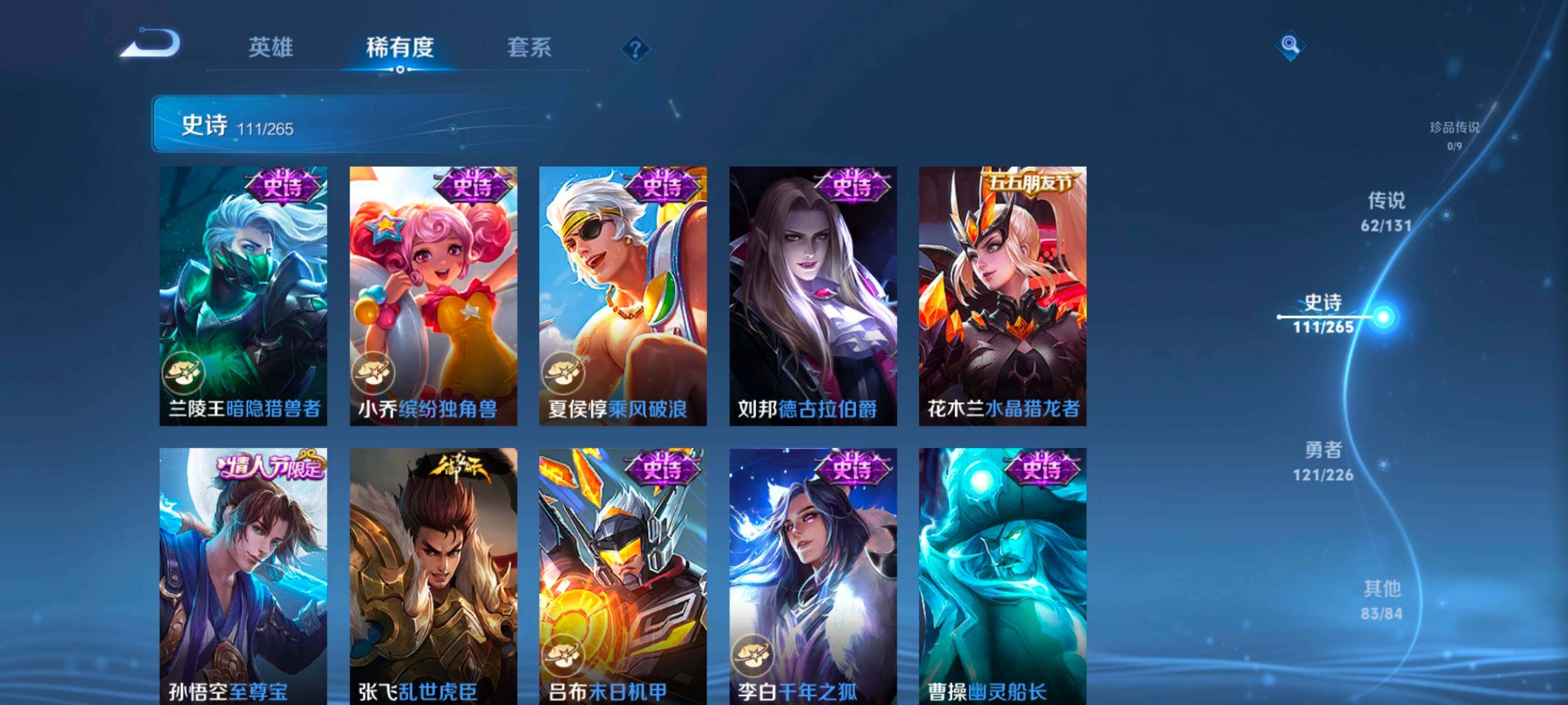 安卓wx-v10-最强王者段位-127英雄-390皮肤-10典藏-0珍品无双-3无双-0珍品传说-62传说-111史诗 【英雄全皮】:艾琳全皮,李信全皮,阿古朵全皮,空空儿全皮 【荣耀典藏】:武则天英雄,孙悟空全息碎影,武则天倪克斯神谕,小乔天鹅之梦,李白鸣剑曳影,花木兰九霄神辉,关羽赤影疾锋,铠银白咏叹调,貂蝉幻阙歌,韩信弑呛猎影,虞姬神鉴启示录 【无双皮肤】:武则天神器明辉仪,瑶真我赫兹,公孙离离恨烟 【传说皮肤】:后羿神树通天,桑启鸣野蒿,庄周牧神诗旅,夏侯惇霜北刀,亚连落雪白狼,典韦战鼓燎原,赵云乘龙铭钟鼎,澜逐花归海,艾琳觅芳踪,露娜霜月吟,孙膑小动物乐团,宫本武藏惊梅引,上官婉儿妄想奇谈,马可波罗妄想实况,东皇太一灼幽烈阳,诸葛亮鹤羽星尊,澜电玩雷克斯,公孙离记忆之芯,干将莫邪画中仙,花木兰燃星之曲,伽罗炽翼辉光,孙悟空齐天大圣,李信山海炽霜斩,吕布怒海麟威,李白诗剑行,百里守约碎云,孙尚香音你闪耀,马超无双飞将,孙策挚爱之约,露娜启示之音,蔡文姬花朝如约,孙策末日机甲,赵云淬星耀世,王昭君乞巧织情,西施游龙清影,曜李 ,周瑜音你心动,小乔音你心动,李元芳飞鸢探春,兰陵王默契交锋,铠绛天战甲,镜炽阳神光,虞姬启明星使,孙悟空零号赤焰,曜云鹰飞将,李信一念神魔,刘备时之恋人,伽罗太华,貂蝉猫影幻舞,张良黄金白羊座,干将莫邪久胜战神,虞姬云霓雀翎,达摩黄金狮子座,花木兰冠军飞将,梦奇胖达荣荣,后羿黄金射手座,貂蝉仲夏夜之梦,孙尚香末日机甲,宫本武藏地狱之眼,孙悟空地狱火,吕布天魔缭乱,狄仁杰超时空战士 【限定皮肤】:公孙离离恨烟,夏侯惇霜北刀,暃埋骨钱,蔡文姬夏日便利店,虞姬夏日便利店,姜子牙天穹之誓,李白谪仙醉月,狄仁杰阴阳师,赵云皇家上将,赵云百木心呛,墨子神迹守卫,妲己时之彼端,白起夜都怪侠,吕布天魔缭乱,吕布猎兽之王,夏侯惇朔风刀,甄姬游园惊梦,马可波罗暗影游猎,马可波罗妄想实况,狄仁杰魔术师,狄仁杰万华元夜,达摩沙漠行僧,项羽海滩派对,老夫子醍醐杖,老夫子航海奇遇记,程咬金演武夺筹,露娜启示之音,韩信飞衡,王昭君午后时光,兰陵王默契交锋,兰陵王金庭之子,花木兰默契交锋,花木兰燃星之曲,孙悟空至尊宝,孙悟空零号赤焰,孙悟空齐天大圣,牛魔御旌,李元芳银河之约,李元芳云中旅人,虞姬启明星使,钟馗驱傩正仪,女娲朔望之晖,干将莫邪冰霜恋舞曲,干将莫邪画中仙,雅典娜黎明之约,鬼谷子原初探秘者,诸葛亮鹤羽星尊,苏烈千军破阵,百里玄策原初追逐者,弈星混沌棋,梦奇顽趣,沈梦溪星空之诺,明世隐疑决卦,明世隐吟游魔法,裴擒虎天狼狩猎者,狂铁电玩高手,米莱狄御霄,云中君纤云弄巧,李信山海炽霜斩,伽罗太华,伽罗炽翼辉光,孙策挚爱之约,上官婉儿梁祝,上官婉儿天狼绘梦者,上官婉儿神器万象笔,上官婉儿妄想奇谈,嫦娥暖冬兔眠,曜李 ,西施玲珑珍味,鲁班大师探海日志,镜匿光追影者,桑启海盐诗旅,暃星界游侠,戈娅驭风魔法,艾琳女武神,艾琳流音漫舞,司空震地狱燃心,阿古朵江河有灵,张良古海寻踪,艾琳觅芳踪,蒙恬荣光圣徽,高渐离燃音魔法,妲己灵卜魔法,鬼谷子天穹祈灯,赵云乘龙铭钟鼎,亚连落雪白狼,沈梦溪龙舞盛年,刘备异域游侠,周瑜熔金海岸 【年限皮肤】:伽罗太华,韩信飞衡,李信山海炽霜斩,伽罗炽翼辉光,赵云乘龙铭钟鼎 【赛季限定】:夏侯惇朔风刀,狄仁杰万华元夜,达摩沙漠行僧,老夫子醍醐杖,程咬金演武夺筹,兰陵王金庭之子,张良古海寻踪,牛魔御旌,李元芳云中旅人,钟馗驱傩正仪,雅典娜黎明之约,鬼谷子原初探秘者,苏烈千军破阵,百里玄策原初追逐者,弈星混沌棋,梦奇顽趣,明世隐疑决卦,米莱狄御霄,鲁班大师探海日志,桑启海盐诗旅,鬼谷子天穹祈灯,蒙恬荣光圣徽,姜子牙天穹之誓 【战令限定】:墨子神迹守卫,蔡文姬夏日便利店,虞姬夏日便利店,白起夜都怪侠,吕布猎兽之王,马可波罗暗影游猎,老夫子航海奇遇记,王昭君午后时光,艾琳流音漫舞,李元芳银河之约,女娲朔望之晖,沈梦溪星空之诺,明世隐吟游魔法,狂铁电玩高手,嫦娥暖冬兔眠,西施玲珑珍味,司空震地狱燃心,暃星界游侠,戈娅驭风魔法,高渐离燃音魔法,妲己灵卜魔法 【史诗皮肤】:鲁班七号电玩小子,项羽苍穹之光,露娜紫霞仙子,阿轲暗夜猫娘,赵云皇家上将,赵云未来纪元,貂蝉圣诞恋歌,甄姬冰雪圆舞曲,王昭君偶像歌手,狄仁杰魔术师,廉颇地狱岩魂,宫本武藏鬼剑武藏,孙尚香水果甜心,嬴政暗夜贵公子,嬴政摇滚巨星,妲己魅力维加斯,妲己女仆咖啡,墨子龙骑士,墨子金属风暴,吕布圣诞狂欢,刘禅绅士熊喵,曹操幽灵船长,李白千年之狐,吕布末日机甲,张飞乱世虎臣,孙悟空至尊宝,花木兰水晶猎龙者,刘邦德古拉伯爵,夏侯惇乘风破浪,小乔缤纷独角兽,兰陵王暗隐猎兽者,诸葛亮黄金分割率,甄姬游园惊梦,亚瑟心灵战警,雅典娜冰冠公主,安琪拉心灵骇客,百里守约特工魅影,铠曙光守护者,蔡文姬舞动绿茵,刘禅天才门将,李元芳逐浪之夏,程咬金功夫厨神,白起星夜王子,阿轲节奏热浪,孙策猫狗日记,干将莫邪冰霜恋舞曲,伽罗箭羽风息,裴擒虎天狼狩猎者,狄仁杰鹰眼统帅,公孙离无限星赏官,上官婉儿梁祝,李元芳银河之约,娜可露露晚萤,韩信飞衡,妲己时之彼端,大乔白蛇,橘右京修罗,瑶遇见神鹿,孙尚香时之恋人,上官婉儿天狼绘梦者,马可波罗暗影游猎,百里玄策原初追逐者,云中君纤云弄巧,花木兰默契交锋,百里玄策热力回旋,老