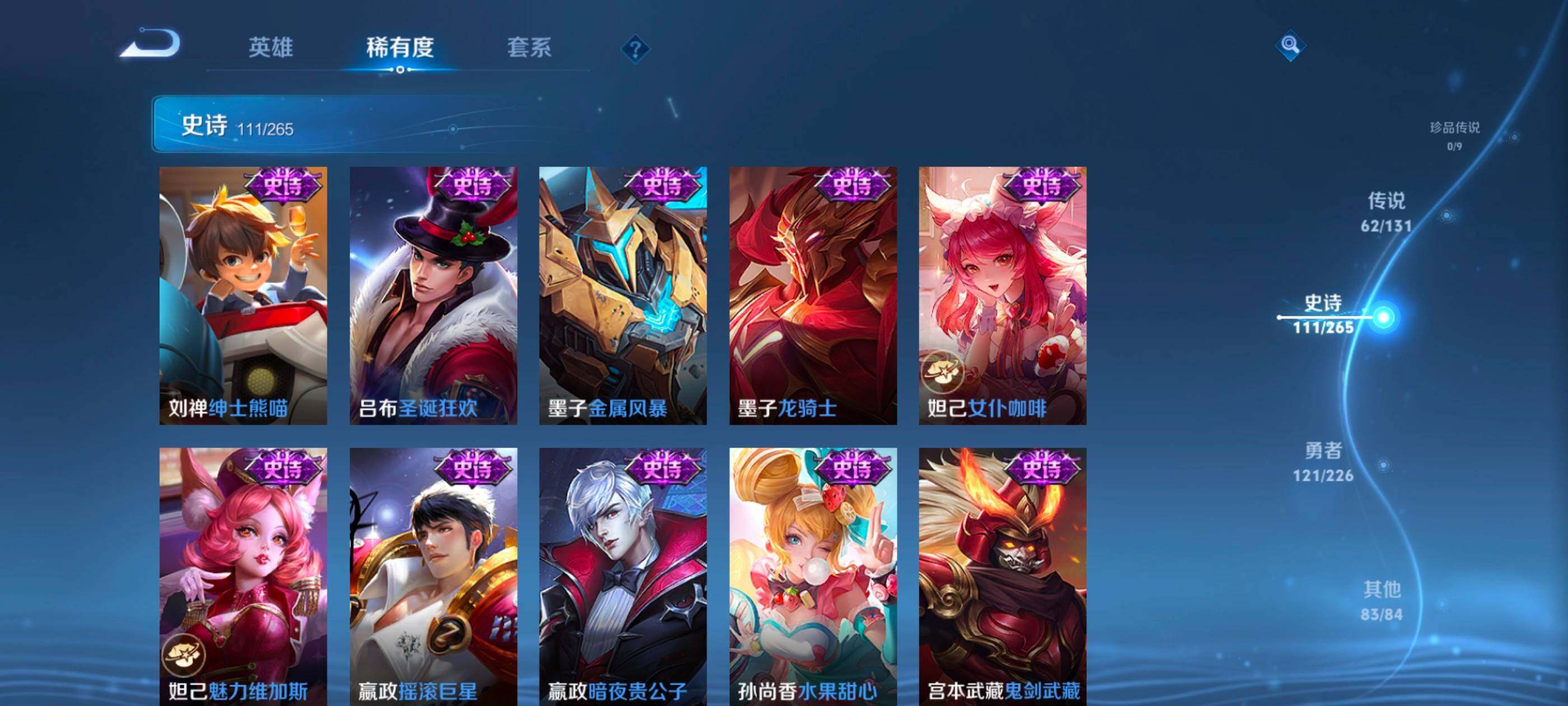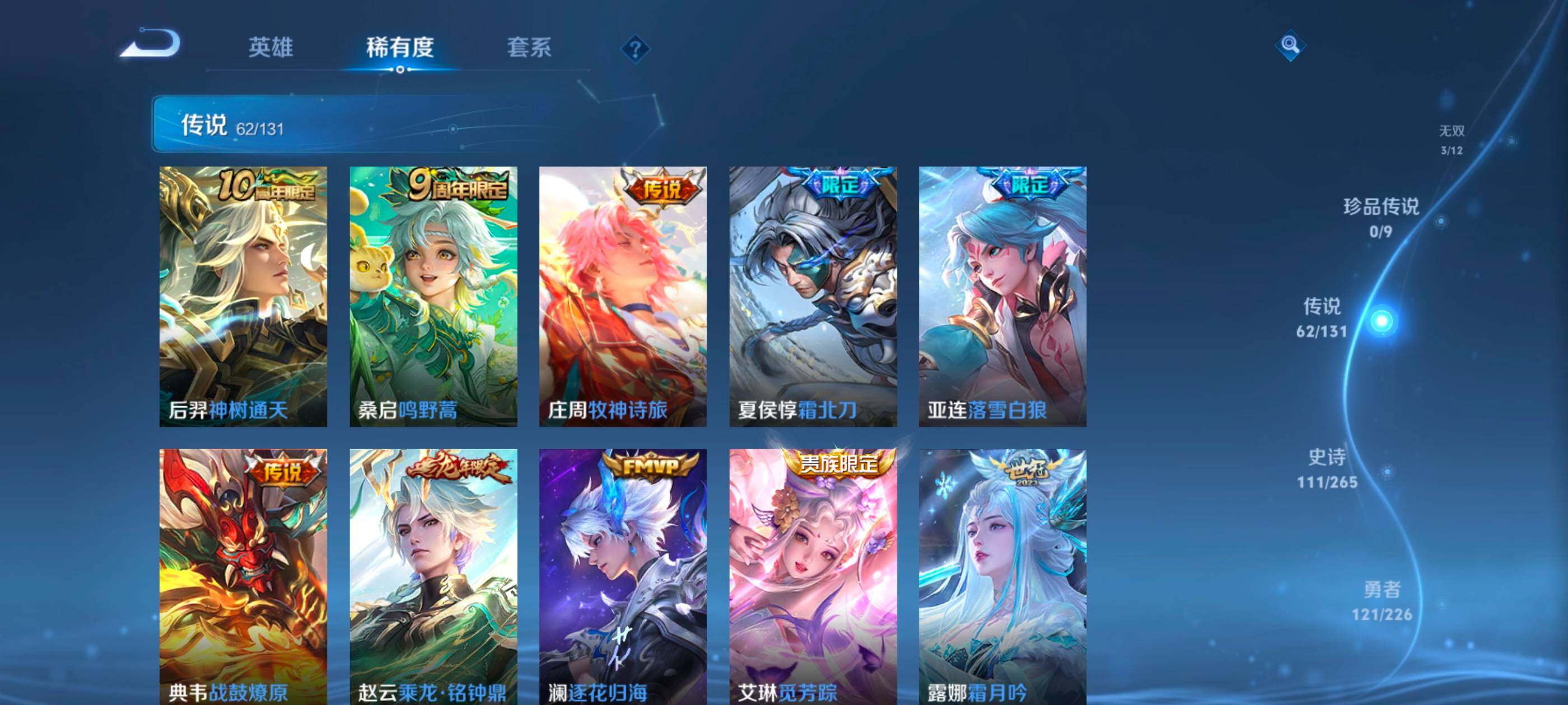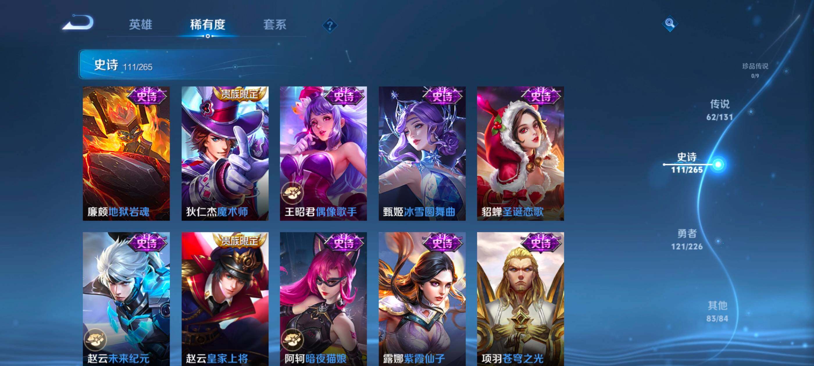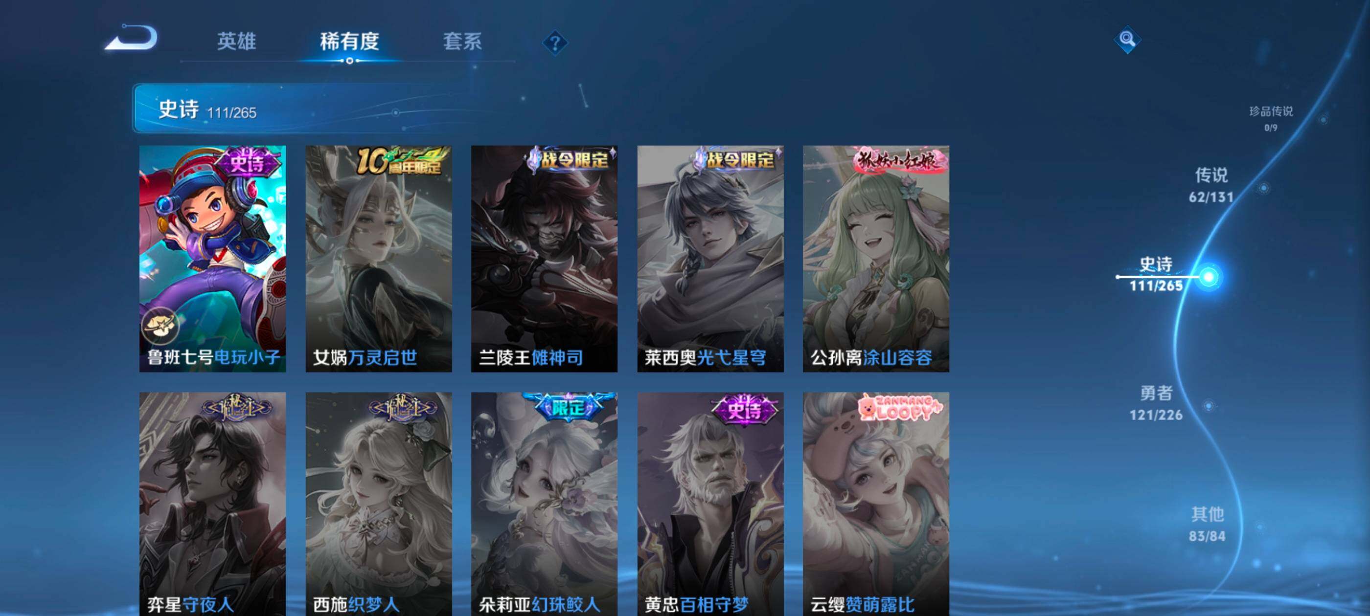 安卓wx-v10-最强王者段位-127英雄-390皮肤-10典藏-0珍品无双-3无双-0珍品传说-62传说-111史诗 【英雄全皮】:艾琳全皮,李信全皮,阿古朵全皮,空空儿全皮 【荣耀典藏】:武则天英雄,孙悟空全息碎影,武则天倪克斯神谕,小乔天鹅之梦,李白鸣剑曳影,花木兰九霄神辉,关羽赤影疾锋,铠银白咏叹调,貂蝉幻阙歌,韩信弑呛猎影,虞姬神鉴启示录 【无双皮肤】:武则天神器明辉仪,瑶真我赫兹,公孙离离恨烟 【传说皮肤】:后羿神树通天,桑启鸣野蒿,庄周牧神诗旅,夏侯惇霜北刀,亚连落雪白狼,典韦战鼓燎原,赵云乘龙铭钟鼎,澜逐花归海,艾琳觅芳踪,露娜霜月吟,孙膑小动物乐团,宫本武藏惊梅引,上官婉儿妄想奇谈,马可波罗妄想实况,东皇太一灼幽烈阳,诸葛亮鹤羽星尊,澜电玩雷克斯,公孙离记忆之芯,干将莫邪画中仙,花木兰燃星之曲,伽罗炽翼辉光,孙悟空齐天大圣,李信山海炽霜斩,吕布怒海麟威,李白诗剑行,百里守约碎云,孙尚香音你闪耀,马超无双飞将,孙策挚爱之约,露娜启示之音,蔡文姬花朝如约,孙策末日机甲,赵云淬星耀世,王昭君乞巧织情,西施游龙清影,曜李 ,周瑜音你心动,小乔音你心动,李元芳飞鸢探春,兰陵王默契交锋,铠绛天战甲,镜炽阳神光,虞姬启明星使,孙悟空零号赤焰,曜云鹰飞将,李信一念神魔,刘备时之恋人,伽罗太华,貂蝉猫影幻舞,张良黄金白羊座,干将莫邪久胜战神,虞姬云霓雀翎,达摩黄金狮子座,花木兰冠军飞将,梦奇胖达荣荣,后羿黄金射手座,貂蝉仲夏夜之梦,孙尚香末日机甲,宫本武藏地狱之眼,孙悟空地狱火,吕布天魔缭乱,狄仁杰超时空战士 【限定皮肤】:公孙离离恨烟,夏侯惇霜北刀,暃埋骨钱,蔡文姬夏日便利店,虞姬夏日便利店,姜子牙天穹之誓,李白谪仙醉月,狄仁杰阴阳师,赵云皇家上将,赵云百木心呛,墨子神迹守卫,妲己时之彼端,白起夜都怪侠,吕布天魔缭乱,吕布猎兽之王,夏侯惇朔风刀,甄姬游园惊梦,马可波罗暗影游猎,马可波罗妄想实况,狄仁杰魔术师,狄仁杰万华元夜,达摩沙漠行僧,项羽海滩派对,老夫子醍醐杖,老夫子航海奇遇记,程咬金演武夺筹,露娜启示之音,韩信飞衡,王昭君午后时光,兰陵王默契交锋,兰陵王金庭之子,花木兰默契交锋,花木兰燃星之曲,孙悟空至尊宝,孙悟空零号赤焰,孙悟空齐天大圣,牛魔御旌,李元芳银河之约,李元芳云中旅人,虞姬启明星使,钟馗驱傩正仪,女娲朔望之晖,干将莫邪冰霜恋舞曲,干将莫邪画中仙,雅典娜黎明之约,鬼谷子原初探秘者,诸葛亮鹤羽星尊,苏烈千军破阵,百里玄策原初追逐者,弈星混沌棋,梦奇顽趣,沈梦溪星空之诺,明世隐疑决卦,明世隐吟游魔法,裴擒虎天狼狩猎者,狂铁电玩高手,米莱狄御霄,云中君纤云弄巧,李信山海炽霜斩,伽罗太华,伽罗炽翼辉光,孙策挚爱之约,上官婉儿梁祝,上官婉儿天狼绘梦者,上官婉儿神器万象笔,上官婉儿妄想奇谈,嫦娥暖冬兔眠,曜李 ,西施玲珑珍味,鲁班大师探海日志,镜匿光追影者,桑启海盐诗旅,暃星界游侠,戈娅驭风魔法,艾琳女武神,艾琳流音漫舞,司空震地狱燃心,阿古朵江河有灵,张良古海寻踪,艾琳觅芳踪,蒙恬荣光圣徽,高渐离燃音魔法,妲己灵卜魔法,鬼谷子天穹祈灯,赵云乘龙铭钟鼎,亚连落雪白狼,沈梦溪龙舞盛年,刘备异域游侠,周瑜熔金海岸 【年限皮肤】:伽罗太华,韩信飞衡,李信山海炽霜斩,伽罗炽翼辉光,赵云乘龙铭钟鼎 【赛季限定】:夏侯惇朔风刀,狄仁杰万华元夜,达摩沙漠行僧,老夫子醍醐杖,程咬金演武夺筹,兰陵王金庭之子,张良古海寻踪,牛魔御旌,李元芳云中旅人,钟馗驱傩正仪,雅典娜黎明之约,鬼谷子原初探秘者,苏烈千军破阵,百里玄策原初追逐者,弈星混沌棋,梦奇顽趣,明世隐疑决卦,米莱狄御霄,鲁班大师探海日志,桑启海盐诗旅,鬼谷子天穹祈灯,蒙恬荣光圣徽,姜子牙天穹之誓 【战令限定】:墨子神迹守卫,蔡文姬夏日便利店,虞姬夏日便利店,白起夜都怪侠,吕布猎兽之王,马可波罗暗影游猎,老夫子航海奇遇记,王昭君午后时光,艾琳流音漫舞,李元芳银河之约,女娲朔望之晖,沈梦溪星空之诺,明世隐吟游魔法,狂铁电玩高手,嫦娥暖冬兔眠,西施玲珑珍味,司空震地狱燃心,暃星界游侠,戈娅驭风魔法,高渐离燃音魔法,妲己灵卜魔法 【史诗皮肤】:鲁班七号电玩小子,项羽苍穹之光,露娜紫霞仙子,阿轲暗夜猫娘,赵云皇家上将,赵云未来纪元,貂蝉圣诞恋歌,甄姬冰雪圆舞曲,王昭君偶像歌手,狄仁杰魔术师,廉颇地狱岩魂,宫本武藏鬼剑武藏,孙尚香水果甜心,嬴政暗夜贵公子,嬴政摇滚巨星,妲己魅力维加斯,妲己女仆咖啡,墨子龙骑士,墨子金属风暴,吕布圣诞狂欢,刘禅绅士熊喵,曹操幽灵船长,李白千年之狐,吕布末日机甲,张飞乱世虎臣,孙悟空至尊宝,花木兰水晶猎龙者,刘邦德古拉伯爵,夏侯惇乘风破浪,小乔缤纷独角兽,兰陵王暗隐猎兽者,诸葛亮黄金分割率,甄姬游园惊梦,亚瑟心灵战警,雅典娜冰冠公主,安琪拉心灵骇客,百里守约特工魅影,铠曙光守护者,蔡文姬舞动绿茵,刘禅天才门将,李元芳逐浪之夏,程咬金功夫厨神,白起星夜王子,阿轲节奏热浪,孙策猫狗日记,干将莫邪冰霜恋舞曲,伽罗箭羽风息,裴擒虎天狼狩猎者,狄仁杰鹰眼统帅,公孙离无限星赏官,上官婉儿梁祝,李元芳银河之约,娜可露露晚萤,韩信飞衡,妲己时之彼端,大乔白蛇,橘右京修罗,瑶遇见神鹿,孙尚香时之恋人,上官婉儿天狼绘梦者,马可波罗暗影游猎,百里玄策原初追逐者,云中君纤云弄巧,花木兰默契交锋,百里玄策热力回旋,老
