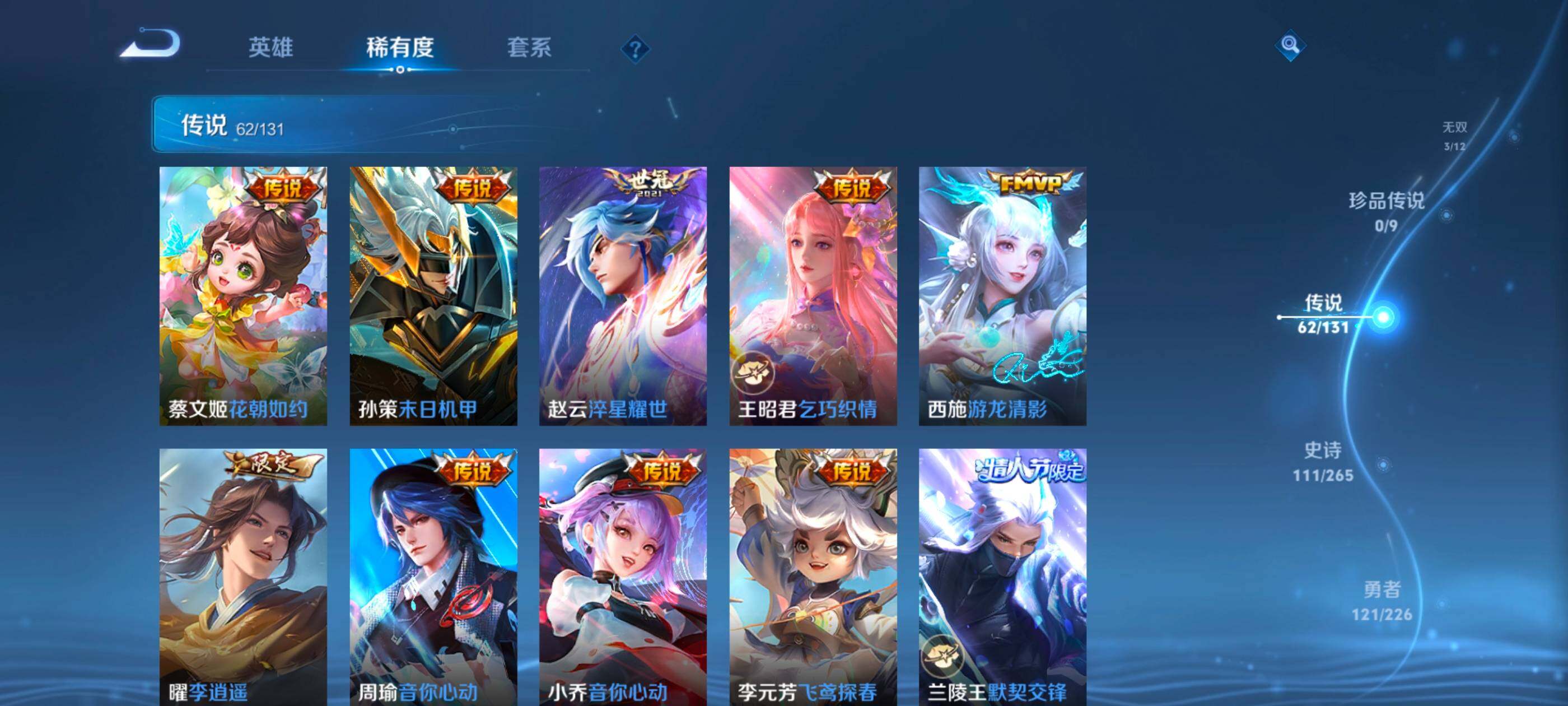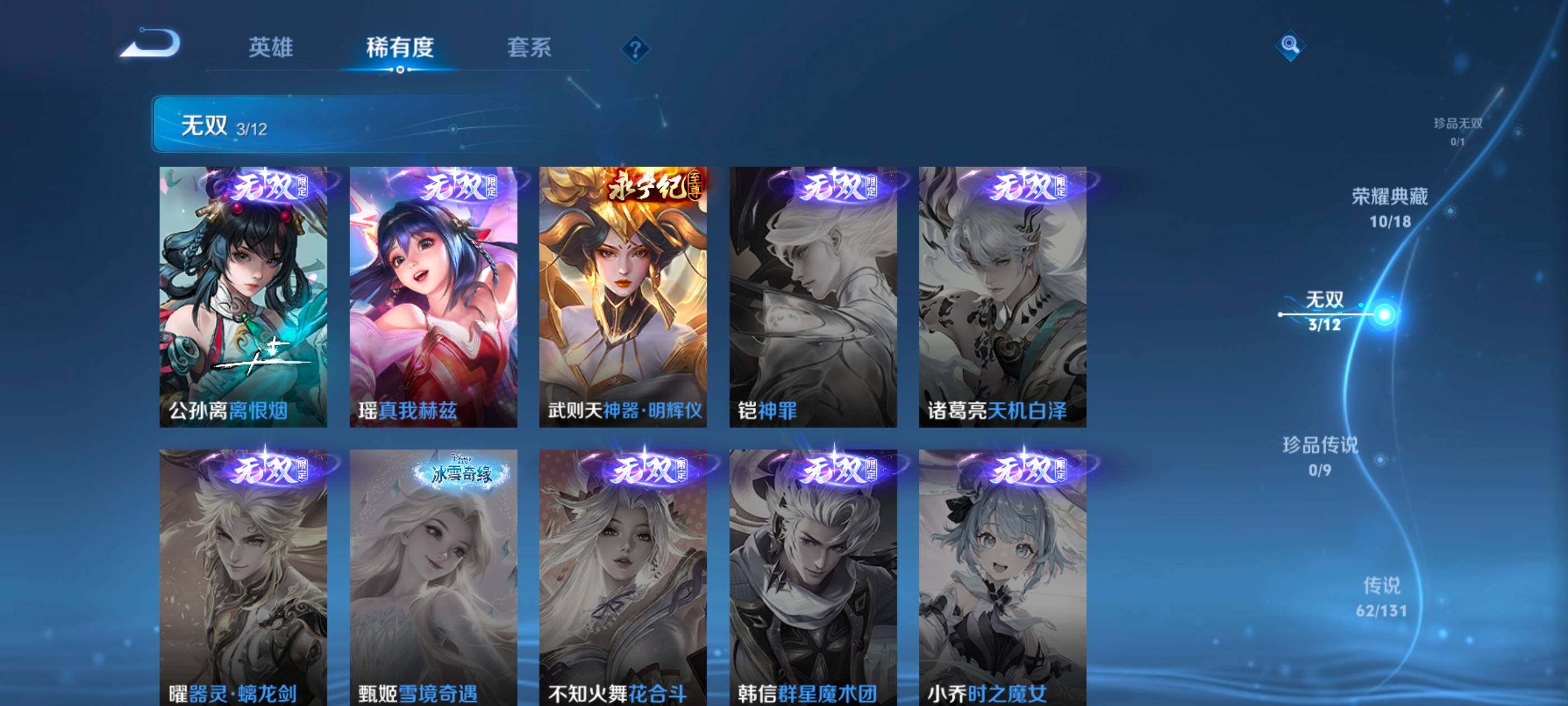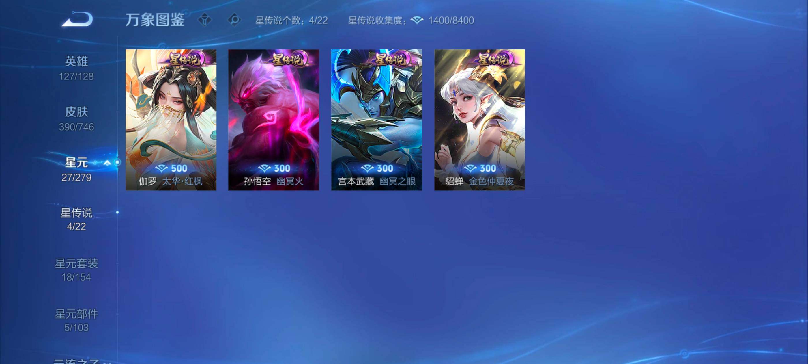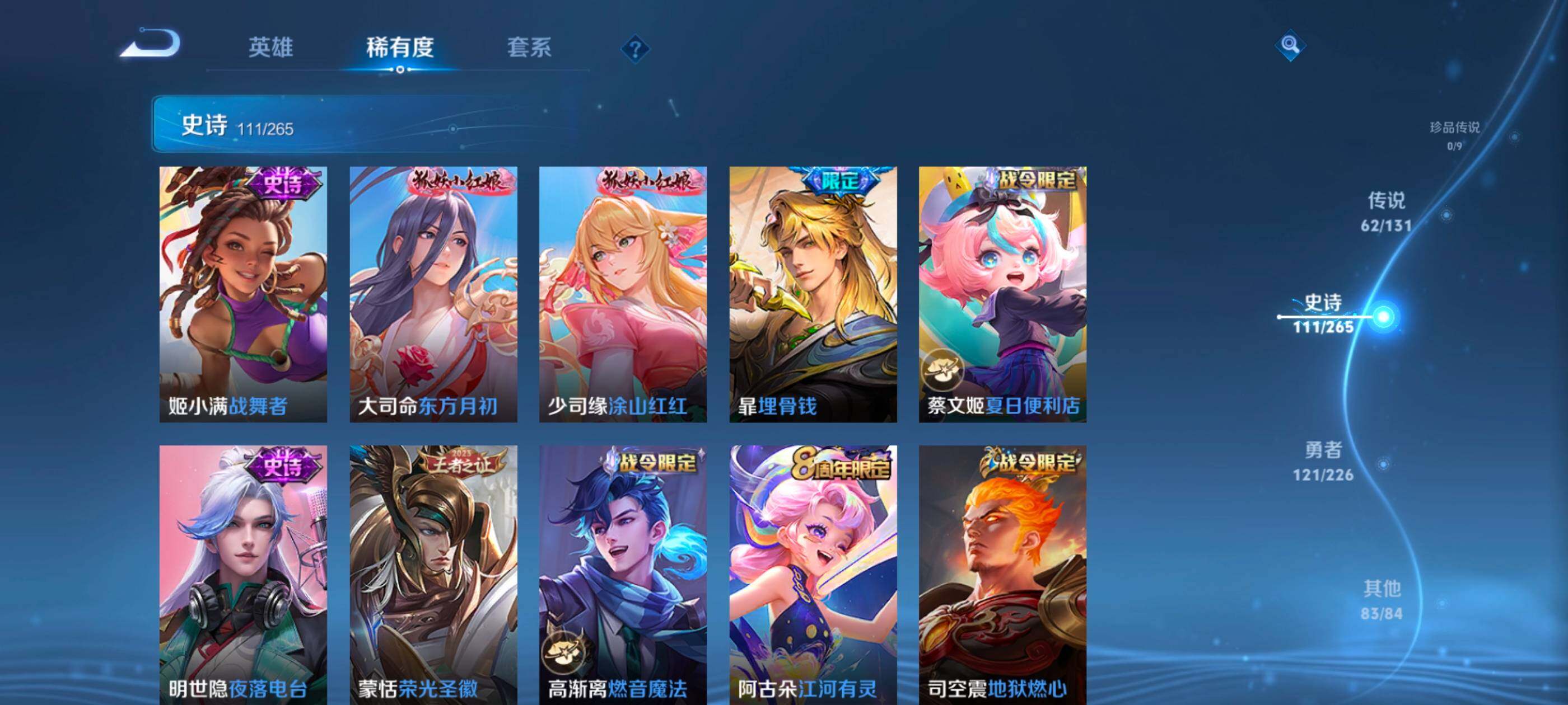 安卓wx-v10-最强王者段位-127英雄-390皮肤-10典藏-0珍品无双-3无双-0珍品传说-62传说-111史诗 【英雄全皮】:艾琳全皮,李信全皮,阿古朵全皮,空空儿全皮 【荣耀典藏】:武则天英雄,孙悟空全息碎影,武则天倪克斯神谕,小乔天鹅之梦,李白鸣剑曳影,花木兰九霄神辉,关羽赤影疾锋,铠银白咏叹调,貂蝉幻阙歌,韩信弑呛猎影,虞姬神鉴启示录 【无双皮肤】:武则天神器明辉仪,瑶真我赫兹,公孙离离恨烟 【传说皮肤】:后羿神树通天,桑启鸣野蒿,庄周牧神诗旅,夏侯惇霜北刀,亚连落雪白狼,典韦战鼓燎原,赵云乘龙铭钟鼎,澜逐花归海,艾琳觅芳踪,露娜霜月吟,孙膑小动物乐团,宫本武藏惊梅引,上官婉儿妄想奇谈,马可波罗妄想实况,东皇太一灼幽烈阳,诸葛亮鹤羽星尊,澜电玩雷克斯,公孙离记忆之芯,干将莫邪画中仙,花木兰燃星之曲,伽罗炽翼辉光,孙悟空齐天大圣,李信山海炽霜斩,吕布怒海麟威,李白诗剑行,百里守约碎云,孙尚香音你闪耀,马超无双飞将,孙策挚爱之约,露娜启示之音,蔡文姬花朝如约,孙策末日机甲,赵云淬星耀世,王昭君乞巧织情,西施游龙清影,曜李 ,周瑜音你心动,小乔音你心动,李元芳飞鸢探春,兰陵王默契交锋,铠绛天战甲,镜炽阳神光,虞姬启明星使,孙悟空零号赤焰,曜云鹰飞将,李信一念神魔,刘备时之恋人,伽罗太华,貂蝉猫影幻舞,张良黄金白羊座,干将莫邪久胜战神,虞姬云霓雀翎,达摩黄金狮子座,花木兰冠军飞将,梦奇胖达荣荣,后羿黄金射手座,貂蝉仲夏夜之梦,孙尚香末日机甲,宫本武藏地狱之眼,孙悟空地狱火,吕布天魔缭乱,狄仁杰超时空战士 【限定皮肤】:公孙离离恨烟,夏侯惇霜北刀,暃埋骨钱,蔡文姬夏日便利店,虞姬夏日便利店,姜子牙天穹之誓,李白谪仙醉月,狄仁杰阴阳师,赵云皇家上将,赵云百木心呛,墨子神迹守卫,妲己时之彼端,白起夜都怪侠,吕布天魔缭乱,吕布猎兽之王,夏侯惇朔风刀,甄姬游园惊梦,马可波罗暗影游猎,马可波罗妄想实况,狄仁杰魔术师,狄仁杰万华元夜,达摩沙漠行僧,项羽海滩派对,老夫子醍醐杖,老夫子航海奇遇记,程咬金演武夺筹,露娜启示之音,韩信飞衡,王昭君午后时光,兰陵王默契交锋,兰陵王金庭之子,花木兰默契交锋,花木兰燃星之曲,孙悟空至尊宝,孙悟空零号赤焰,孙悟空齐天大圣,牛魔御旌,李元芳银河之约,李元芳云中旅人,虞姬启明星使,钟馗驱傩正仪,女娲朔望之晖,干将莫邪冰霜恋舞曲,干将莫邪画中仙,雅典娜黎明之约,鬼谷子原初探秘者,诸葛亮鹤羽星尊,苏烈千军破阵,百里玄策原初追逐者,弈星混沌棋,梦奇顽趣,沈梦溪星空之诺,明世隐疑决卦,明世隐吟游魔法,裴擒虎天狼狩猎者,狂铁电玩高手,米莱狄御霄,云中君纤云弄巧,李信山海炽霜斩,伽罗太华,伽罗炽翼辉光,孙策挚爱之约,上官婉儿梁祝,上官婉儿天狼绘梦者,上官婉儿神器万象笔,上官婉儿妄想奇谈,嫦娥暖冬兔眠,曜李 ,西施玲珑珍味,鲁班大师探海日志,镜匿光追影者,桑启海盐诗旅,暃星界游侠,戈娅驭风魔法,艾琳女武神,艾琳流音漫舞,司空震地狱燃心,阿古朵江河有灵,张良古海寻踪,艾琳觅芳踪,蒙恬荣光圣徽,高渐离燃音魔法,妲己灵卜魔法,鬼谷子天穹祈灯,赵云乘龙铭钟鼎,亚连落雪白狼,沈梦溪龙舞盛年,刘备异域游侠,周瑜熔金海岸 【年限皮肤】:伽罗太华,韩信飞衡,李信山海炽霜斩,伽罗炽翼辉光,赵云乘龙铭钟鼎 【赛季限定】:夏侯惇朔风刀,狄仁杰万华元夜,达摩沙漠行僧,老夫子醍醐杖,程咬金演武夺筹,兰陵王金庭之子,张良古海寻踪,牛魔御旌,李元芳云中旅人,钟馗驱傩正仪,雅典娜黎明之约,鬼谷子原初探秘者,苏烈千军破阵,百里玄策原初追逐者,弈星混沌棋,梦奇顽趣,明世隐疑决卦,米莱狄御霄,鲁班大师探海日志,桑启海盐诗旅,鬼谷子天穹祈灯,蒙恬荣光圣徽,姜子牙天穹之誓 【战令限定】:墨子神迹守卫,蔡文姬夏日便利店,虞姬夏日便利店,白起夜都怪侠,吕布猎兽之王,马可波罗暗影游猎,老夫子航海奇遇记,王昭君午后时光,艾琳流音漫舞,李元芳银河之约,女娲朔望之晖,沈梦溪星空之诺,明世隐吟游魔法,狂铁电玩高手,嫦娥暖冬兔眠,西施玲珑珍味,司空震地狱燃心,暃星界游侠,戈娅驭风魔法,高渐离燃音魔法,妲己灵卜魔法 【史诗皮肤】:鲁班七号电玩小子,项羽苍穹之光,露娜紫霞仙子,阿轲暗夜猫娘,赵云皇家上将,赵云未来纪元,貂蝉圣诞恋歌,甄姬冰雪圆舞曲,王昭君偶像歌手,狄仁杰魔术师,廉颇地狱岩魂,宫本武藏鬼剑武藏,孙尚香水果甜心,嬴政暗夜贵公子,嬴政摇滚巨星,妲己魅力维加斯,妲己女仆咖啡,墨子龙骑士,墨子金属风暴,吕布圣诞狂欢,刘禅绅士熊喵,曹操幽灵船长,李白千年之狐,吕布末日机甲,张飞乱世虎臣,孙悟空至尊宝,花木兰水晶猎龙者,刘邦德古拉伯爵,夏侯惇乘风破浪,小乔缤纷独角兽,兰陵王暗隐猎兽者,诸葛亮黄金分割率,甄姬游园惊梦,亚瑟心灵战警,雅典娜冰冠公主,安琪拉心灵骇客,百里守约特工魅影,铠曙光守护者,蔡文姬舞动绿茵,刘禅天才门将,李元芳逐浪之夏,程咬金功夫厨神,白起星夜王子,阿轲节奏热浪,孙策猫狗日记,干将莫邪冰霜恋舞曲,伽罗箭羽风息,裴擒虎天狼狩猎者,狄仁杰鹰眼统帅,公孙离无限星赏官,上官婉儿梁祝,李元芳银河之约,娜可露露晚萤,韩信飞衡,妲己时之彼端,大乔白蛇,橘右京修罗,瑶遇见神鹿,孙尚香时之恋人,上官婉儿天狼绘梦者,马可波罗暗影游猎,百里玄策原初追逐者,云中君纤云弄巧,花木兰默契交锋,百里玄策热力回旋,老