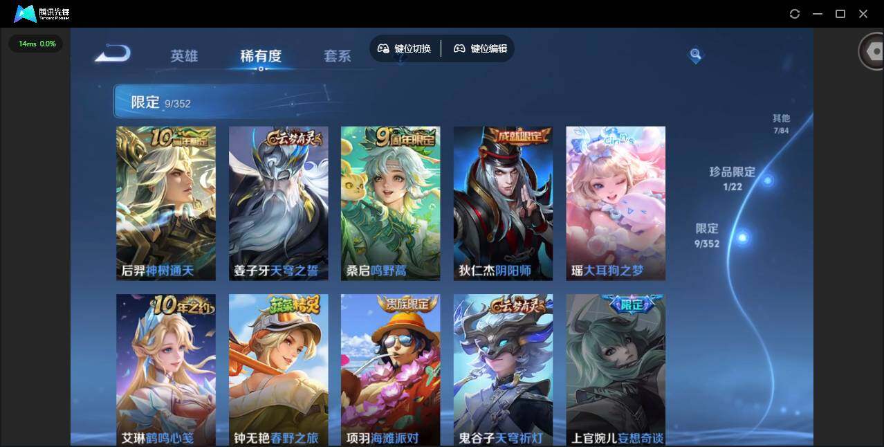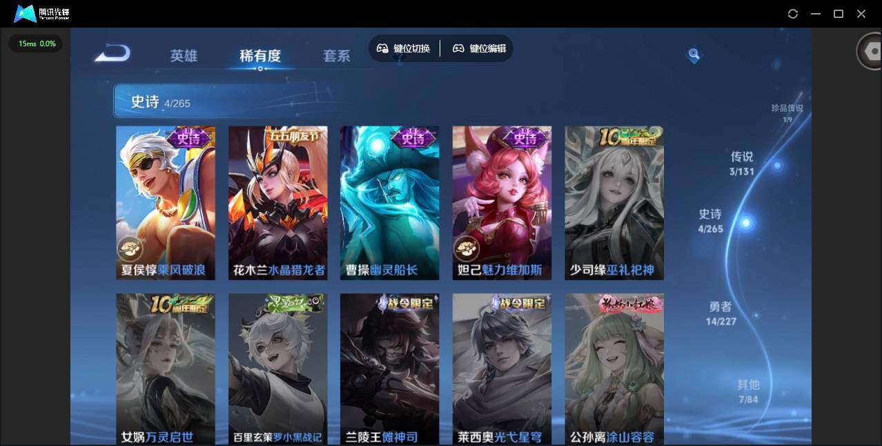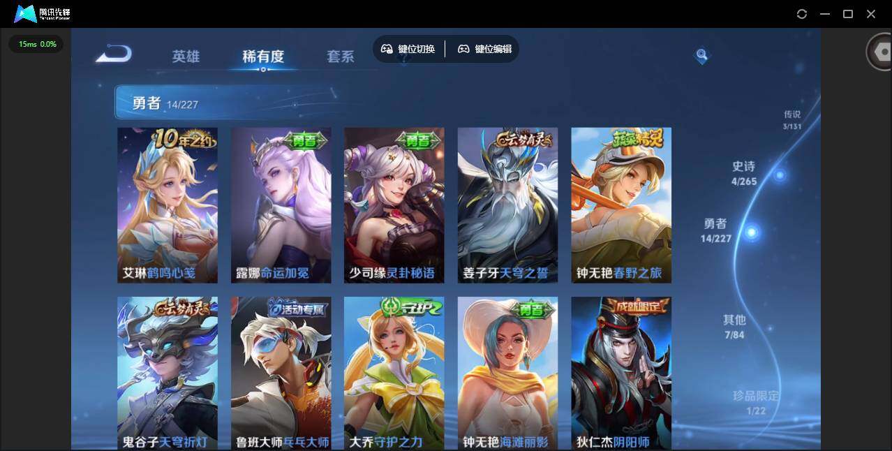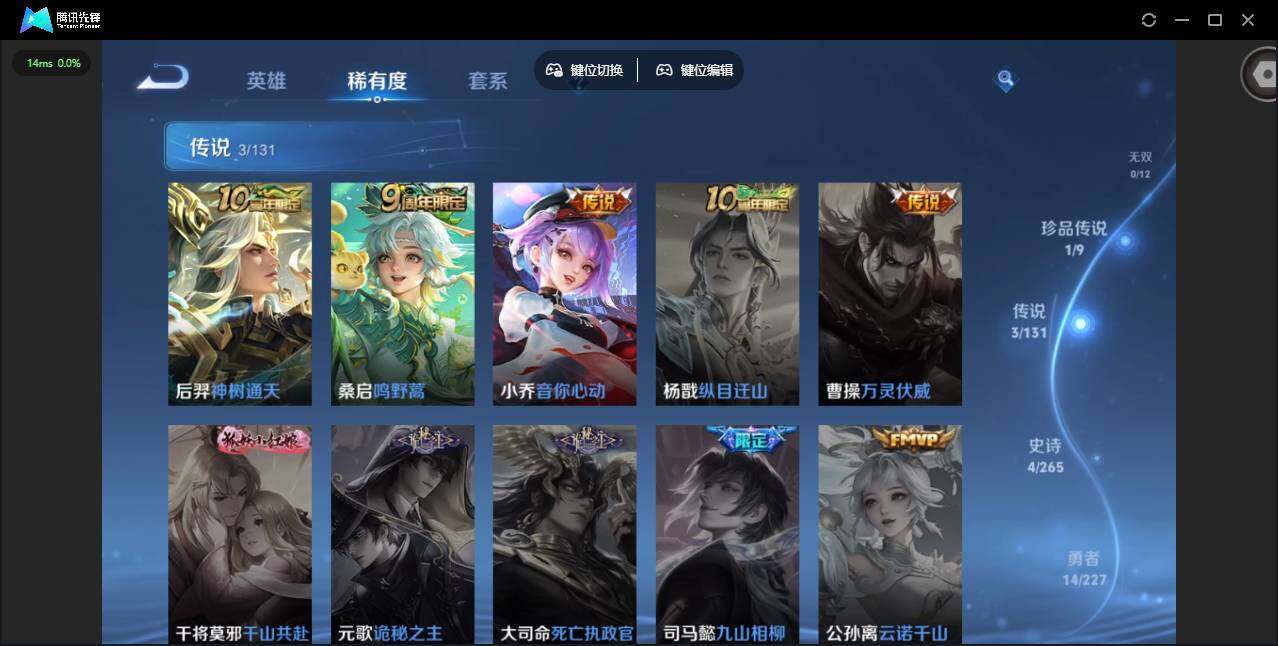 51英雄-29皮肤-贵族等级: v4 英雄数: 51 皮肤数: 29 珍品传说: 大耳狗之梦 传说皮: 音你心动-小乔神树通天 限定皮: 鸣野蒿