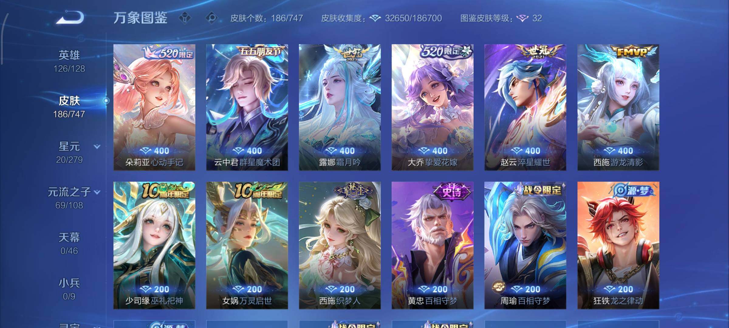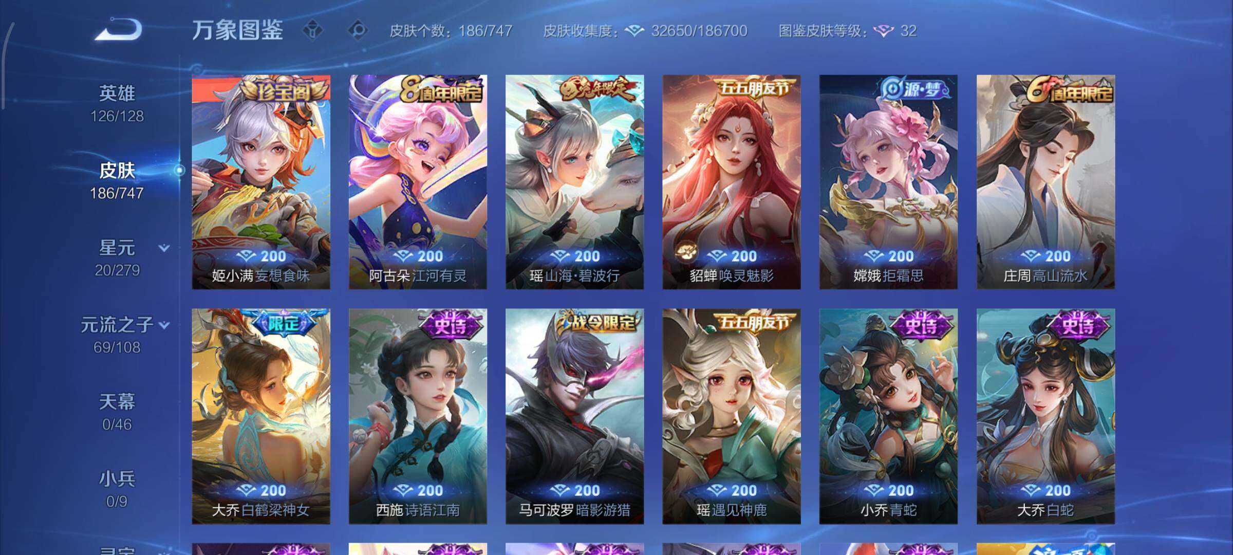 【漂亮女号·馥梦繁花·准全皮瑶·拾光映像·瑶真我赫兹·大耳狗之梦·续相思·愿照福禄聚·愿照众生和·朵莉亚心动手记·挚爱花嫁·游龙清影·云诺千山·山海碧波行·遇见神鹿·白蛇·青蛇·可二次】w8821-安卓q-126英雄-186皮肤-3王者印记-160铭文-贵族积分4w【贵族7】【1典藏·1珍品无双·1无双·1珍品·14传说·28按键·259幸运值】【因赛季更新游戏段付以上号为准!】 【英雄全