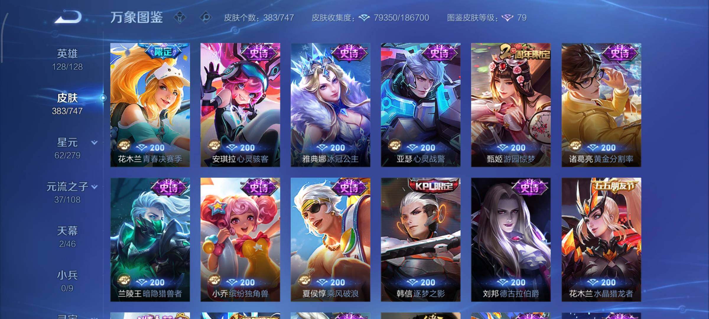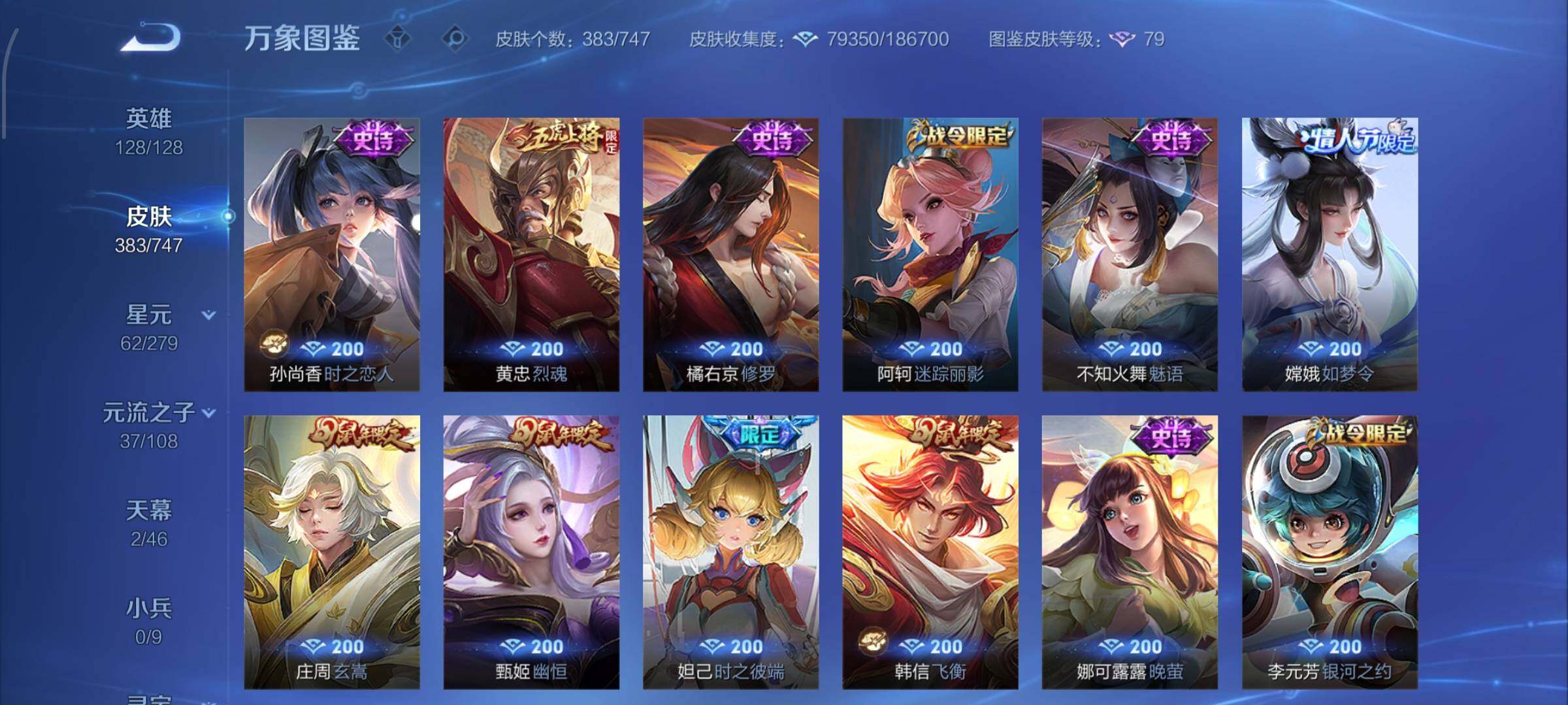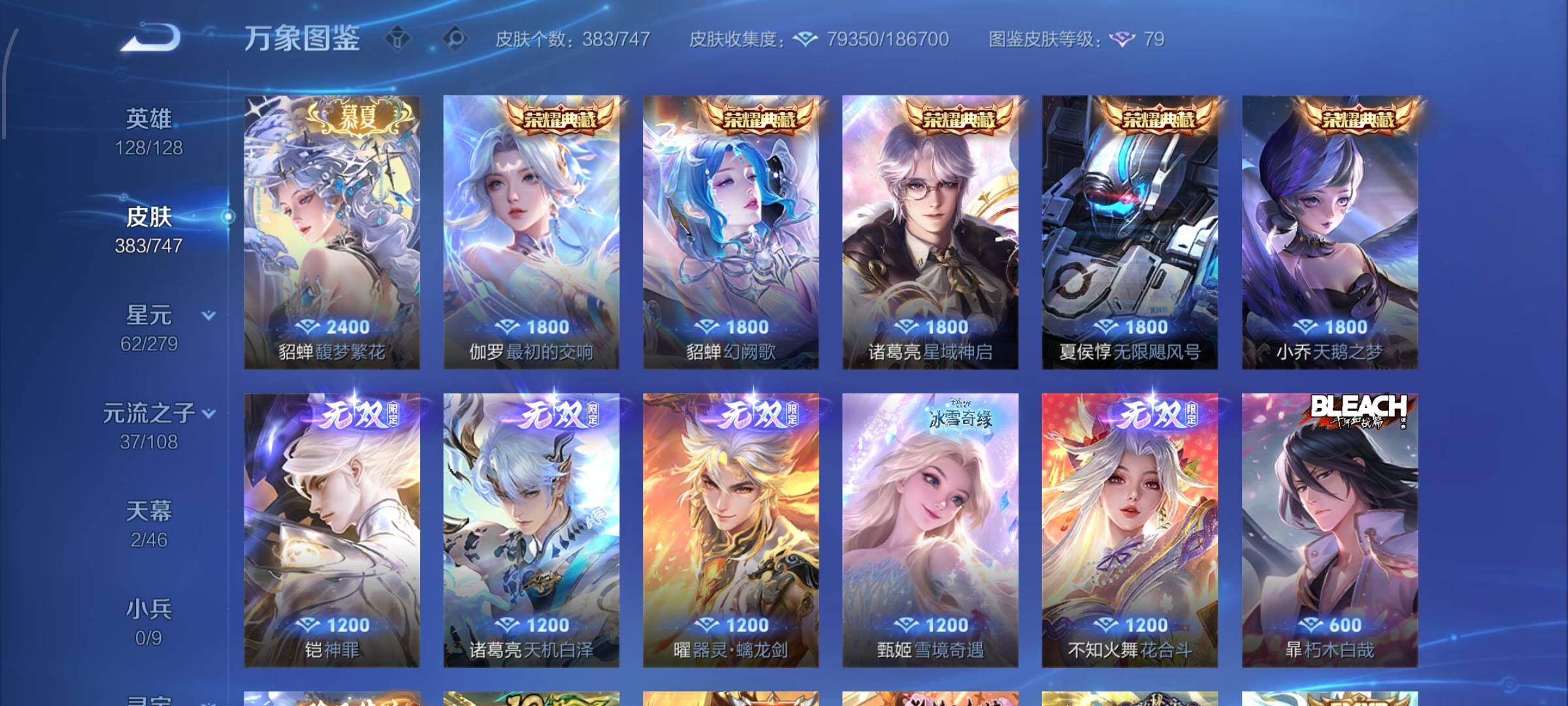【店铺主推·无双v10·7w流光积分·馥梦繁花·6典藏·5无双·2珍品·蛇年全限定·多年限·天鹅之梦·幻阙歌·花合斗·器灵螭龙剑·朽木白哉·318个性戳戳·无尽之约天幕·可二次】w8833-安卓q-128英雄-383皮肤-14王者印记-300铭文-贵族积分26w【无双贵族11】【6典藏·1珍品无双·5无双·2珍品·4星传说·51传说·2天幕·38按键·318个性戳戳】【因赛季更新游戏段付以