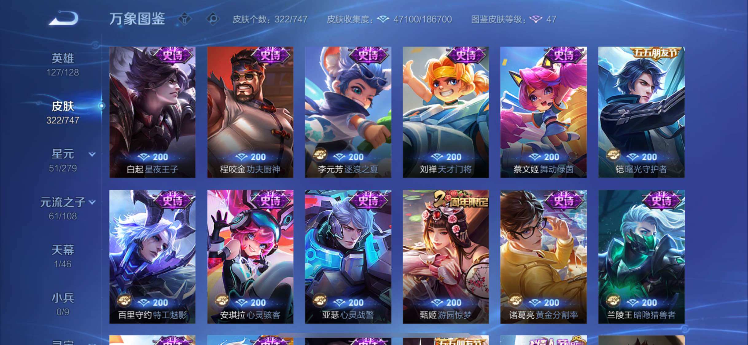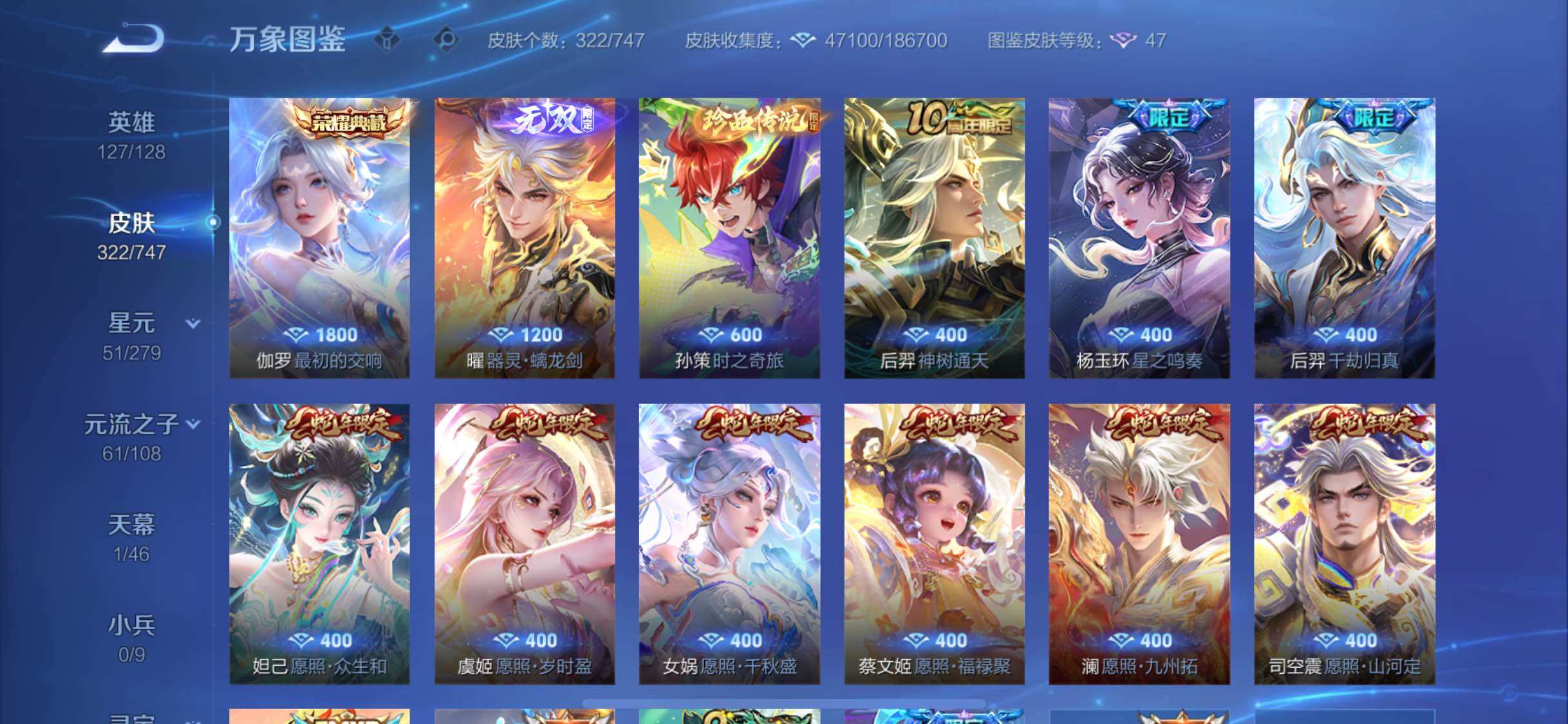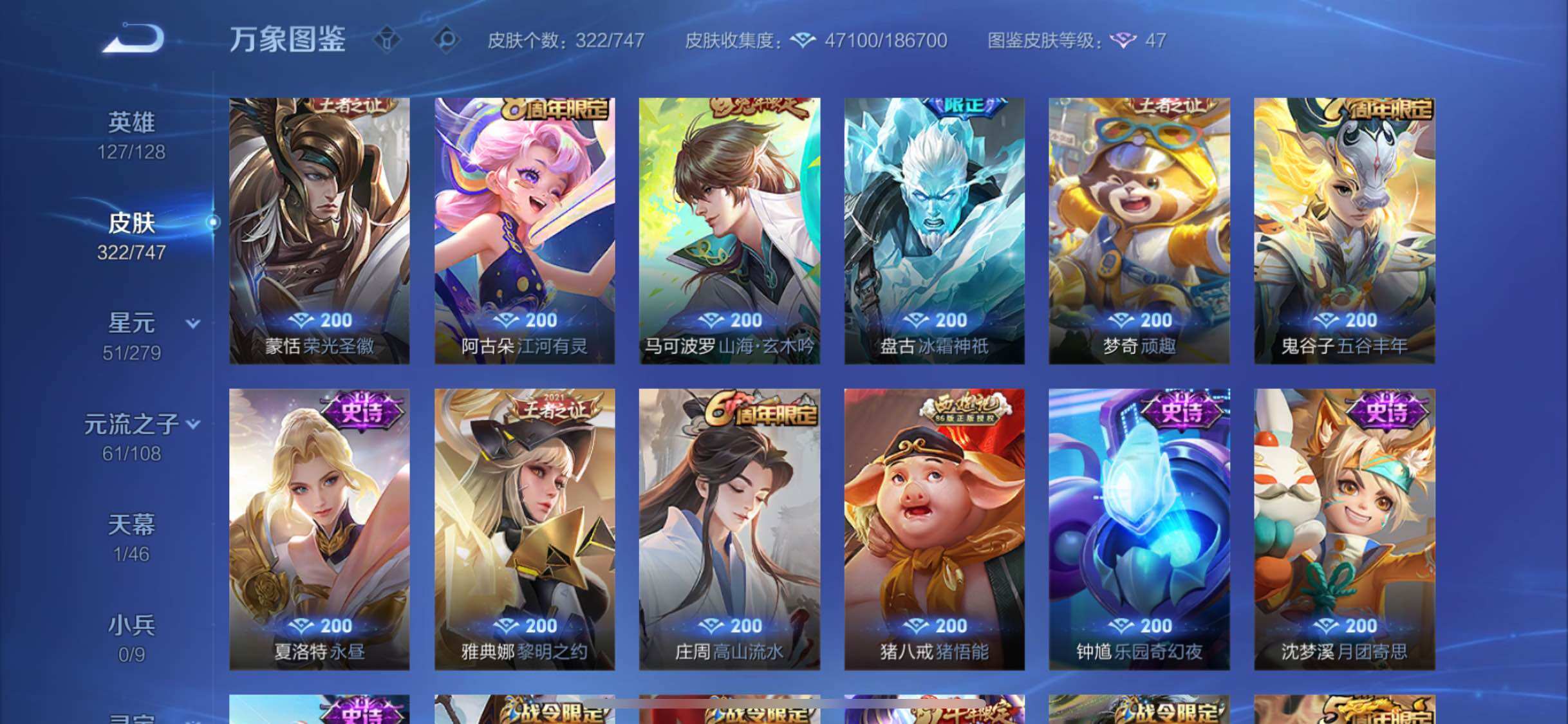 【店长推荐·蛇年全限定·器灵螭龙剑·最初的交响·孙策时之奇旅·星之鸣奏·祥瑞亨通·妄想实况·时雨天司·山海玄木吟·至尊宝·时之思念·共赏芳华天幕·可二次】w8843-苹果q-127英雄-322皮肤-26王者印记-300铭文-贵族积分7w【贵族8】【1典藏·1无双·1珍品·1星传说·20传说·1天幕·9按键】【因赛季更新游戏段付以上号为准!】 【英雄全皮】:达摩全皮,刘邦全皮,孙权全皮,钟馗