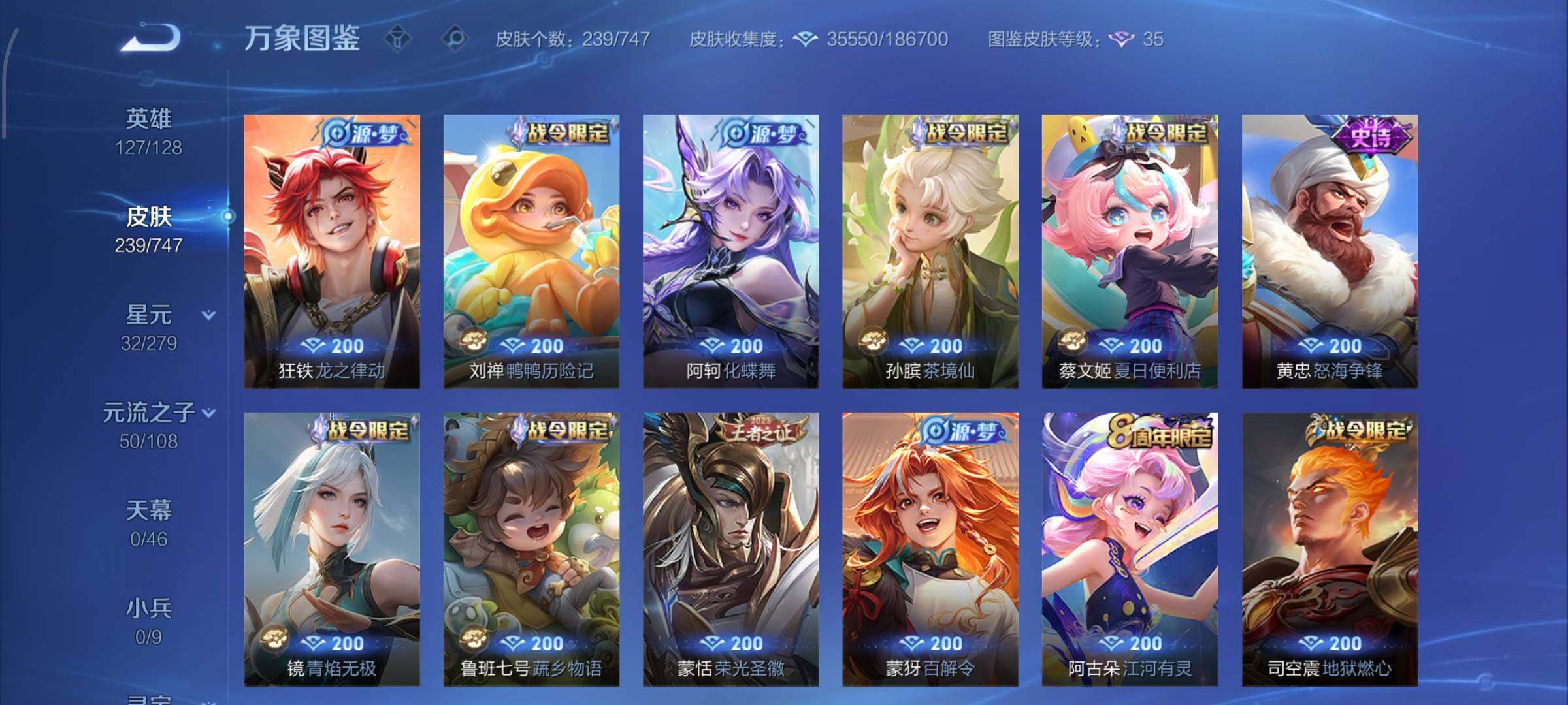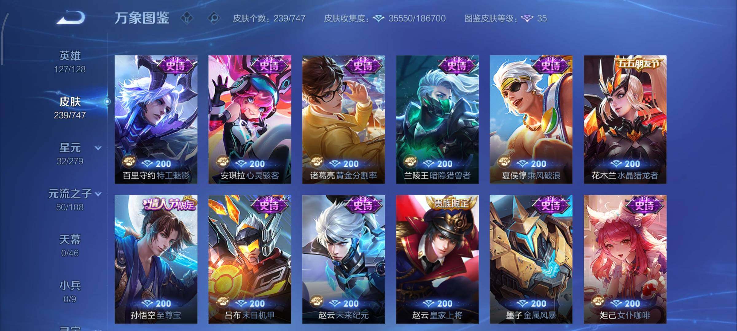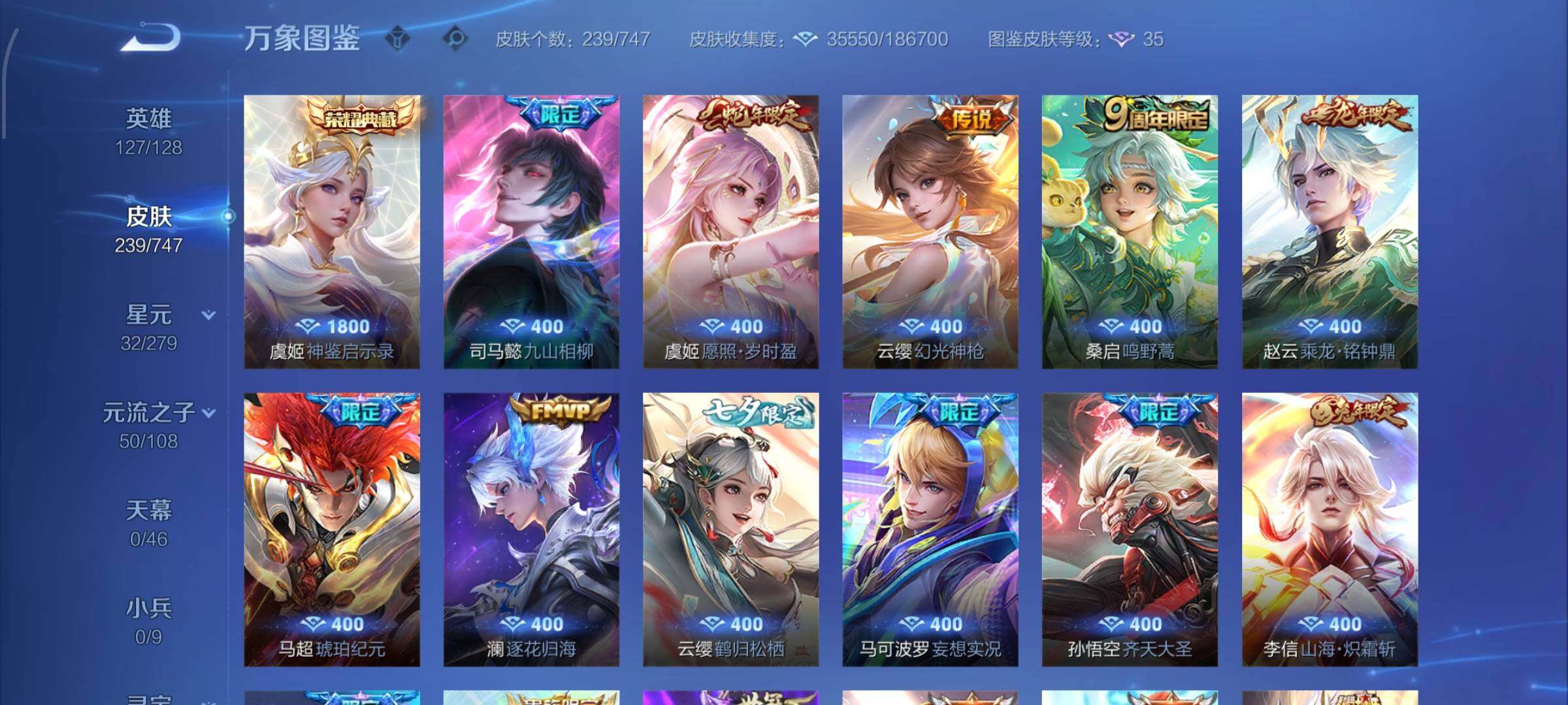 【高性价比·神鉴启示录·九山相柳·愿照岁时盈·乘龙铭钟鼎·马超琥珀纪元·澜逐花归海·鹤归松栖·妄想实况·齐天大圣·山海炽霜斩·深海之息·一念神魔·御风骁将·可二次】w8830-安卓q-127英雄-239皮肤-10王者印记-140铭文-贵族积分5w【贵族8】【1典藏·1星传说·19传说·10按键】【因赛季更新游戏段付以上号为准!】 【英雄全皮】:司马懿全皮,孙权全皮,李信全皮,戈娅全皮,空空