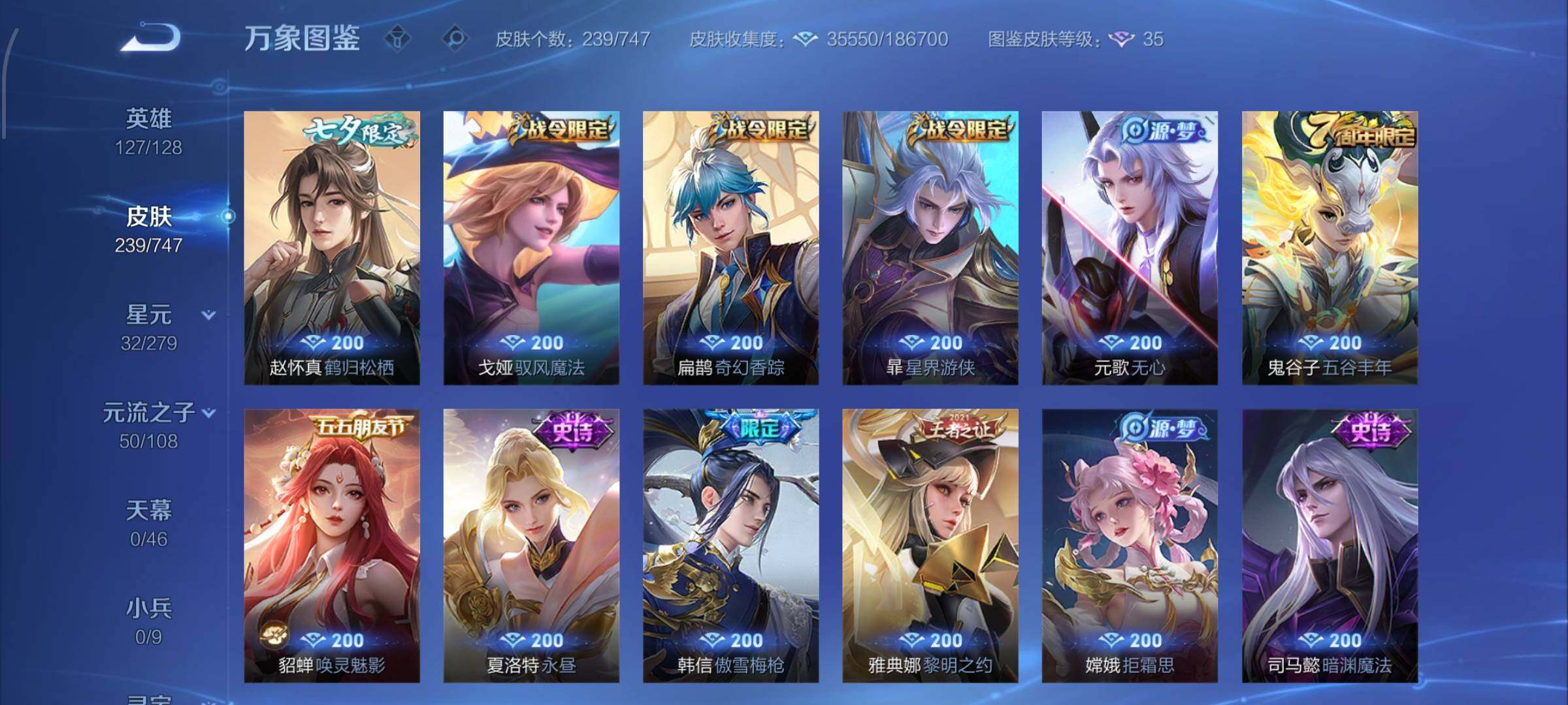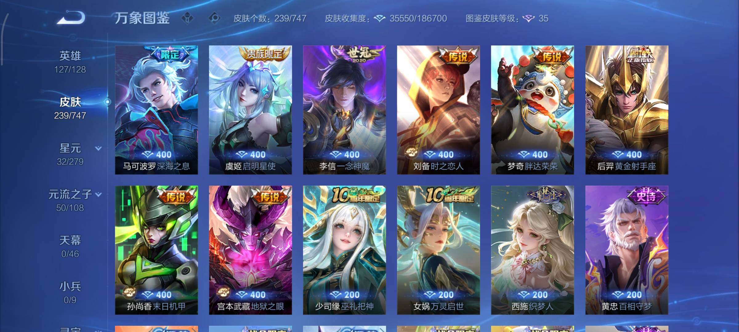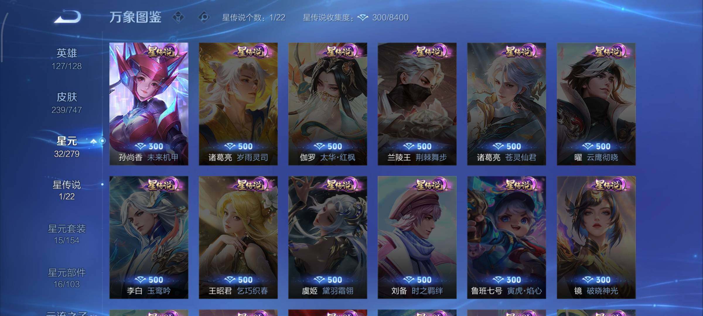 【高性价比·神鉴启示录·九山相柳·愿照岁时盈·乘龙铭钟鼎·马超琥珀纪元·澜逐花归海·鹤归松栖·妄想实况·齐天大圣·山海炽霜斩·深海之息·一念神魔·御风骁将·可二次】w8830-安卓q-127英雄-239皮肤-10王者印记-140铭文-贵族积分5w【贵族8】【1典藏·1星传说·19传说·10按键】【因赛季更新游戏段付以上号为准!】 【英雄全皮】:司马懿全皮,孙权全皮,李信全皮,戈娅全皮,空空