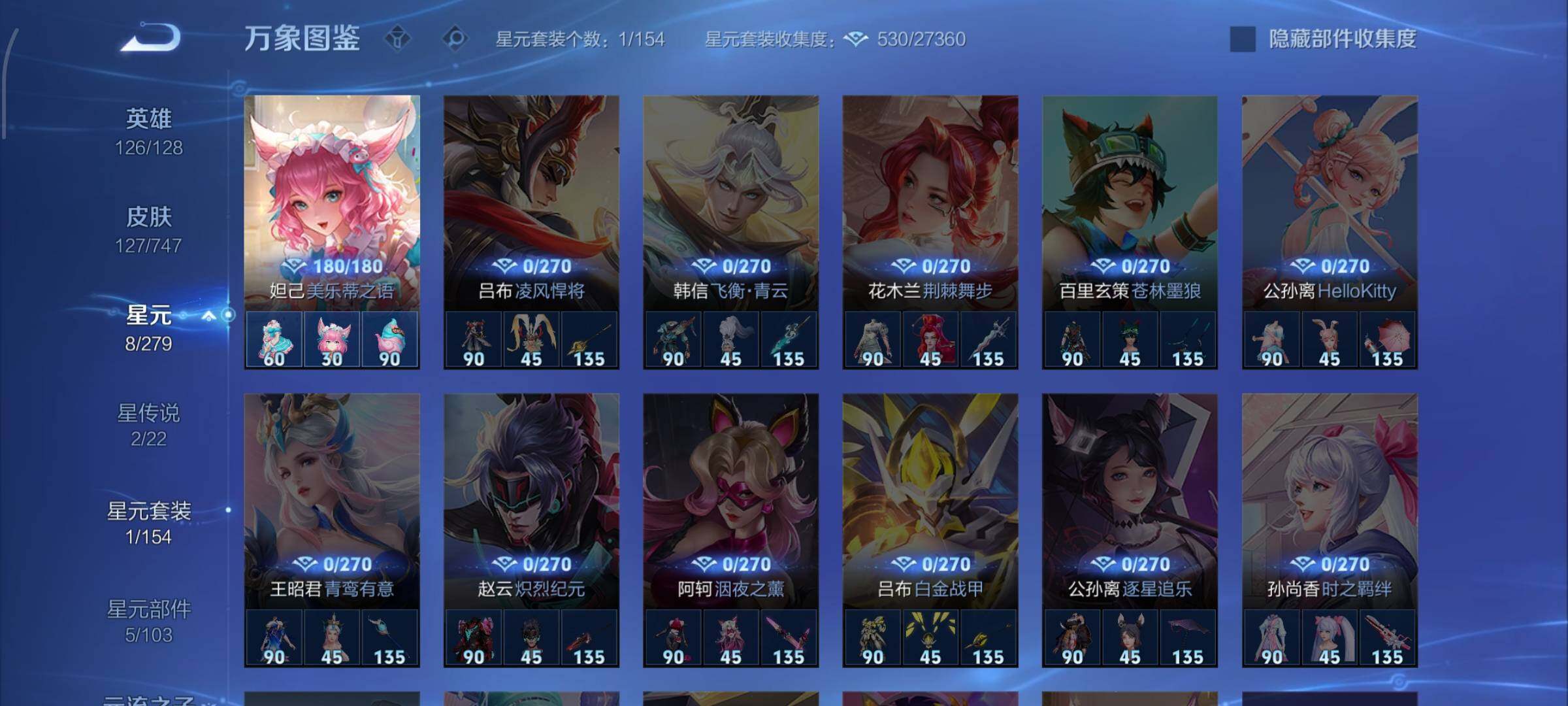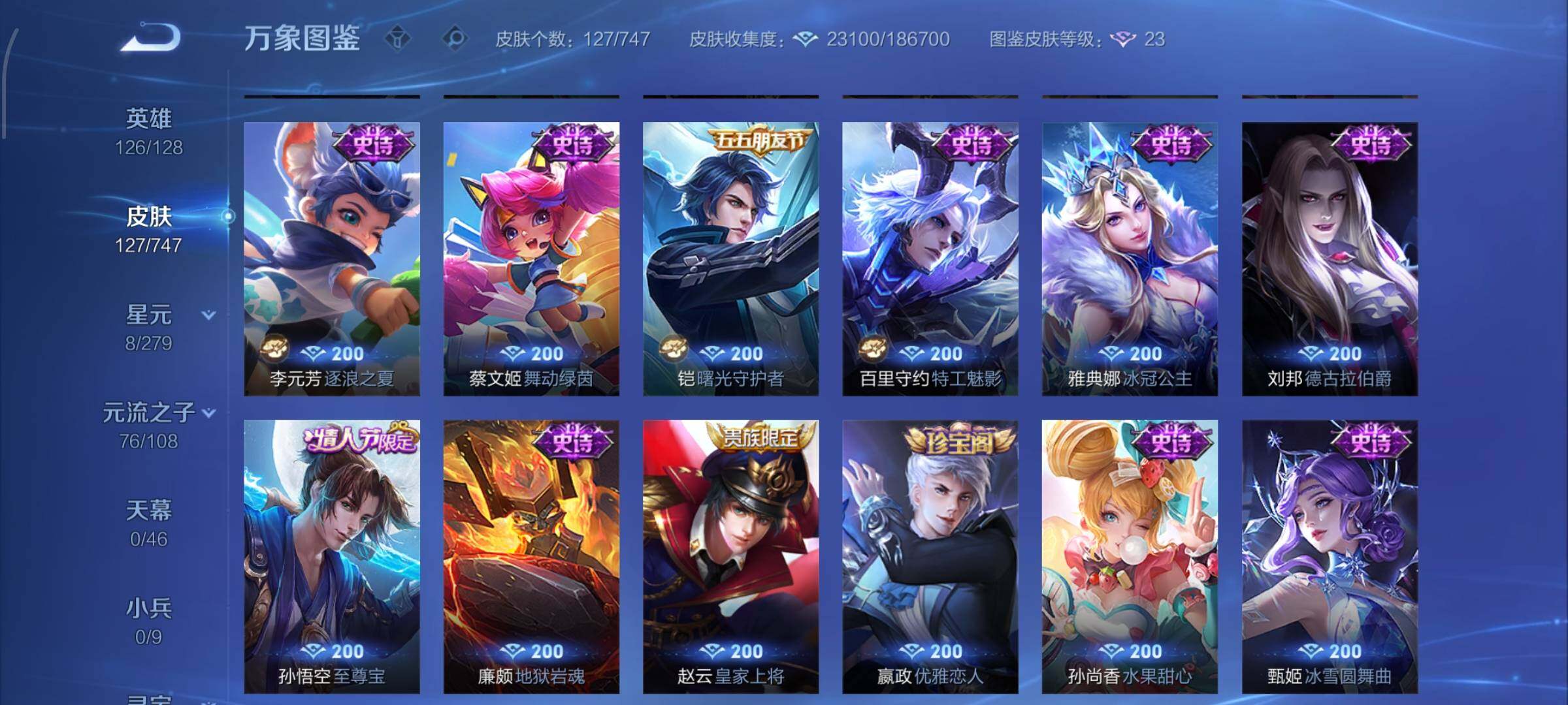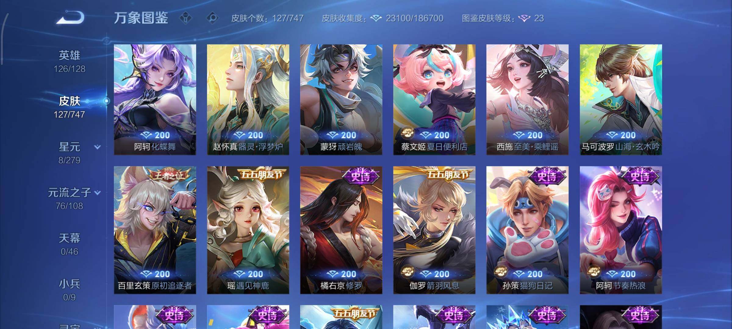 【高性价比·珍品无双馥梦繁花·瑶大耳狗之梦·酷洛米之心·暃朽木白哉·黑崎一护·愿照岁时盈·寅虎赤拳·马可波罗山海玄木吟·可二次】w8852-安卓q-126英雄-127皮肤-5王者印记-100铭文-贵族积分3w【贵族7】【1珍品无双·4珍品·2星传说·10传说·11按键·228幸运值】【因赛季更新游戏段付以上号为准!】 【英雄全皮】:空空儿全皮 【珍品无双】:貂蝉馥梦繁花 【珍品传说】:瑶大