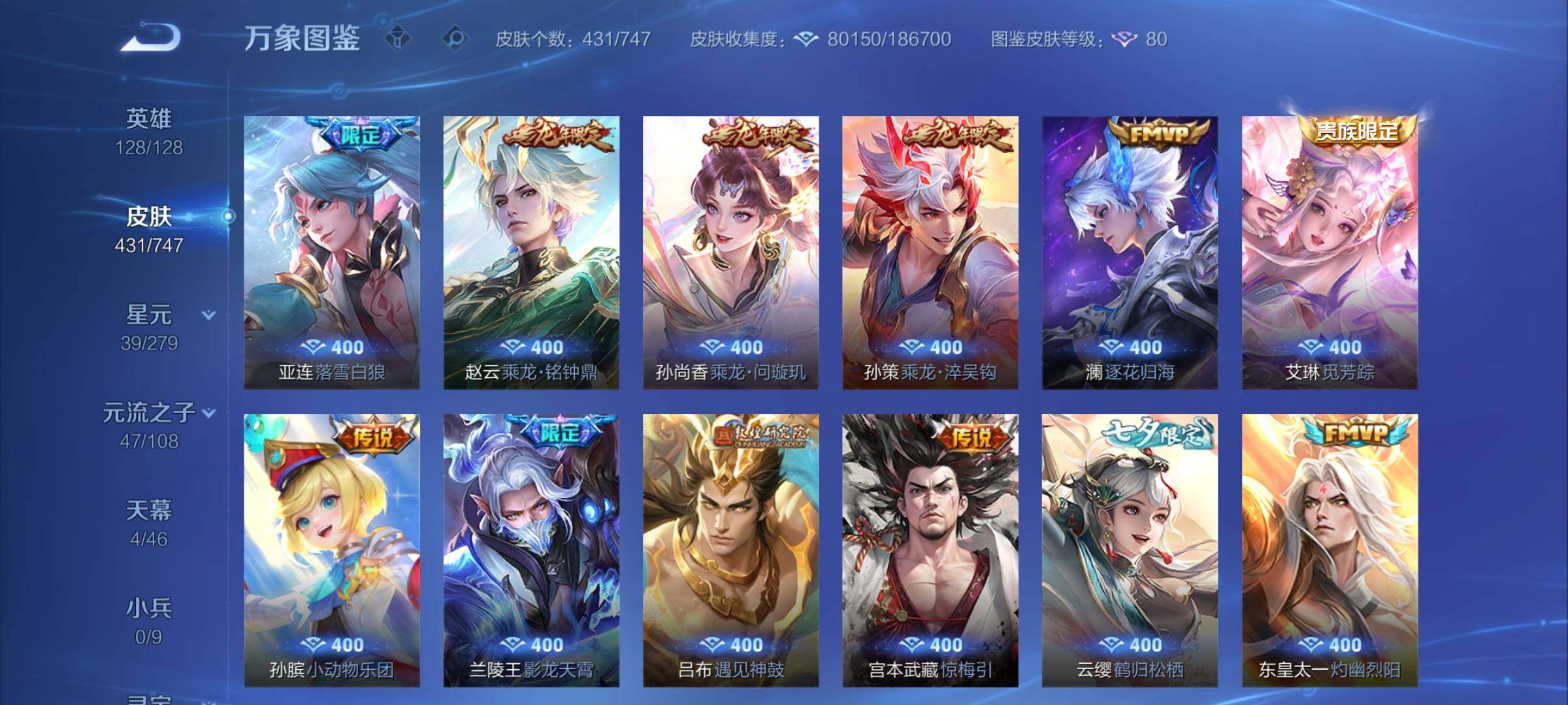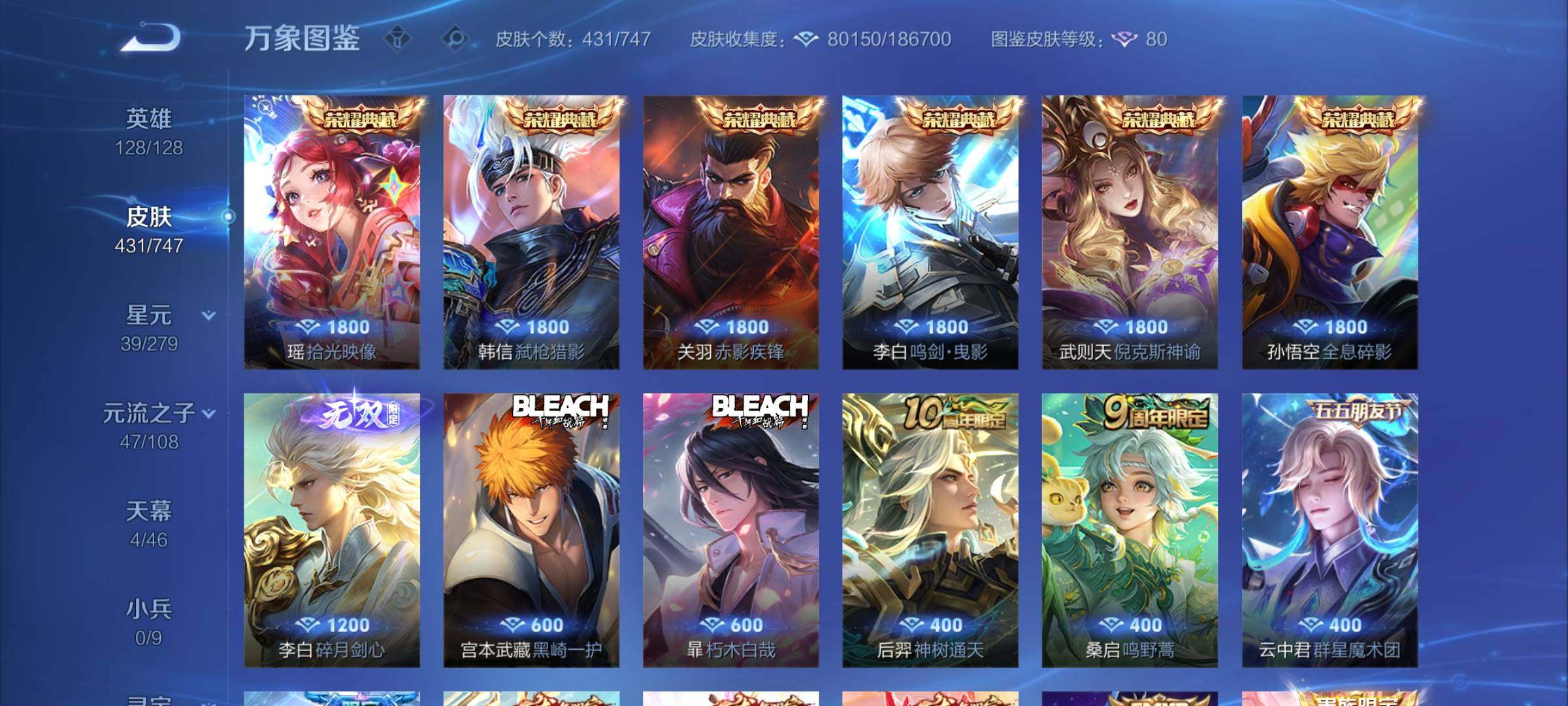 【店长主推精品v10·7典藏·1无双·2珍品·4天幕·全皮宫本武藏·鸣剑曳影·拾光映像·碎月剑心·朽木白哉·黑崎一护·龙年全套·五虎全套·鼠年全套·牛年全套·虎年全套·254个性戳戳】【可二次】w8957-安卓q-128英雄-431皮肤-21王者印记-满级铭文-贵族积分24w【贵族10】【7典藏·1无双·2珍品·3星传说·51传说·4天幕·11按键·254个性戳戳·250幸运值】【因赛季更