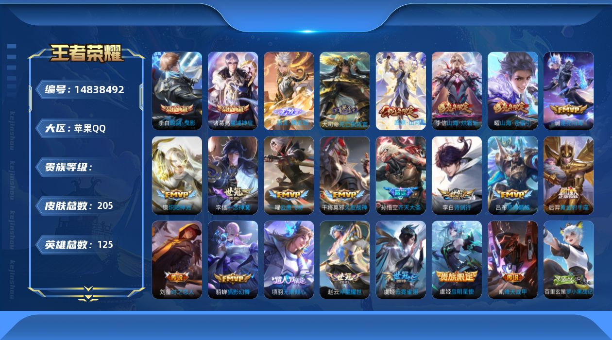 [14838492]王者 可二次 猛男带妹号 1无双 2典藏 21传 金标曜 金标大司命 金标干将莫邪 器灵螭龙剑 星域神启 鸣剑曳影 千山共赴 死亡执政官 愿照山河定 逐花归海 无限倾心 齐天大圣 山海苍雷引 山海炽霜斩 怒海麟威 诗剑行 淬星耀世 绛天战甲 炽阳神光 启明星使 云鹰飞将 一念神魔 时之恋人 猫影幻舞 久胜战神 云霓雀翎 黄金射手座 时之思念 山海玄木吟 东方月初 器灵浮梦炉