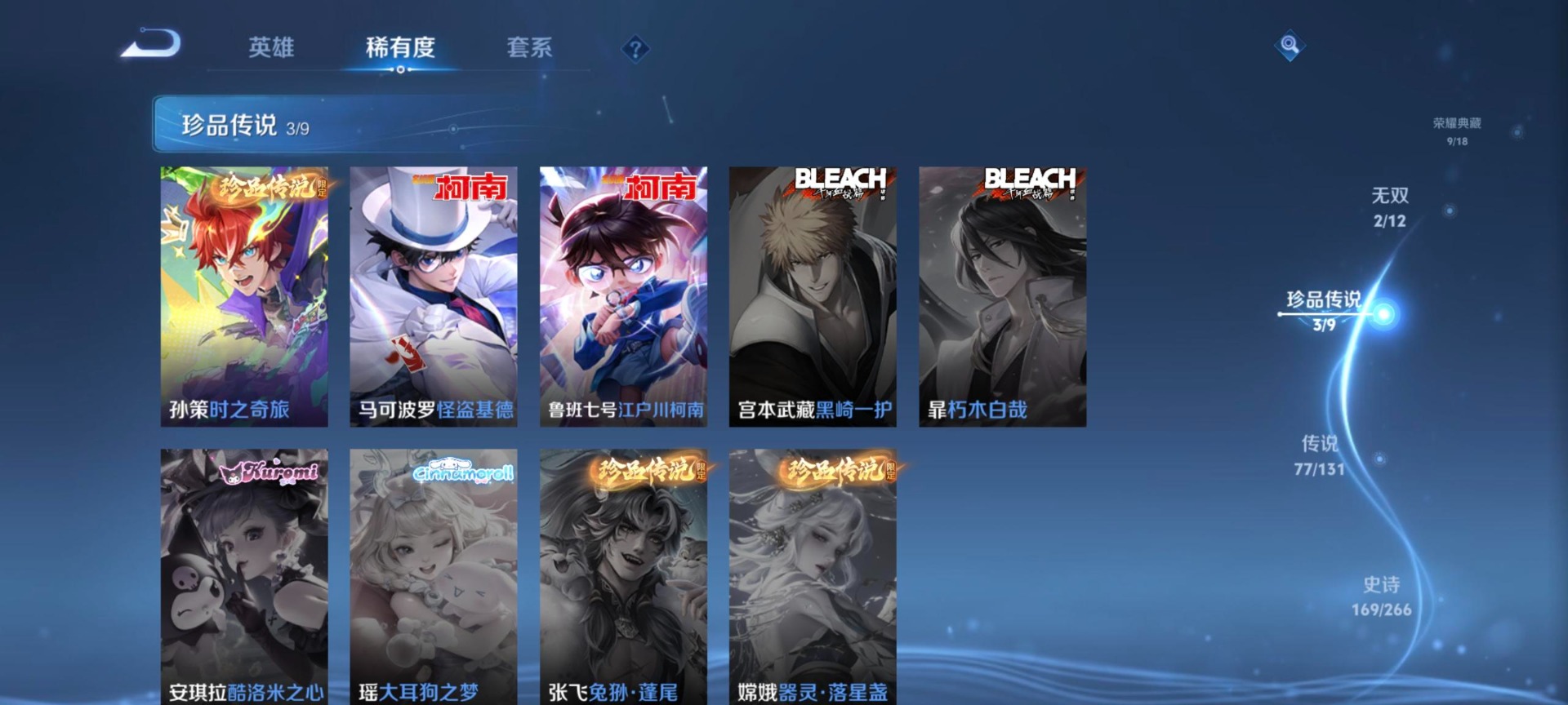 v10 9典藏 2无双 3珍品传说 77传说 128英雄 522皮肤 典藏英雄武则天 可修改实名 【英雄全皮】:司空震全皮花木兰全皮蒙恬全皮苏烈全皮敖隐全皮空空儿全皮狂铁全皮鬼谷子全皮戈娅全皮钟馗全皮夏洛特全皮影全皮 【稀有英雄】:敖隐小龙人大司命嬴政始皇帝韩信