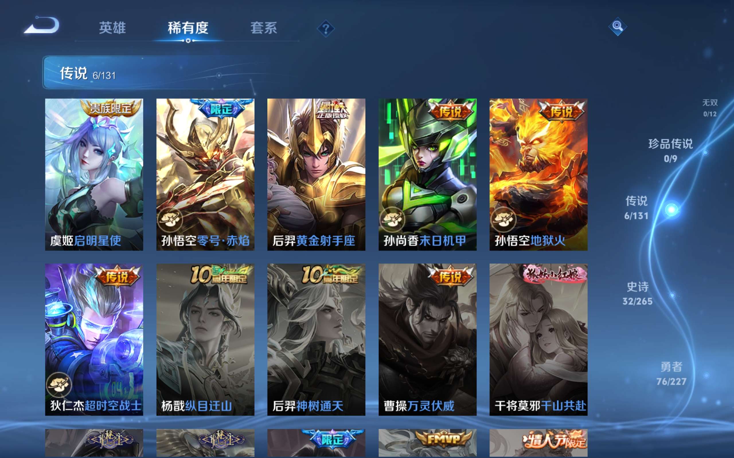126英雄-160皮肤-安卓qq/v8/孙悟空差3张/全息碎影 孙悟空星空梦想 鲁班七号/160皮肤/126英雄/2典藏/0珍品无双/0无双/0珍品传说/6传说/32史诗/8稀有英雄【2 典藏皮肤】全息碎影 孙悟空星空梦想 鲁班七号【6 传说皮肤】启明星使 虞姬零号·赤焰 孙悟空地狱火 孙悟空黄金射手座 后羿末日机甲 孙尚香超时空战士 狄仁杰【32 史诗皮肤】紫霞仙子 露娜苍穹之光 项羽妄想
