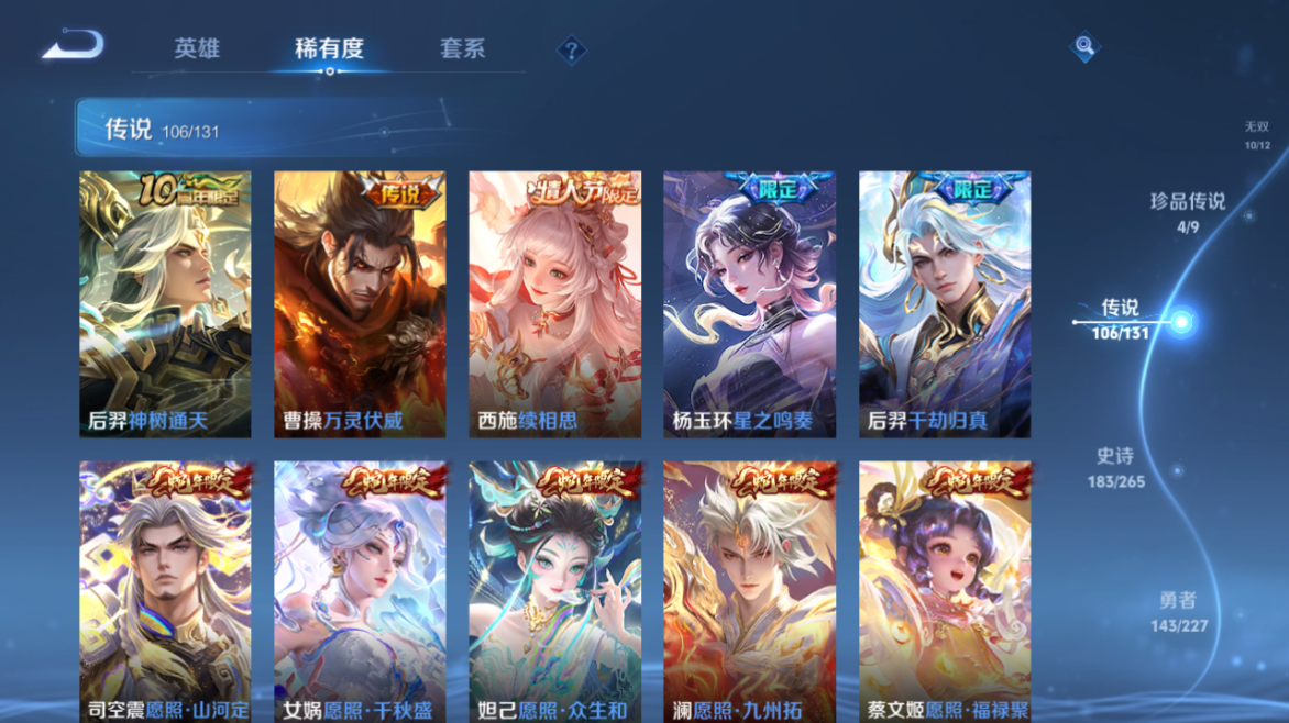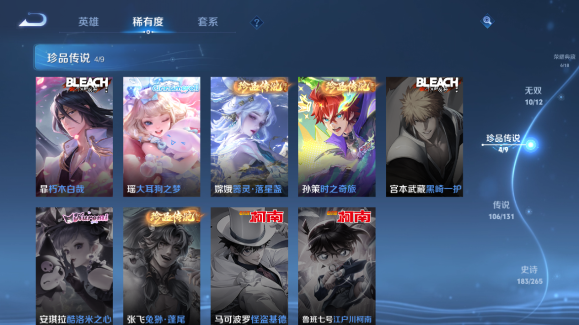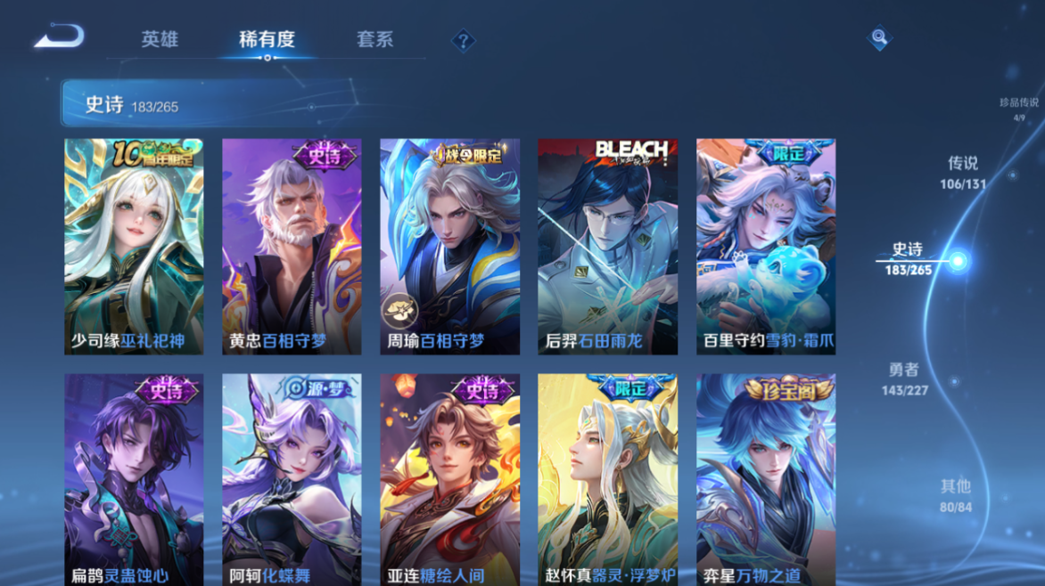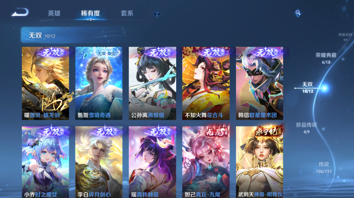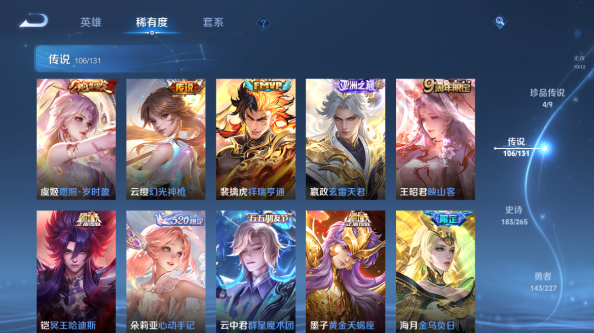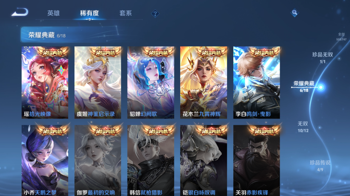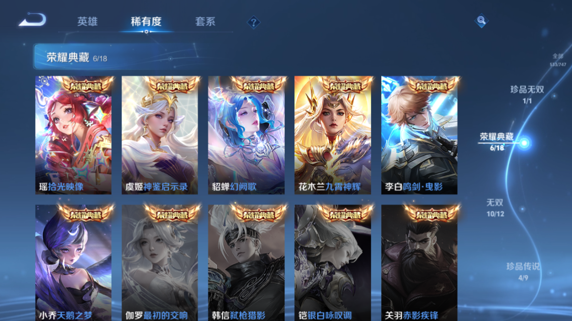 【王者荣耀】【lywz23985】珍品无双1 典藏6 无双10 珍品传说4 传说106 史诗183 英雄128 皮肤533 贵族无双级 珍品无双:馥梦繁花__荣耀典藏:天鹅之梦|武则天|神鉴启示录|幻阙歌|九霄神辉|鸣剑·曳影|拾光映像__无双皮肤:群星魔术团|时之魔女|碎月剑心|真我赫兹|离恨烟|花合斗|雪境奇遇|器灵·螭龙剑|青丘·九尾|神器·明辉仪__珍品传说:孙策-时之奇旅|器灵·落星盏|大耳狗之梦|朽木白哉__传说皮肤:枫霜尽|前尘镜|音你闪耀|深海之息|无尽星芒|无双飞将|挚爱花嫁|挚爱之约|启示之音|花朝如约|补天|绛天战甲|炽阳神光|启明星使|胖达荣荣|地狱之眼|孙策-末日机甲|仲夏夜之梦|云霓雀翎|黄金狮子座|黄金射手座|猫影幻舞|刘备-时之恋人|一念神魔|云鹰飞将|飞鸢探春|李|游龙清影|乞巧织情|淬星耀世|瑶-时之祈愿|炽翼辉光|电玩·雷克斯|绯月行|浮生妄|鹤羽星尊|画中仙|记忆之芯|孙尚香-末日机甲|齐天大圣|白虎志|安琪拉-追逃游戏|大乔-时之奇旅|凤求凰|黄金天蝎座|金乌负日|惊梅引|铠-琥珀纪元|兰陵王-默契交锋|落雪白狼|吕布-曦玄引|马超-琥珀纪元|怒海麟威|祈雪灵祝|燃星之曲|诗剑行|时雨天司|霜月吟|碎云|妄想奇谈|妄想实况|武陵仙君|武圣|貂蝉-曦玄引|项羽-无限倾心|小动物乐团|小乔-音你心动|星穹之声|亚瑟-追逃游戏|夜礼服假面|寅虎·瑞焰|永恒水手月亮|虞姬-无限倾心|战鼓燎原|周瑜-音你心动|逐花归海|乘龙·淬吴钩|乘龙·铭钟鼎|乘龙·问璇玑|云缨-鹤归松栖|觅芳踪|山海·苍雷引|山海·炽霜斩|山海·琳琅生|神器·狴犴令|朵莉亚-心动手记|寅虎·赤拳|云中君-群星魔术团|至美·化雀舞|冥王哈迪斯|映山客|张飞-百相守梦|玄雷天君|幻光神呛|祥瑞亨通|愿照·岁时盈|愿照·山河定|愿照·九州拓|愿照·众生和|愿照·福禄聚|星之鸣奏|愿照·千秋盛|千劫归真|续相思|万灵伏威|神树通天__稀有限定:寅虎·展翼|寅虎·心曲|御风骁将|白晶晶|至尊宝|青龙志|朱雀志|虞姬-霸王别姬|大圣娶亲|一生所爱|玄嵩|幽恒|飞衡|蔷薇恋人|蜜橘之夏|神威|龙胆|白鹤梁神女|孙行者|女儿国国王|傲雪梅呛|玉兔公主|山海·碧波行|山海·玄木吟|神器·万象笔|唐三藏|拒霜思|暗影游猎|百解令|百木心呛|冰锋战神|冰霜神祇|超元猎域|妲己-时之奇旅|大漠名商|地狱燃心|电玩高手|凤凰于飞|古海寻踪|海滩派对|海盐诗旅|幻夜卜梦|皇家上将|辉光之辰|剑破天穹|江河有灵|金庭之子|镜-真我赫兹|决胜骁骑|黎明之约|梦圆繁星|魔法小厨娘|魔术师|花木兰-默契交锋|匿光决锋者|匿光破解者|匿光启智者|匿光侦查者|匿光追影者|奇幻香踪|擒涛扼浪|青焰无极|燃音魔法|热情桑巴|荣光圣徽|沙漠行僧|探海日志|天狼绘梦者|天狼狩猎者|天穹祈灯|无心|五谷丰年|午后时光|纤云弄巧|项羽-霸王别姬|星界游侠|夜都怪侠|夜都魔契|阴阳师|吟游魔法|优雅恋人|游园惊梦|驭风魔法|原初追逐者|云端筑梦师|逐梦之音|暗夜贵公子|暗夜猫娘|暗隐猎兽者|暗渊魔法|白龙吟|白蛇|缤纷独角兽|冰冠公主|冰雪圆舞曲|苍穹之光|乘风破浪|乘龙·聚宝船|乘龙·忆丹青|大乔-猫狗日记|德古拉伯爵|地狱岩魂|电玩·爆裂旋风|电玩·兔顽号|电玩小子|浮梦罗烟|伽罗-琥珀纪元|功夫厨神|鬼剑武藏|唤灵魅影|黄金分割率|箭羽风息|节奏热浪|金属风暴|莱西奥-末日机甲|乐园奇幻夜|李元芳-蔬乡物语|龙鼓争鸣|龙骑士|吕布-末日机甲|玫瑰异探|魅力维加斯|魅语|梦奇-顽趣|女仆咖啡|偶像歌手|奇遇舞章|奇遇星旅|千筹问战|青蛇|热力回旋|赏金猎手|上官婉儿-群星魔术团|绅士熊喵|圣诞狂欢|圣诞恋歌|诗语江南|鲁班七号-蔬乡物语|水果甜心|水晶猎龙者|孙策-猫狗日记|滕王阁序|天才门将|晚萤|赵云-未来纪元|星夜王子|雪夜绮愿|摇滚巨星|夜落电台|银翎春语|鹰眼统帅|永昼|幽灵船长|遇见神鹿|月团寄思|云中君-时之祈愿|至美·乘鲤谣|钟无艳-超时空战士|逐浪之夏|紫霞仙子|赵怀真-鹤归松栖|陌上桑|谪仙醉月|炽弈燎原|撼地雄心|破空之剑|东方月初|涂山红红|埋骨钱|蔡文姬-夏日便利店|虞姬-夏日便利店|天穹之誓|浮光幕影|怒海争锋|海诺-心动手记|安琪拉-时之奇旅|修罗|曙光守护者|心灵战警|千年之狐|孙尚香-时之恋人|无限星赏官|舞动绿茵|特工魅影|心灵骇客|飞车小橘子|茶境仙|星界战将|谧流熔炉|苍鳞隐世|万物之道|器灵·浮梦炉|糖绘人间|化蝶舞|云中旅人|玲珑珍味|孙悟空-神迹守卫|达摩-星际陆战队|流音漫舞|访茗客|暖冬·兔眠|灵卜魔法|苍威无极|落雪兰心|死神来了|灵蛊蚀心|雪豹·霜爪|布丁狗之约|石田雨龙|逆浪荇歌|孙策-百相守梦|周瑜-百相守梦|黄忠-百相守梦|荣光之誓|巫礼祀神|鹤鸣心笺__优质皮肤:尼罗河女神|一千零一夜|创世神祝|年年有余|埃及法老|孤猎|木偶奇遇记|熊喵少女|午夜歌剧院|露花倒影|未来旅行|激情绿茵|海之征途|天启骑士|碧珀绯影|秩序猎龙将|锦衣卫|冰刃幻境|森|超能战警|英喵野望|维京掠夺者|海军大将|绯红之刃|踏雪寻梅|启蛰|战争骑士|伊势巫女|画中游|生化警戒|威尼斯狂欢|第七人偶|潮流仙人|芝加哥教父|街头旋风|绝影神呛|地府判官|荷鲁斯之眼|幸存者|赤焰之缨|福禄兄弟|隐刃|前尘|特种部队|三太子|精灵王|剑舞者|范海辛|星航指挥官|龙域领主|爱与和平|占星师|花间舞|魇语军师|极冰防御线|花见巫女|棒球奇才|东海龙王|蔷薇王座|灼热之刃|精准探案法|圣殿之光|帝国元帅|战争女神|霓裳曲|加勒比小姐|