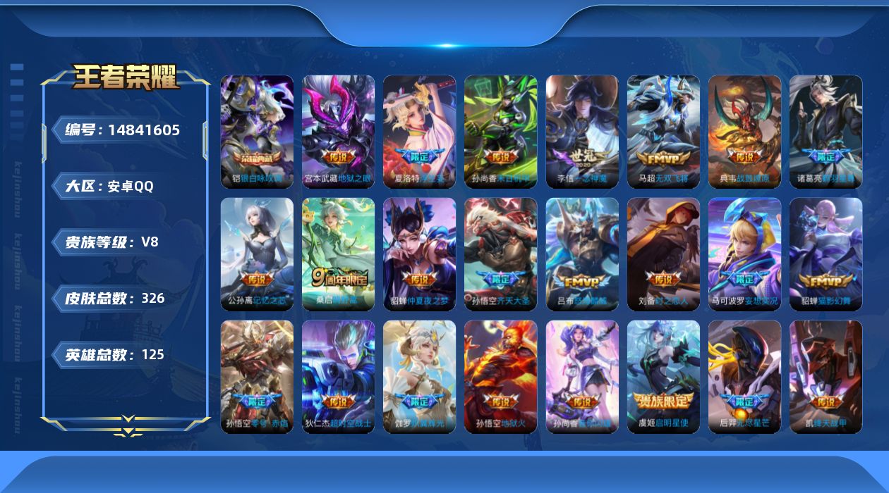 [14841605]v8 1典藏 24传说 125英雄 326皮肤 可修改实名 【英雄全皮】:空空儿全皮孙权全皮戈娅全皮 【稀有英雄】:大司命韩信韩跳跳夏洛特夏师傅艾琳橘右京橘子娜可露露鸟人不知火舞赵云金蝉唐僧戈娅 【荣耀水晶】:银白咏叹调倪克斯侍卫 【传说皮】:典韦战鼓燎原神树通天零号·赤焰地狱火仲夏夜之梦大飞蛾地狱之眼末日机甲-孙尚香绿蚂蚱一念神魔猫影幻舞无双飞将时之恋人-刘备电焊工绛天战甲鸡嘴战神超时空战士-狄仁杰音你闪耀rap皮炽翼辉光娃娃菜牛角包浮生妄记忆之芯机甲兔鹤羽星尊妄想实况 【珍宝阁皮】:蔷薇恋人女武神玩趣恶龙 【赛季/战令皮】:噬灭天穹s37古海寻踪s33星界游侠海盐诗旅s30擒涛扼浪s31潮玩骑兵奇幻香踪探海日志s32驭风魔法玲珑珍味剑破天穹s35天穹祈灯s34青焰无极苍威无极天穹之誓s36蔡文姬夏日便利店虞姬夏日便利店暖冬·兔眠混沌棋s18疑决卦s19万华元夜s22演武夺筹s23驱傩正仪s24千军破阵s25猎兽之王沙漠行僧s26幻夜卜梦夜都怪侠金庭之子s27电玩高手电玩铁子午后时光大漠名商s28云中旅人s29超时空战士-钟无艳落雪兰心 【史诗皮】:化蝶舞龙之律动百相守梦-黄忠茶境仙芈月浮光幕影怒海争锋决胜骁骑蔬乡物语鲁班七号万灵启世特工魅影千年之狐江河有灵高渐离燃音魔法百解令蒙犽龙骑士小龙虾偶像歌手电玩·爆裂旋风百相守梦刘备末日机甲-吕布猫狗日记-孙策时之恋人-孙尚香乱世虎臣节奏热浪修罗女仆咖啡摇滚巨星水果甜心绅士熊喵星夜王子心灵骇客时之奇旅-安琪拉功夫厨神德古拉伯爵暗隐猎兽者幽灵船长鬼剑武藏心灵战警天秀·启明舞动绿茵地狱岩魂纤云弄巧拒霜思逐浪之夏曙光守护者唤灵魅影箭羽风息金属风暴圣诞恋歌鹰眼统帅魅力维加斯赏金猎手天秀·音浪无心未来纪元-赵云 【限定皮】:鸣野蒿至尊宝傲雪梅呛飞衡韩信年限齐天大圣怒海麟威五谷丰年梁祝龙胆岱宗典韦年限逐梦之音如梦令-后羿孙行者