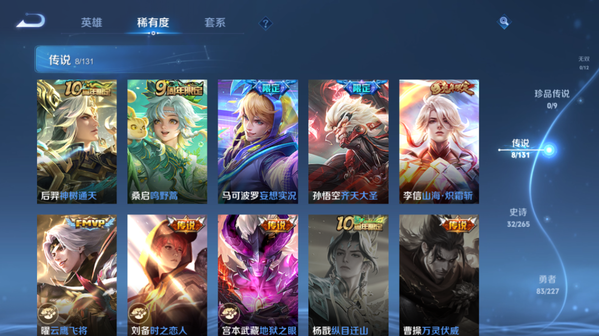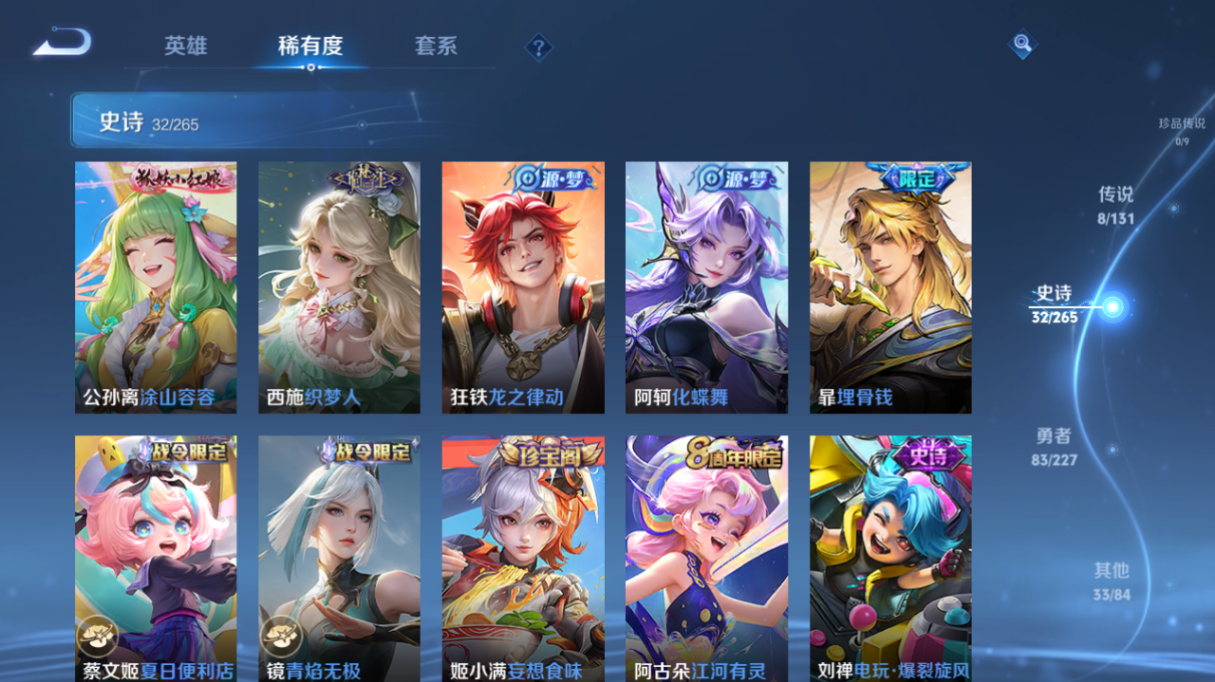 【王者荣耀】【lywz24440】珍品无双0 典藏0 无双0 珍品传说0 传说8 史诗32 英雄124 皮肤156 贵族7级 传说皮肤:鸣野蒿|地狱之眼|刘备-时之恋人|云鹰飞将|齐天大圣|妄想实况|山海·炽霜斩|神树通天__稀有限定:山海·玄木吟|大漠名商|古海寻踪|海滩派对|海盐诗旅|皇家上将|剑破天穹|江河有灵|魔术师|擒涛扼浪|青焰无极|探海日志|天穹祈灯|妄想食味|五谷丰年|阴阳师|游园惊梦|暗隐猎兽者|缤纷独角兽|冰雪圆舞曲|电玩·爆裂旋风|功夫厨神|鬼剑武藏|金属风暴|绅士熊喵|圣诞狂欢|圣诞恋歌|水果甜心|水晶猎龙者|赵云-未来纪元|鹰眼统帅|逐浪之夏|噬灭天穹|敬我三分|埋骨钱|蔡文姬-夏日便利店|虞姬-夏日便利店|天穹之誓|千年之狐|孙尚香-时之恋人|谧流熔炉|化蝶舞|云中旅人|苍威无极|龙之律动|虚灵犬护|逆浪荇歌|织梦人|涂山容容|鹤鸣心笺__优质皮肤:尼罗河女神|一千零一夜|孤猎|午夜歌剧院|激情绿茵|碧珀绯影|锦衣卫|冰刃幻境|森|超能战警|绯红之刃|生化警戒|威尼斯狂欢|第七人偶|芝加哥教父|街头旋风|绝影神呛|荷鲁斯之眼|幸存者|赤焰之缨|福禄兄弟|前尘|精灵王|范海辛|星航指挥官|龙域领主|爱与和平|蔷薇王座|灼热之刃|加勒比小姐|异域舞娘|动物派对|长夏之忆|破阵·退雄兵|异域游侠|暗都幽影|暖冬絮语|聚星闪耀|秘密基地|虹云星官|坚韧之力|命运角斗场|兔女郎|死亡骑士|黄金武士|玩偶对对碰|宫本武藏-未来纪元|东方不败|红桃皇后|忍·炎影|街头霸王|教廷特使|鸿运当头|时空谍影|破局者|西部游侠|乐园追猎者|潮玩造梦师|黑桃队长|拳王|哥特玫瑰|西施-雪境奇遇|星梦巡礼|景韶洛都|浪漫序章|掌控之力|纽约教父|龙腾万里|乱世虎臣|经纬探寻者|敏锐之力|孙悟空-西部大镖客|鲁班大师-归虚梦演|热血海滩|龙舞盛年|汉昭烈帝|乓乓大师|五福同心|盾山-圆桌骑士|万事如意|沉稳之力|程咬金-群星魔术团|完美运算|化身博士|花好人间|熔金海岸|春野之旅|劲辣红锅|特工战影|炽热元素使|妄想特派|玫蓝誓约|命运加冕|潮玩士官长|小满鸭|无双福将|踏浪烽翎|克喵__贵族等级:贵族7级__王者段位:至尊星耀神树通天,地狱之眼,鸣野蒿,时之恋人,妄想实况,山海·炽霜斩,云鹰飞将,齐天大圣