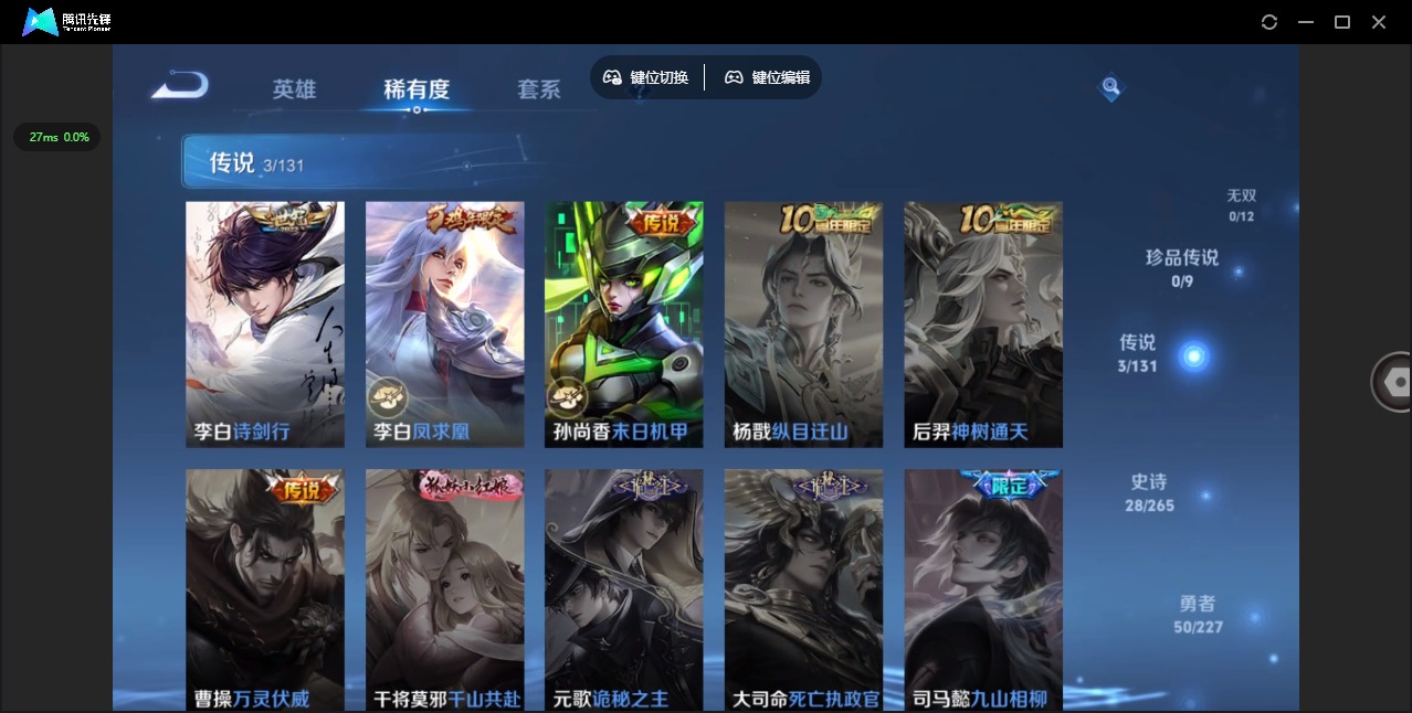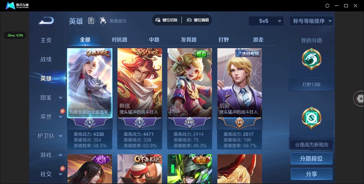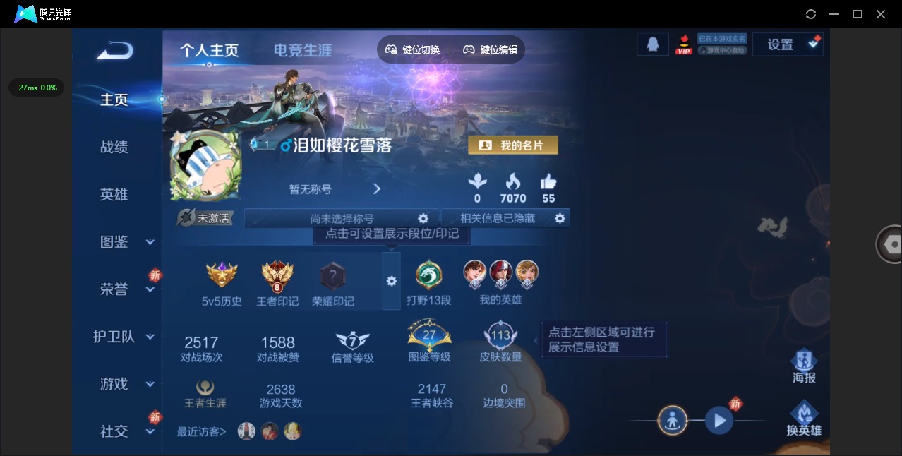 120英雄-113皮肤-[]v7 1典藏 3传说 120英雄 113皮肤 可修改实名 【稀有英雄】:大司命韩信韩跳跳夏洛特夏师傅艾琳橘右京橘子娜可露露鸟人不知火舞赵云金蝉唐僧戈娅 【荣耀水晶】:杀手不太冷 【传说皮】:末日机甲-孙尚香绿蚂蚱 【珍宝阁皮】:妄想食味