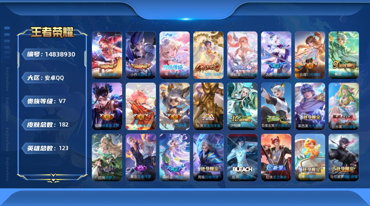 [14838930]可二次 女号 贵族7-31段游走-贵族积分26064-182皮-2典藏-10传说-0无双-1珍品传说-0珍品无双-2全皮英雄-6改名卡 安卓手q260区 营地id1812013411荣耀王者【珍品传说皮肤】:大耳狗之梦【荣耀典藏】:天鹅之梦拾光映像【传说皮肤】:时之奇旅神树通天飞鸢探春幻光神呛愿照·福禄聚黄金白羊座仲夏夜之梦鸣野蒿牧神诗旅心动手记【史诗皮肤