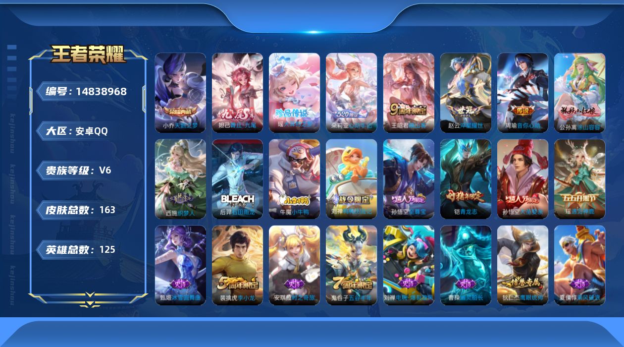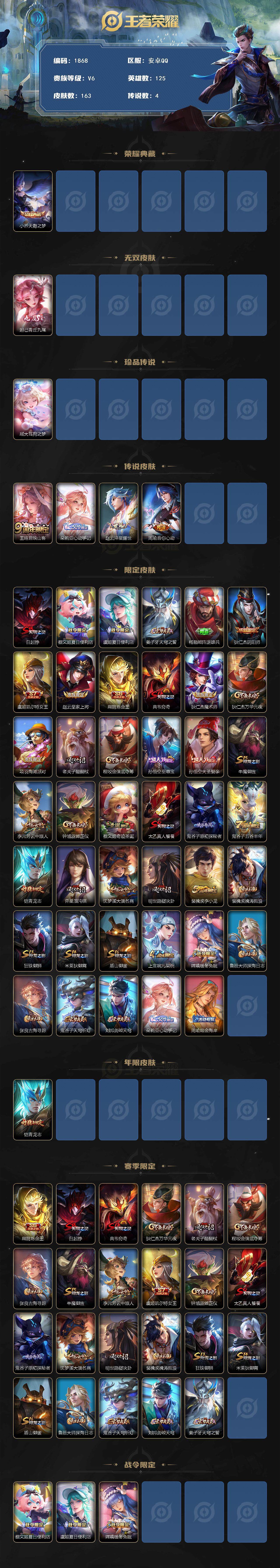 [14838968]可二次 小女号 贵族7-贵族积分34629-162皮-1典藏-4传说-1无双-1珍品传说-0珍品无双-1全皮英雄-2改名卡 安卓手q122区 营地id458389805永恒钻石iii【珍品传说皮肤】:大耳狗之梦【无双皮肤】:青丘·九尾【荣耀典藏】:天鹅之梦【优质限定皮肤】:至尊宝【传说皮肤】:淬星耀世音你心动心动手记映山客【史诗皮肤】:奇迹圣诞涂山容容织梦人舞动绿
