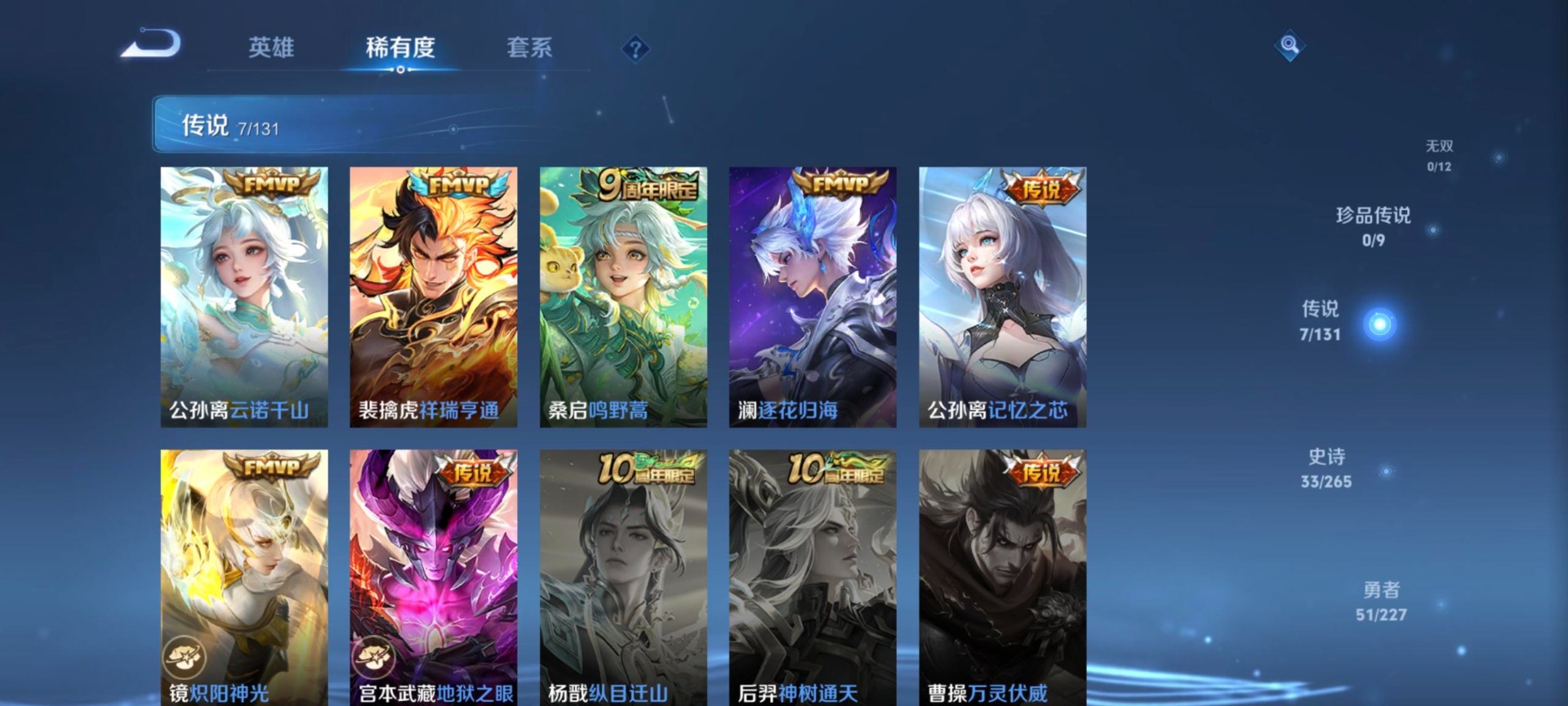 [14838982]v5 1典藏 7传说 110英雄 114皮肤 可修改实名 【稀有英雄】:大司命韩信韩跳跳夏洛特夏师傅艾琳橘右京橘子娜可露露鸟人不知火舞赵云金蝉唐僧戈娅 【荣耀水晶】:鸣剑·曳影 【传说皮】:云诺千山祥瑞亨通地狱之眼炽阳神光记忆之芯