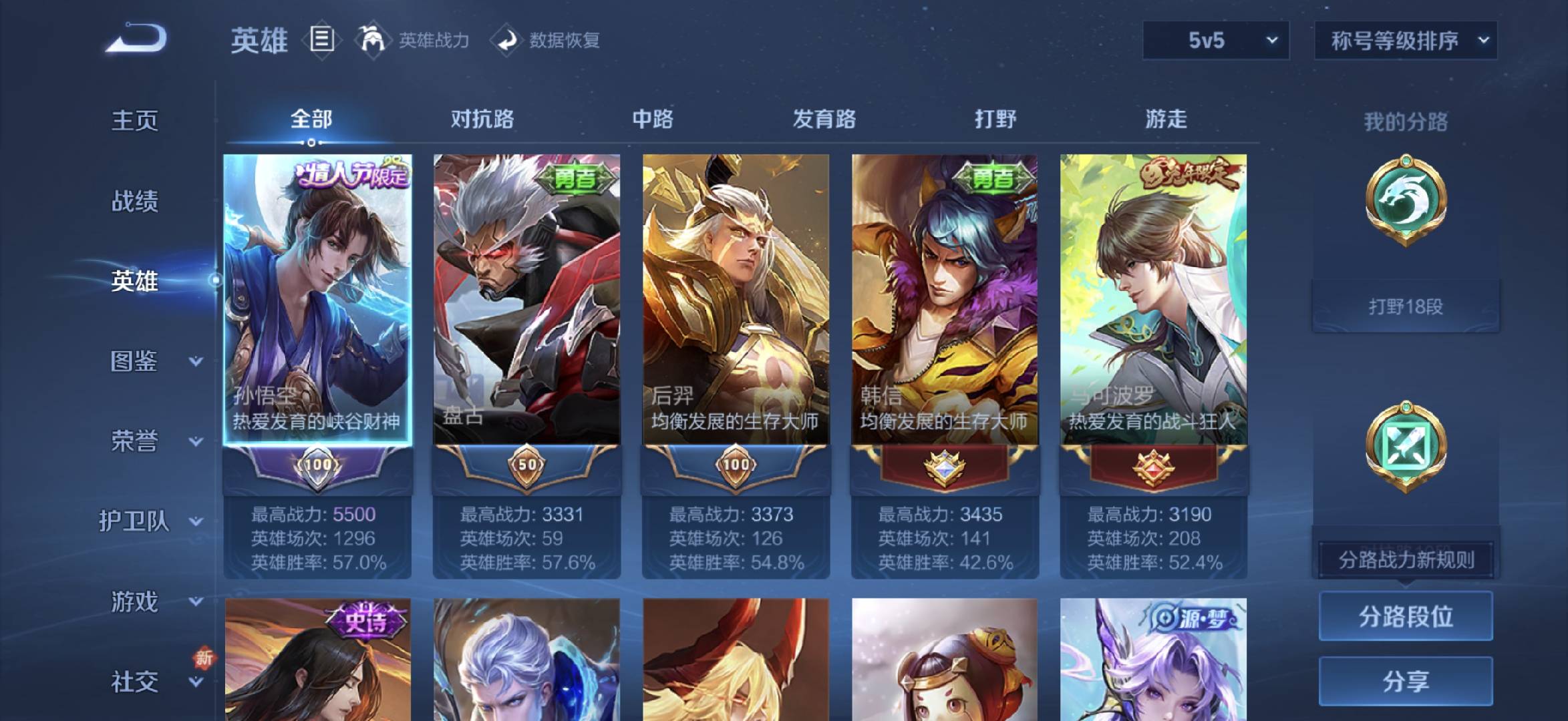 安卓qq/至尊星耀/207皮肤/126英雄/1典藏/0珍品无双/0无双/0珍品传说/5传说/48史诗/8稀有英雄【1 典藏皮肤】全息碎影 孙悟空【5 传说皮肤】战鼓燎原 典韦愿照·九州拓 澜幻光神呛 云缨云诺千山 公孙离续相思 西施【48 史诗皮肤】末日机甲 吕布百解令 蒙犽燃音魔法 高渐离妄想食味 姬小满山海·玄木吟 马可波罗五谷丰年 鬼谷子无心 元歌鬼剑武藏 宫本武藏