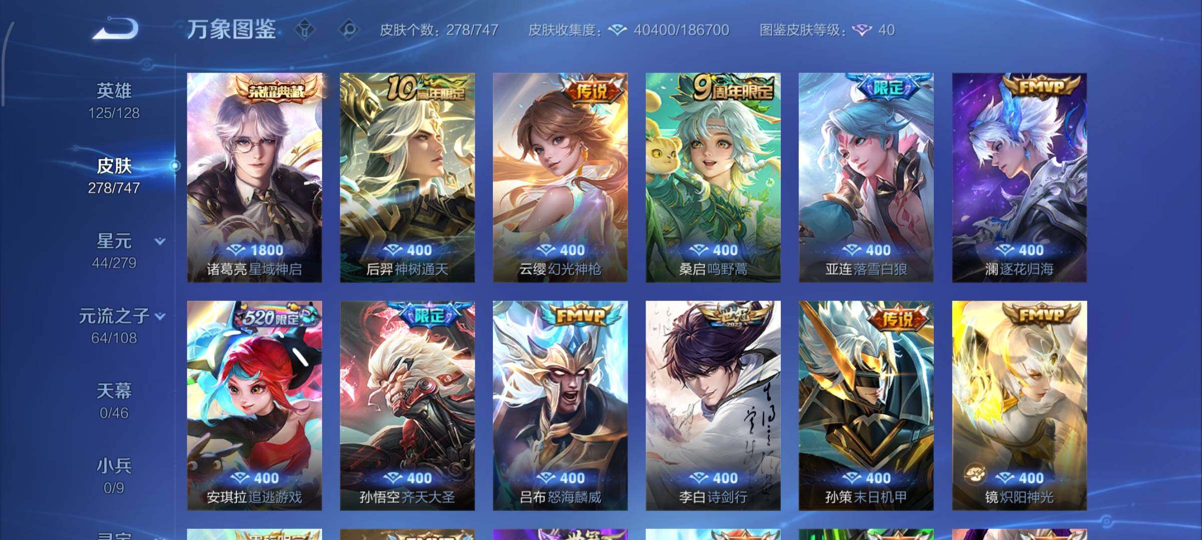 【店长推荐·金标李信·金标典韦·星域神启·落雪白狼·安琪拉追逃游戏·怒海麟威·诗剑行·岱宗·山海玄木吟·凤凰于飞·齐天大圣·孙策末日机甲·炽阳神光·逐花归海·可二次】w8595-安卓q-125英雄-278皮肤-14王者印记-170铭文-贵族积分5w【贵族8】【1典藏·2星传说·18传说·16按键·211幸运值】【因赛季更新游戏段付以上号为准!】 【英雄全皮】:刘禅全皮,蒙恬全皮,戈娅全皮