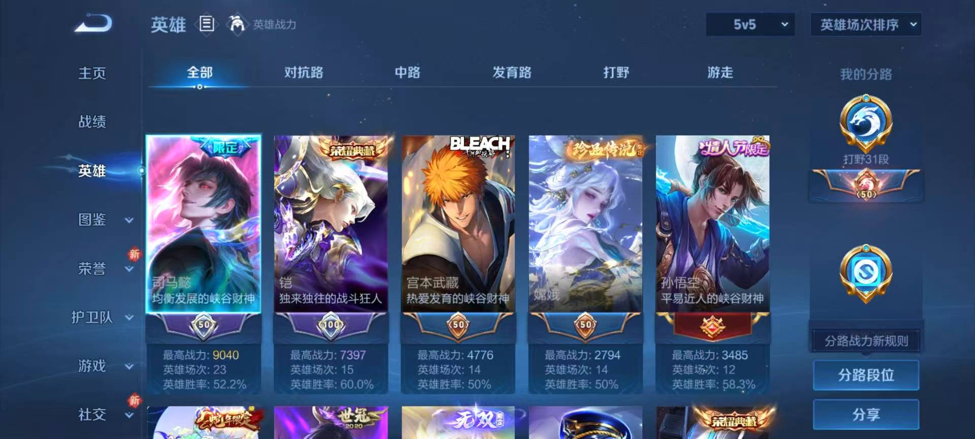 安卓qq/无双王者/307皮肤/126英雄/3典藏/0珍品无双/2无双/5珍品传说/31传说/85史诗/8稀有英雄【5 珍品传说】朽木白哉 暃黑崎一护 宫本武藏时之奇旅 孙策器灵·落星盏 嫦娥兔狲·蓬尾 张飞【3 典藏皮肤】银白咏叹调 铠无限飓风号 夏侯惇最初的交响 伽罗【2 无双皮肤】碎月剑心 李白器灵·螭龙剑 曜【31 传说皮肤】启明星使 虞姬飞鸢探春 李元芳无双飞将