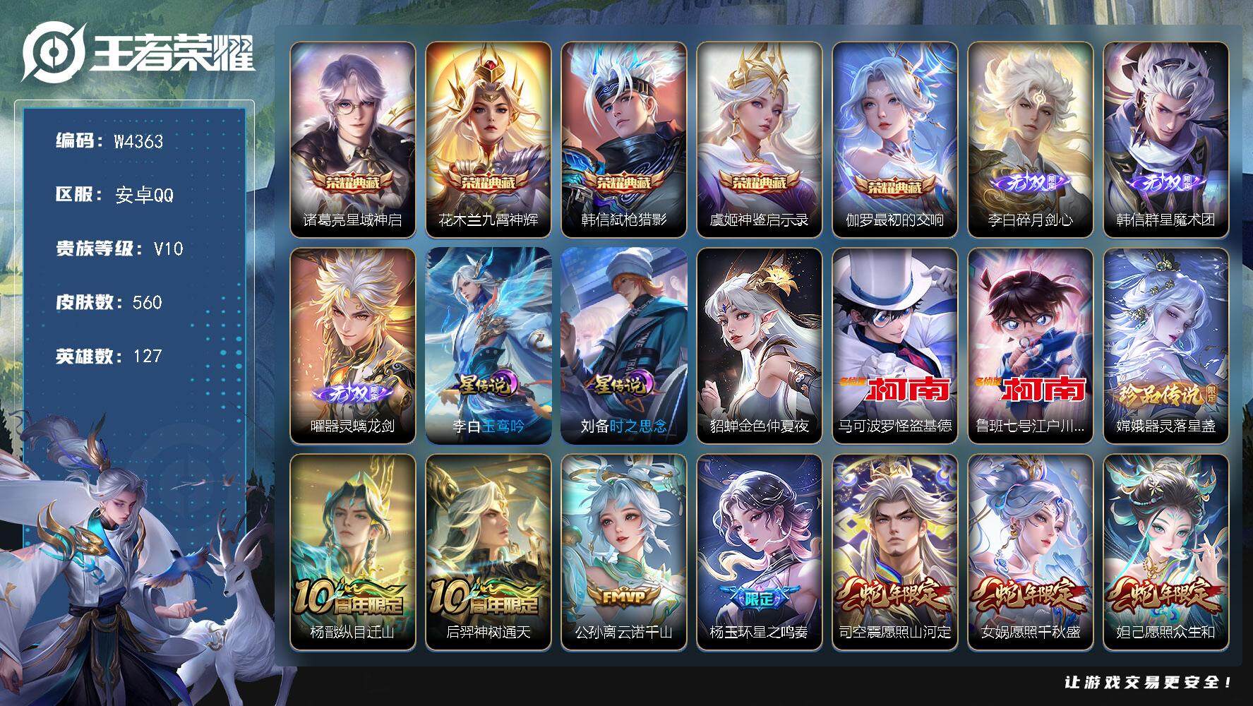 【w4363】曜器灵·螭龙剑-韩信群星魔术团-李白碎月剑心-满蛇年限定-安卓qq-有二次-贵10-127英雄-560皮肤-5典藏-3无双-3珍品传说-90传说-3星元-242限定-100按键-灵宝-19印记-满铭文-33.3万贵族积分-营地1881347293-热门皮肤-伽罗最初的交响,虞姬神鉴启示录,韩信弑呛猎影,花木兰九霄神辉,诸葛亮星域神启,嫦娥器灵·落星盏,公孙离云诺千山,杨玉环星之鸣