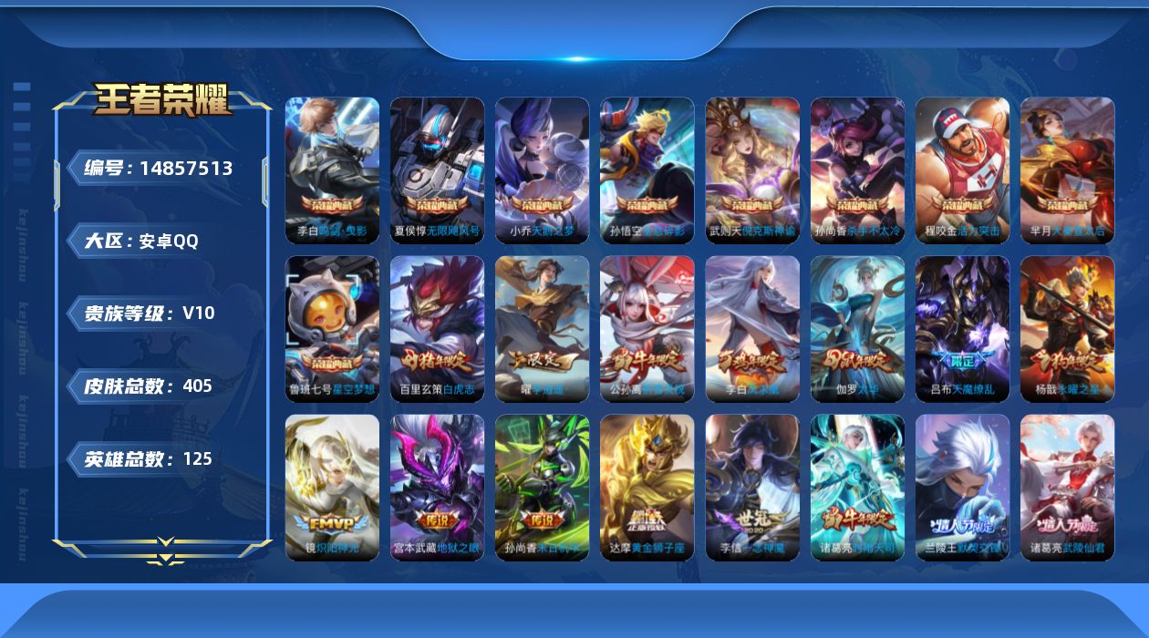 [14857513]皇冠号 金标武则天 金标刘邦 贵族10-流光积分25-贵族积分215435-405皮9典藏42传说 安卓手q384区405皮9典藏42传说0无双v10 营地id218356871尊贵铂金iii【荣耀典藏】:星空梦想大秦宣太后活力突击无限飓风号全息碎影鸣剑·曳影倪克斯神谕杀手不太冷天鹅之梦【优质限定皮肤】:祈雪灵祝武圣神威白虎志梅西天魔缭乱