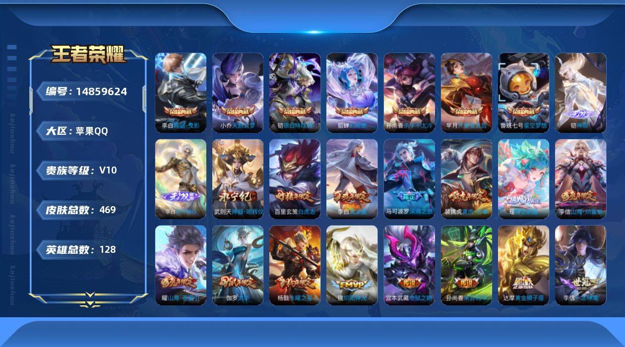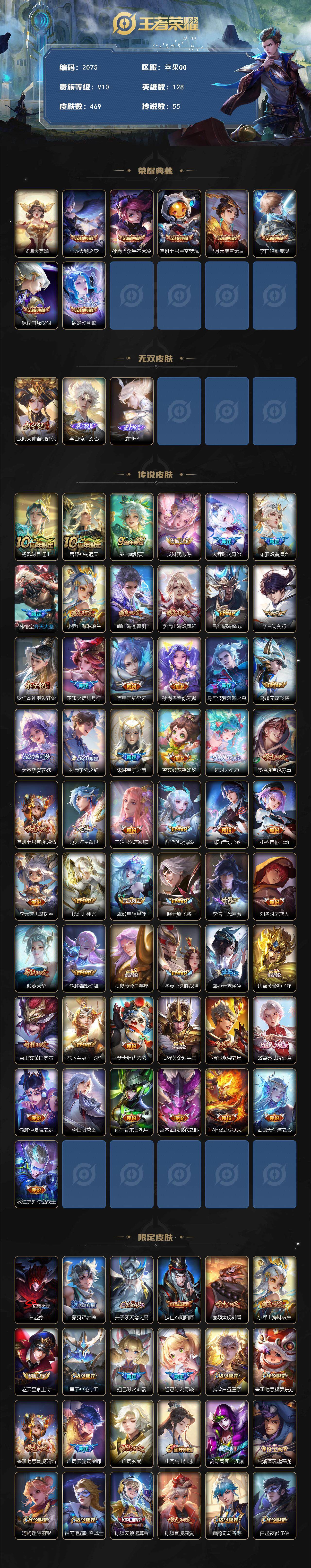 [14859624]皇冠号 李信全皮 箭叩九天天幕 幻夜逐光天幕 贵族10-流光积分17166-贵族积分359906-469皮7典藏55传说3无双-10个英雄全皮 苹果手q144区469皮7典藏55传说3无双v10 营地id428783597无双王者【无双皮肤】:碎月剑心神罪神器·明辉仪【荣耀典藏】:大秦宣太后幻阙歌银白咏叹调鸣剑·曳影杀手不太