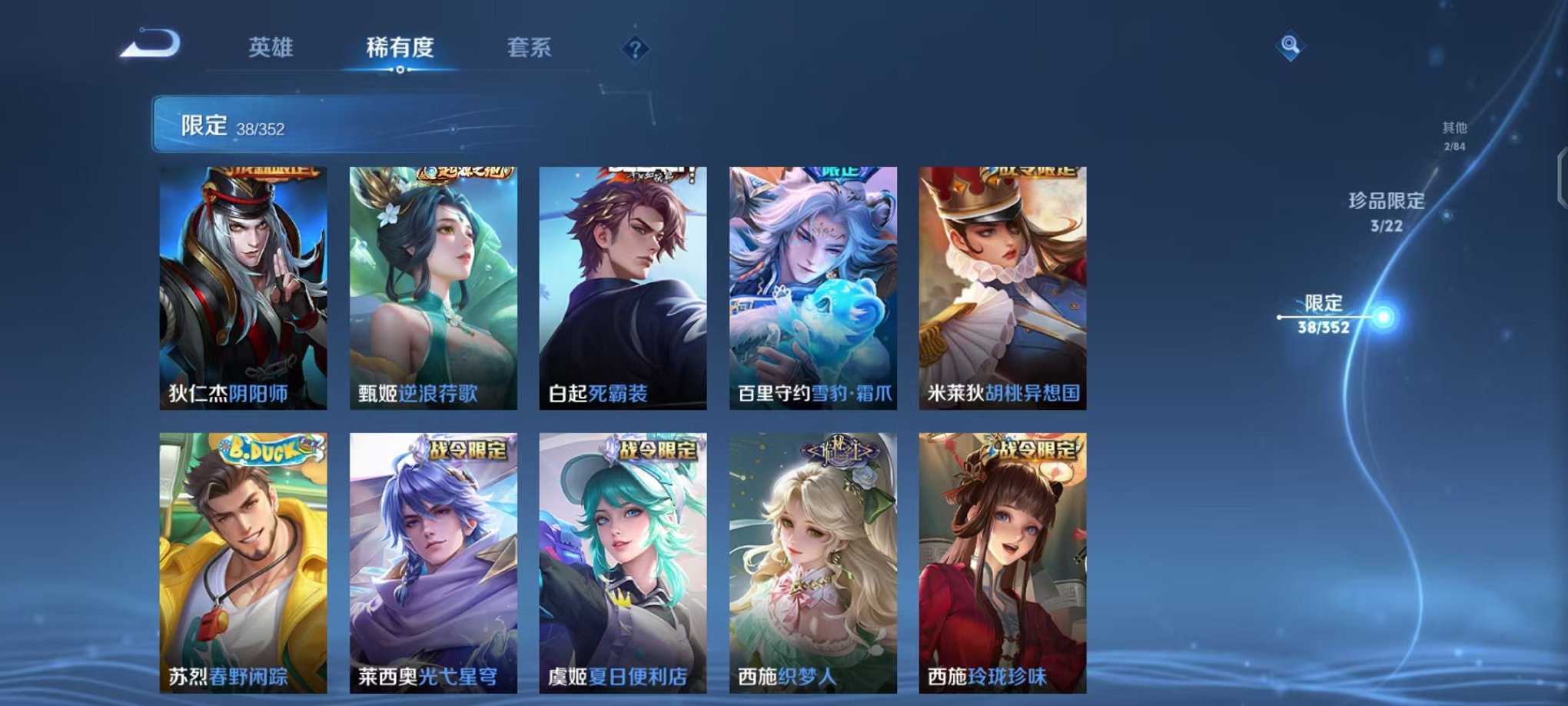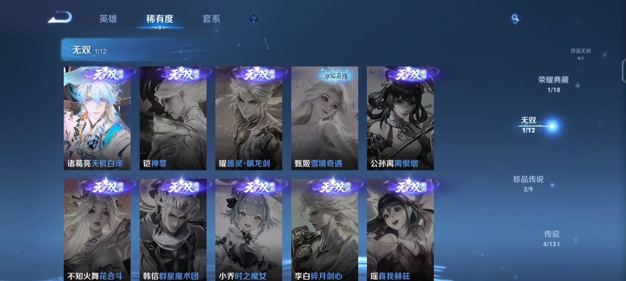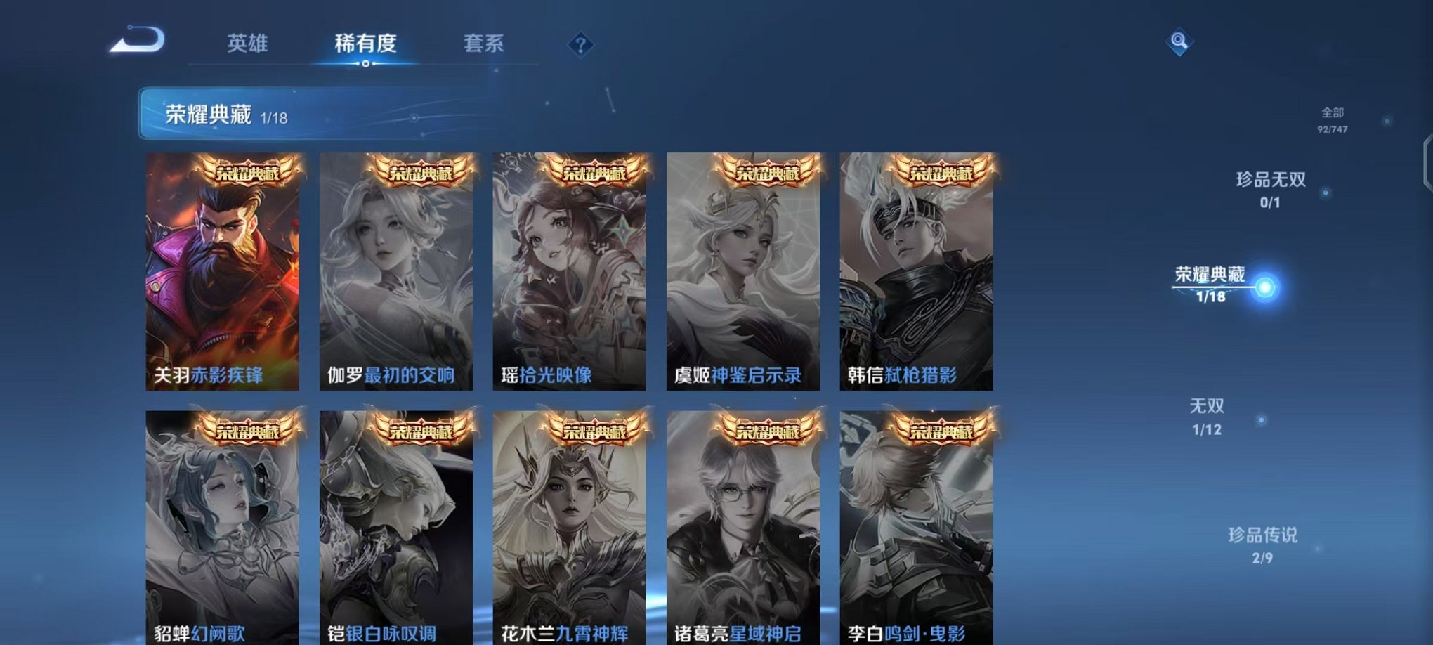 109英雄-92皮肤-可二次【1水晶1无双1星元2珍品4传说】安卓v区-109英雄-92皮肤【1水晶】赤影疾锋 【无双皮肤】天机白泽【珍品传说】兔狲·蓬尾 时之奇旅【星元皮肤】星际治安官【传说皮肤】幻光神呛 玄雷天君 愿照·千秋盛 超时空战士【史诗皮肤】罗小黑战记 龙之律动 百相守梦 石田雨龙 百相守梦 器灵·浮梦炉 涂山容容 糖绘人间 夜都魔契 光弋星穹 舞动绿茵 魅力维加斯 魔术师 鹰眼统帅 鬼