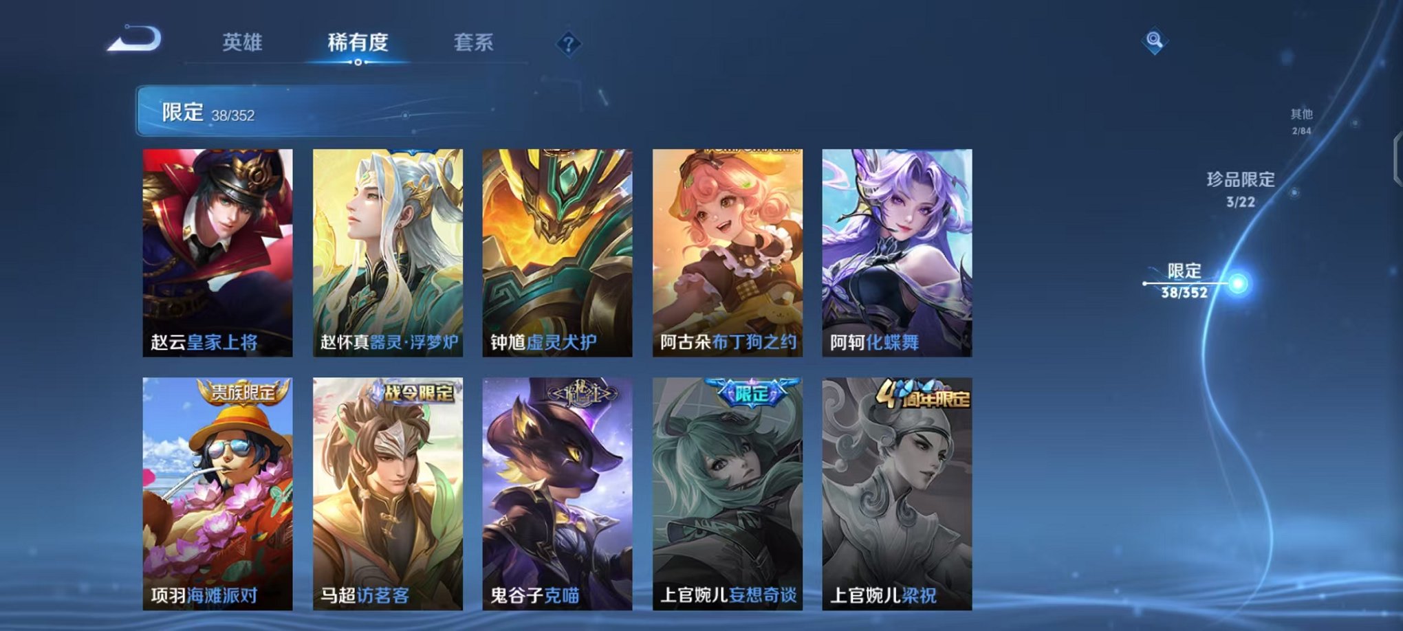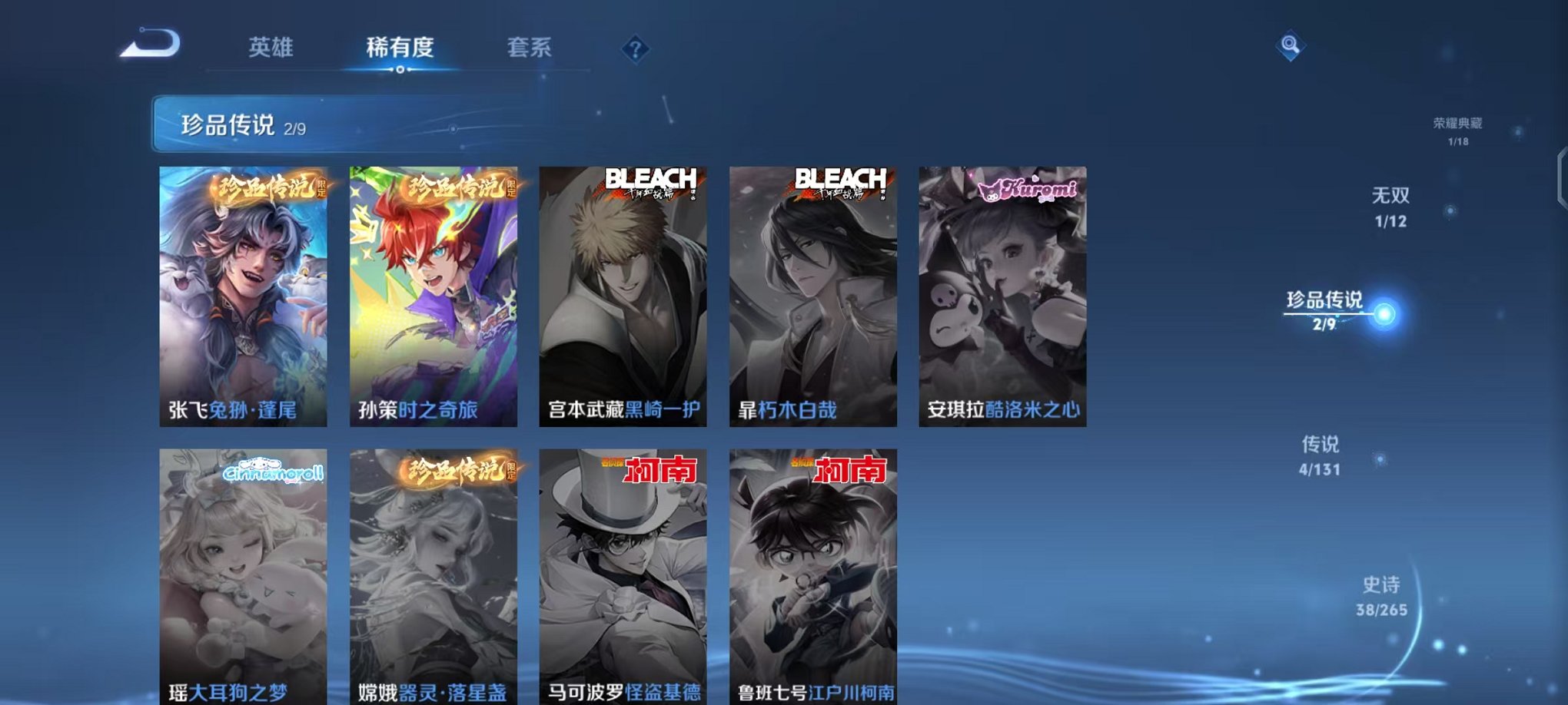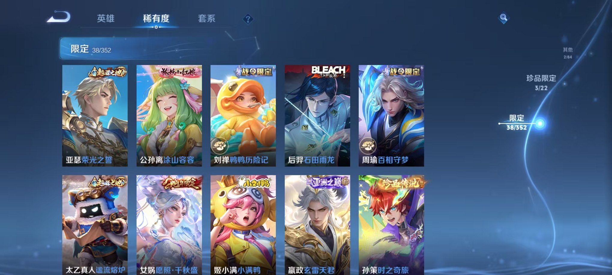 109英雄-92皮肤-可二次【1水晶1无双1星元2珍品4传说】安卓v区-109英雄-92皮肤【1水晶】赤影疾锋 【无双皮肤】天机白泽【珍品传说】兔狲·蓬尾 时之奇旅【星元皮肤】星际治安官【传说皮肤】幻光神呛 玄雷天君 愿照·千秋盛 超时空战士【史诗皮肤】罗小黑战记 龙之律动 百相守梦 石田雨龙 百相守梦 器灵·浮梦炉 涂山容容 糖绘人间 夜都魔契 光弋星穹 舞动绿茵 魅力维加斯 魔术师 鹰眼统帅 鬼