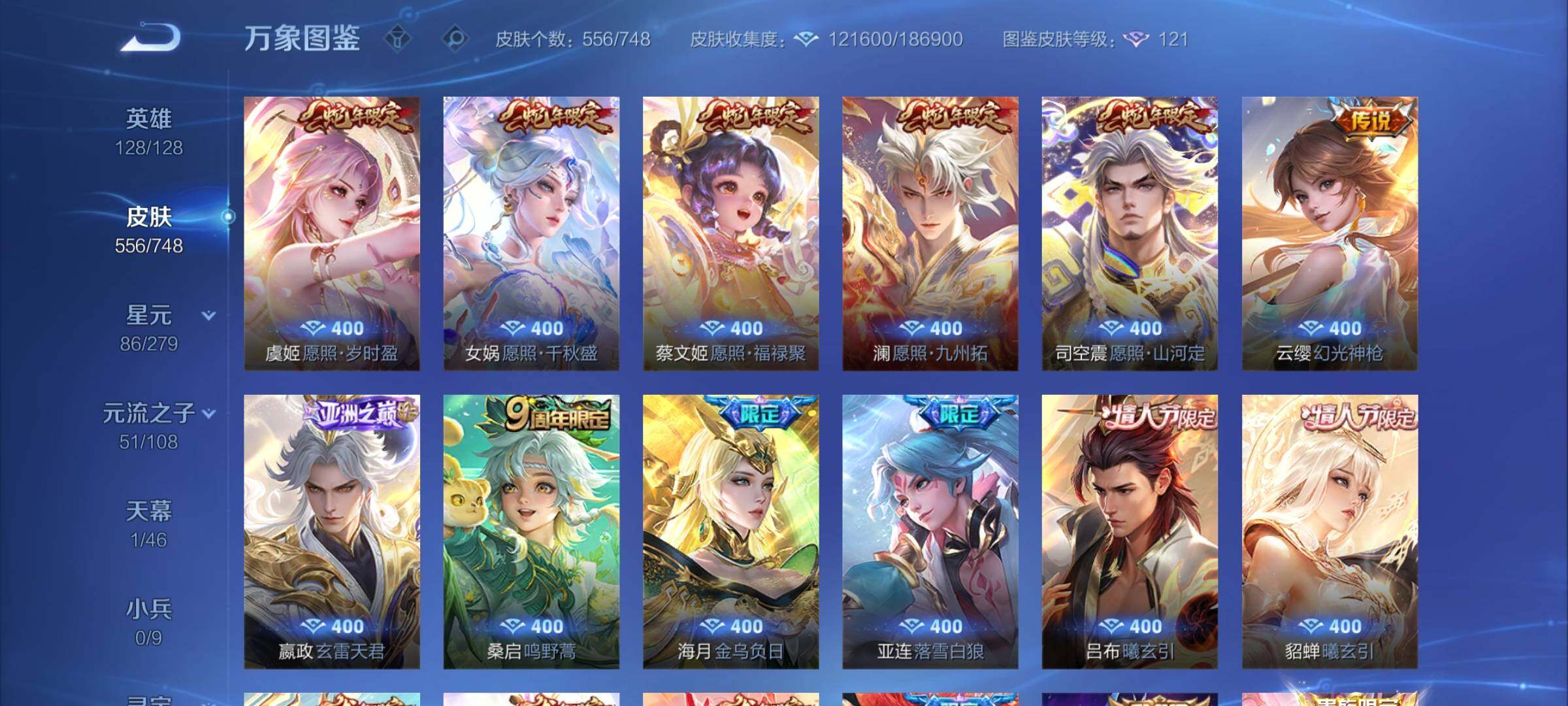 【店铺主推v10·12典藏·4无双·5珍品·龙年全限定·蛇年全限定·兔年全限定·猪年全限定·全皮花木兰·全皮露娜·全皮武则天·全皮马超·全皮曜·全皮孙策·全皮宫本武藏·可二次】w8926-安卓q区服-128英雄-556皮肤-30王者印记-270铭文-贵族积分35w【贵族10】【12典藏·4无双·5珍品·6星传说·88传说·1天幕·44按键·371个性戳戳·237幸运值】【因赛季更新游戏段付