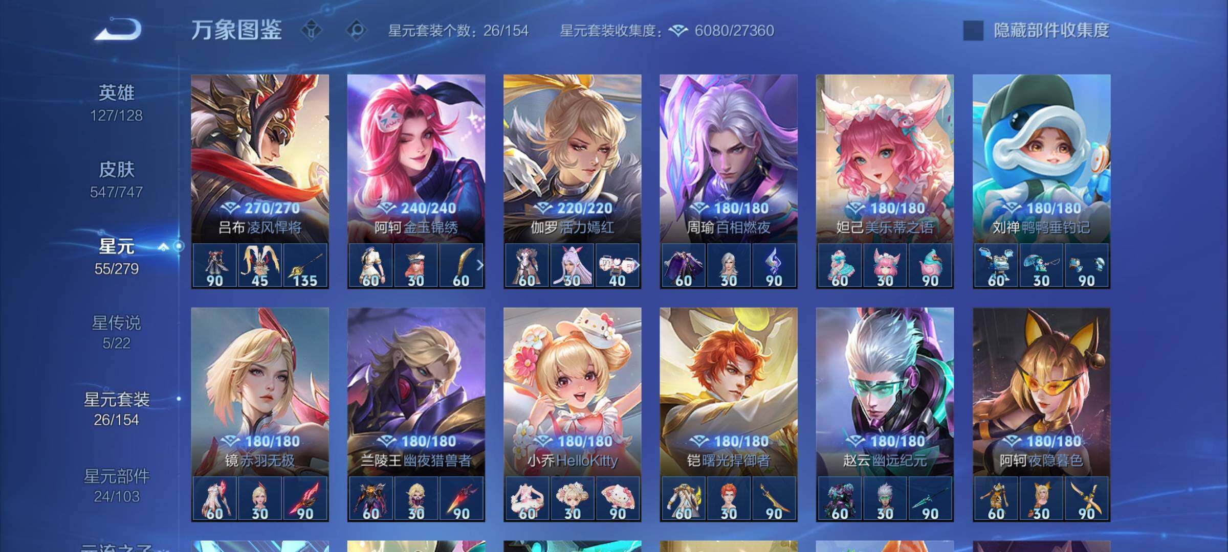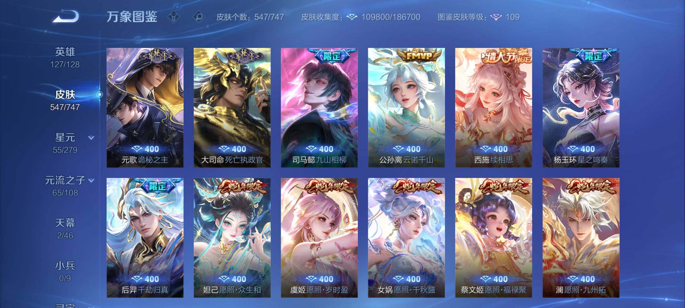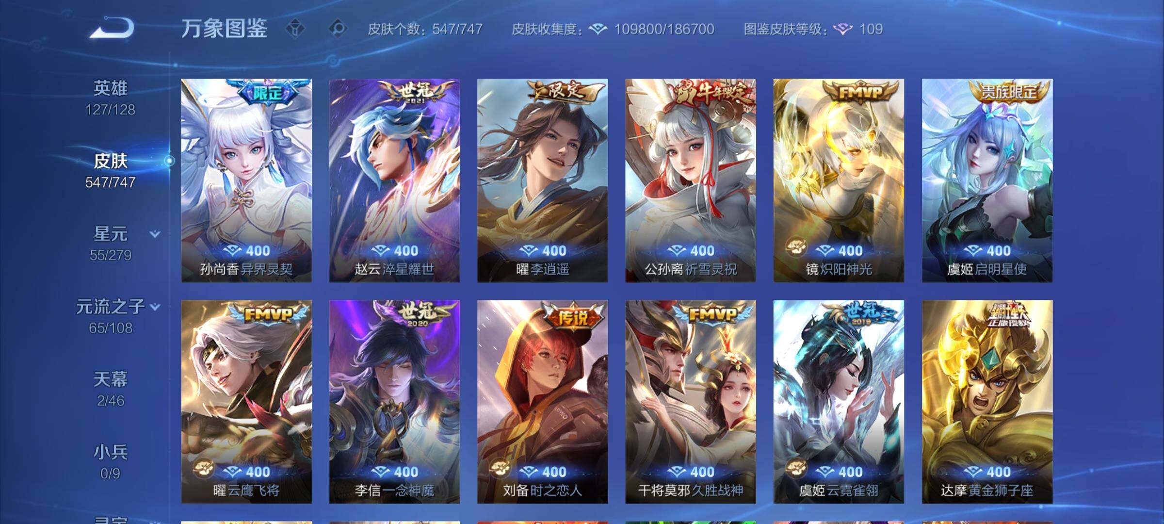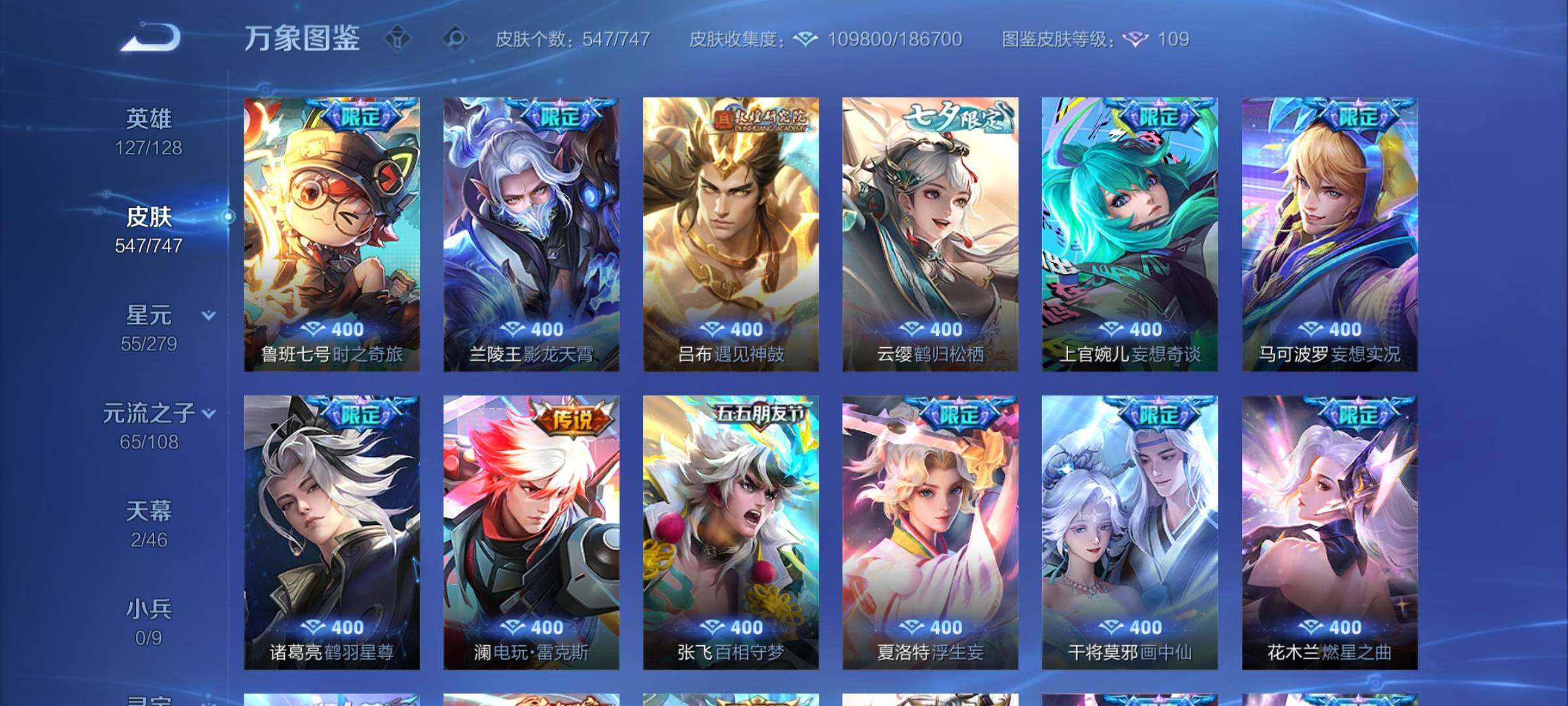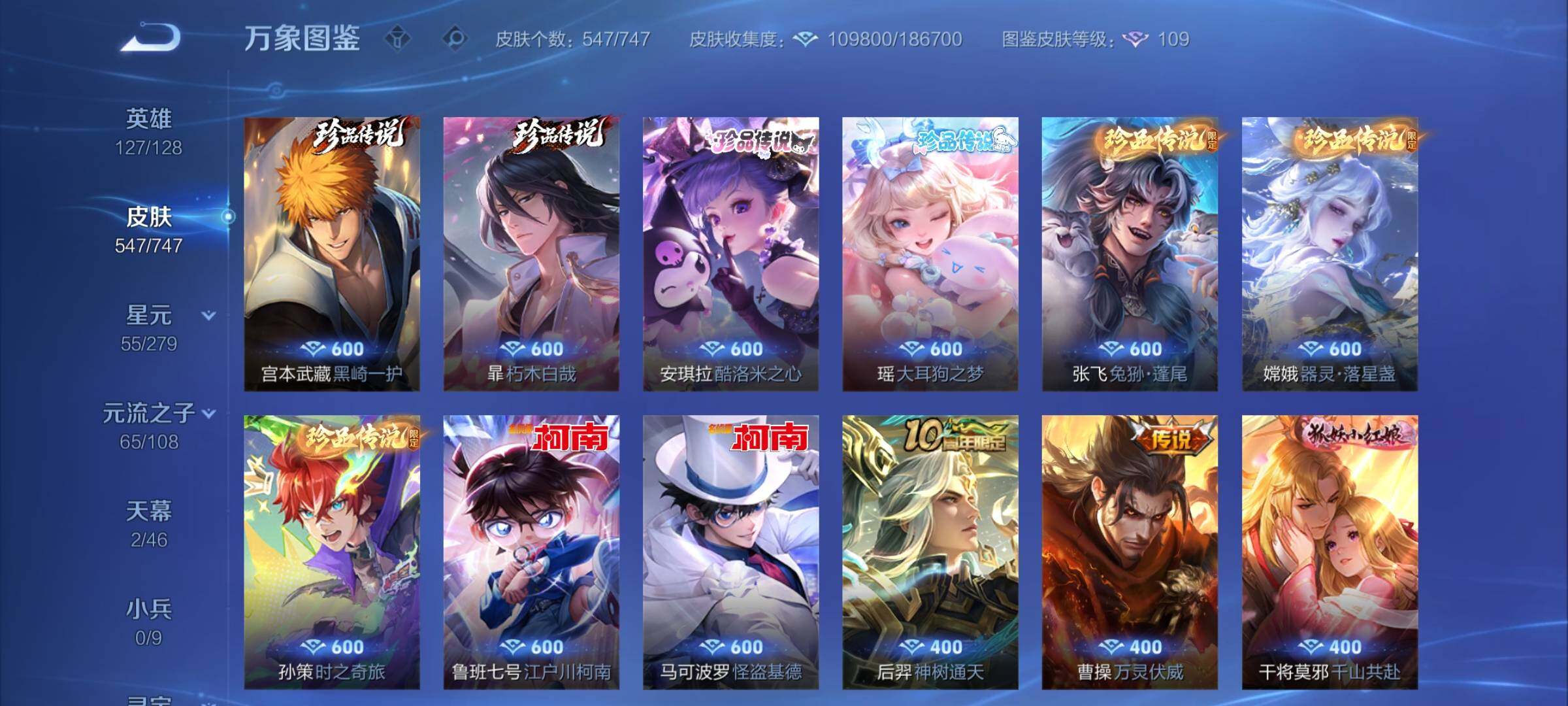 【店铺主推·无双v10·7w流光积分·馥梦繁花·3典藏·8无双·满珍品·蛇年全限定·全皮露娜·全皮花木兰·全皮澜·全皮镜·破晓神光·棉花糖聚会天幕·可二次】w8943-安卓q区服-127英雄-547皮肤-30王者印记-满级铭文-贵族积分25w【无双贵族11】【3典藏·1珍品无双·8无双·9珍品·5星传说·69传说·2天幕·54按键·176个性戳戳】【因赛季更新游戏段付以上号为准!】 【英雄