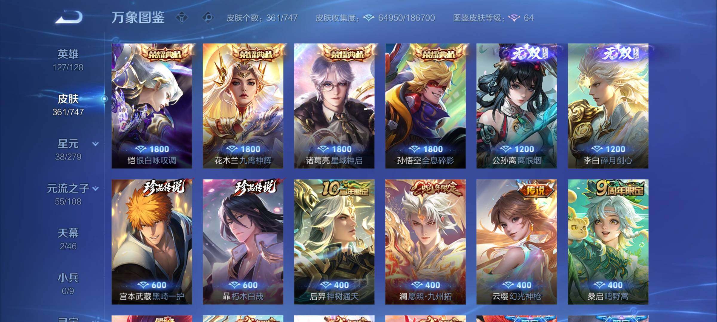 【店长推荐高质量v9·4典藏·2无双·2珍品·龙年全限定·金标孙悟空·全皮马超·全皮澜·离恨烟·九霄神辉·银白咏叹调·黑崎一护·冥王哈迪斯·山海炽霜斩·李·寅虎赤拳·白虎志·岁雨灵司·苍灵仙君·可二次】w8960-安卓q-127英雄-361皮肤-13王者印记-140铭文-贵族积分13w【贵族9】【4典藏·2无双·2珍品·4星传说·40传说·2天幕·12按键】【因赛季更新游戏段付以上号为