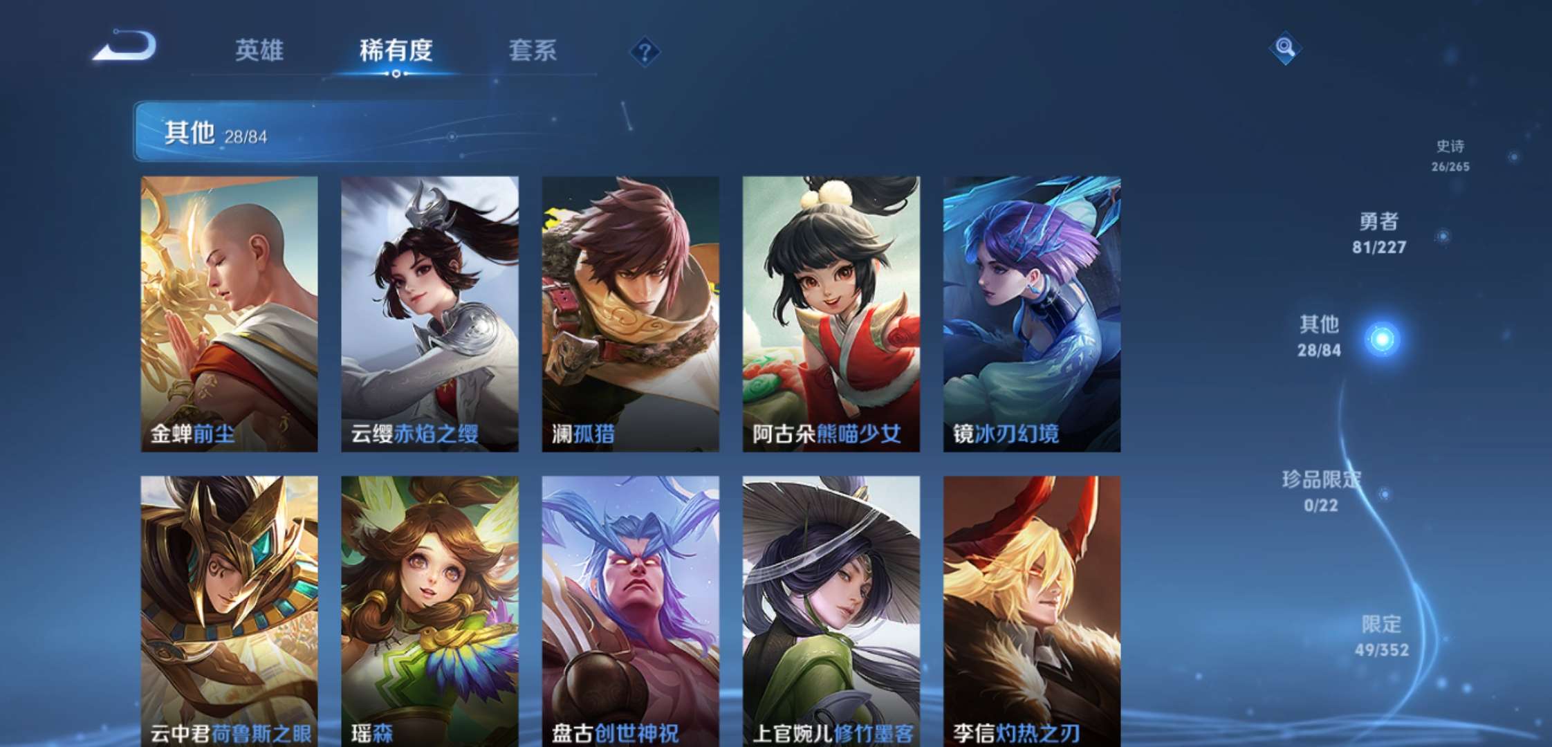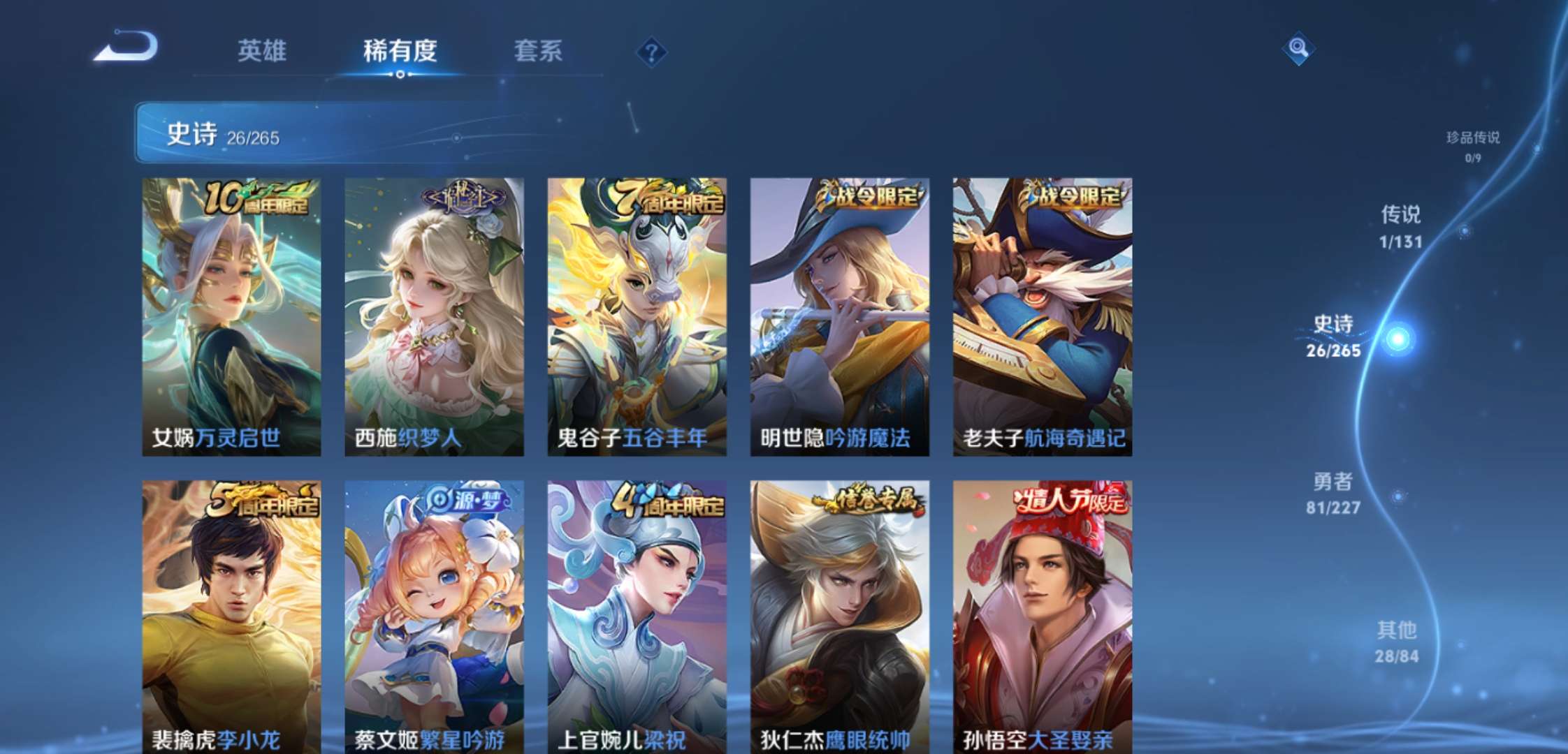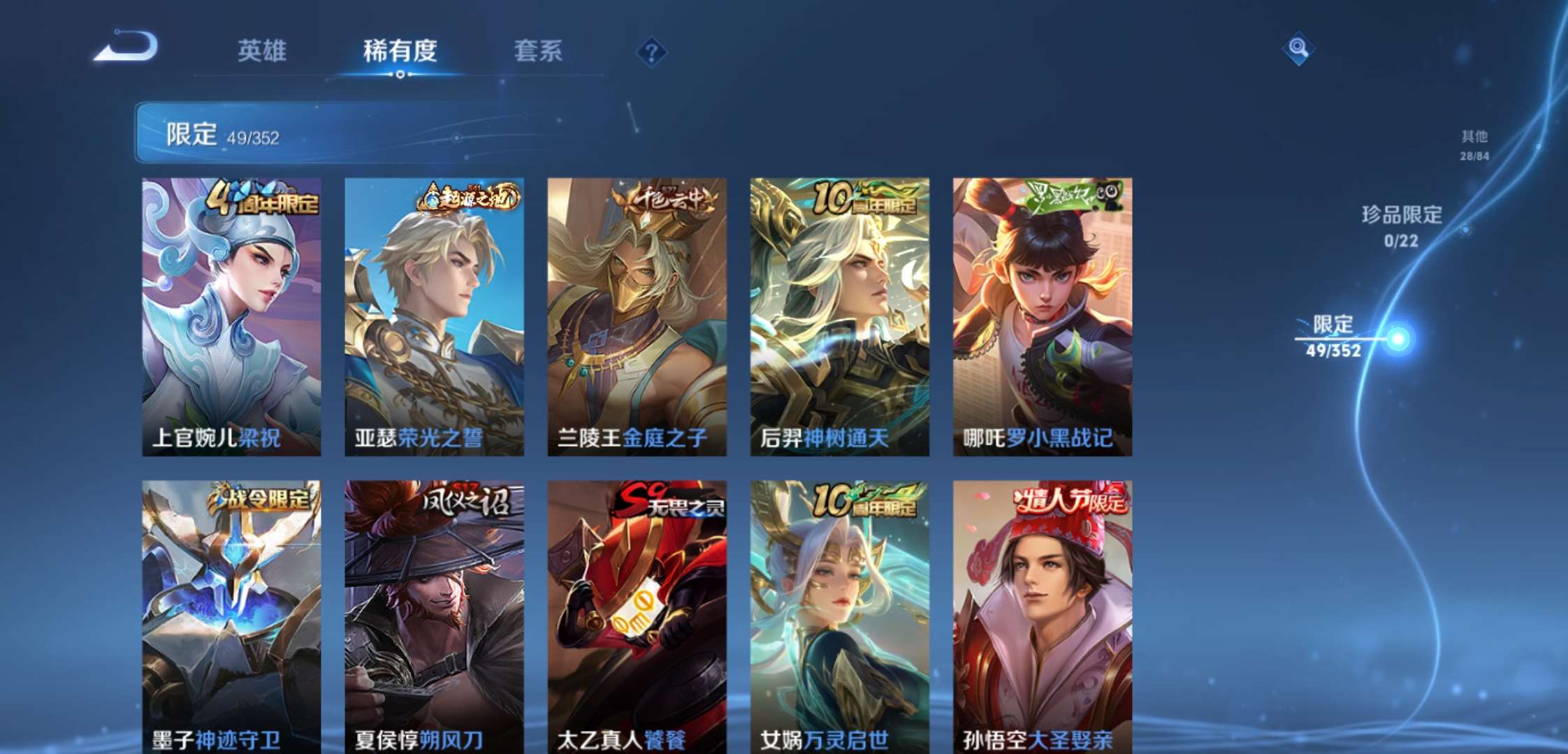 jj3772:安卓q-v5-【可二次 皇冠q加1太阳】大圣娶亲 苍穹之光 五谷丰年-非凡王者-126英雄-136皮肤-0典藏-0无双-0珍品传说-1传说-24史诗 【稀有英雄】 嬴政 不知火舞 橘右京 夏洛特 娜可露露 韩信 艾琳 赵云 【传说皮肤】 神树通天 【限定皮肤】 大圣娶亲 【史诗皮肤】 苍穹之光 五谷丰年 鬼剑武藏 摇滚巨星 魅力维加斯 女仆咖啡 繁星吟游 鹰眼统帅 大圣娶亲 李