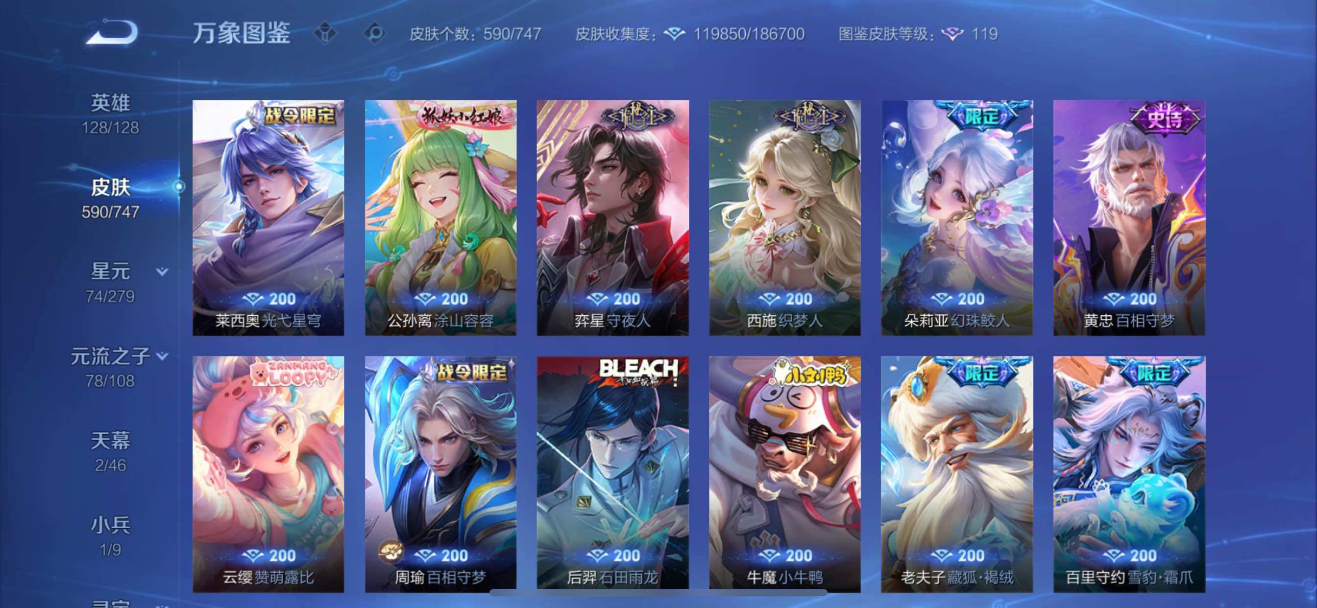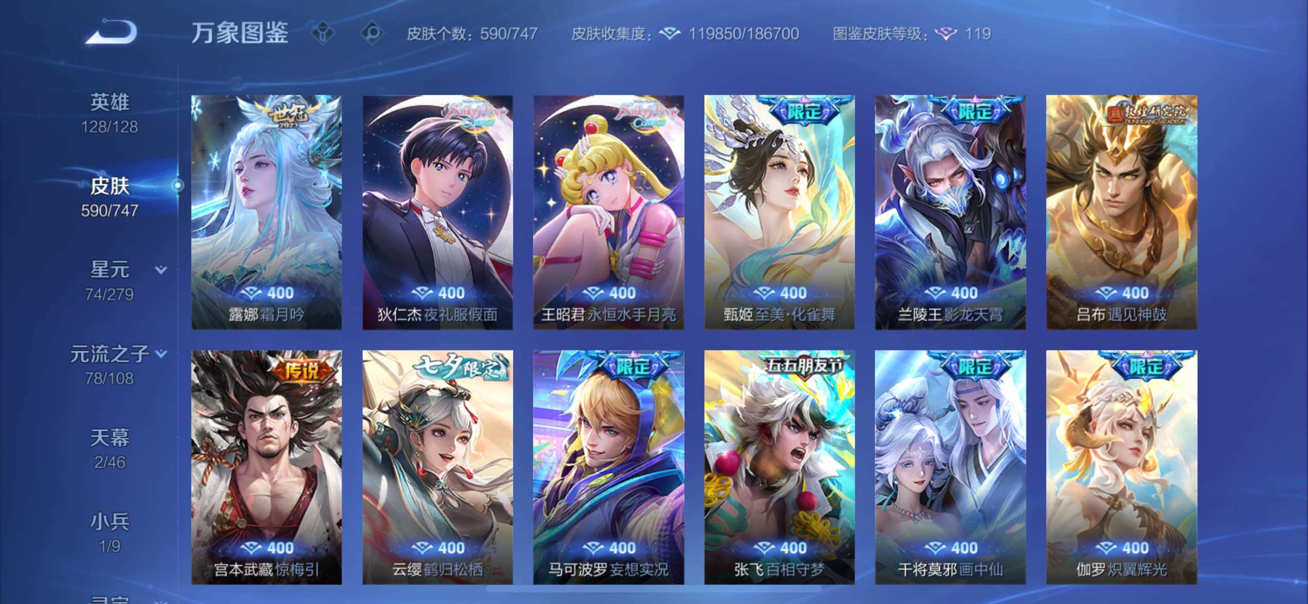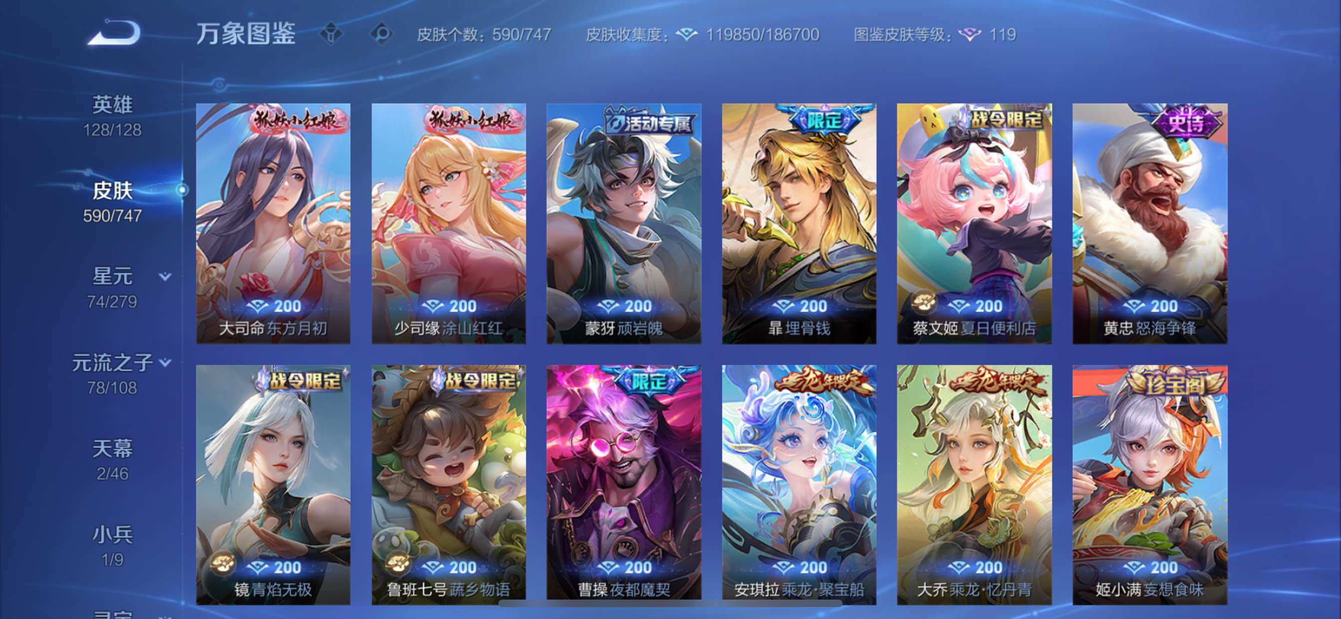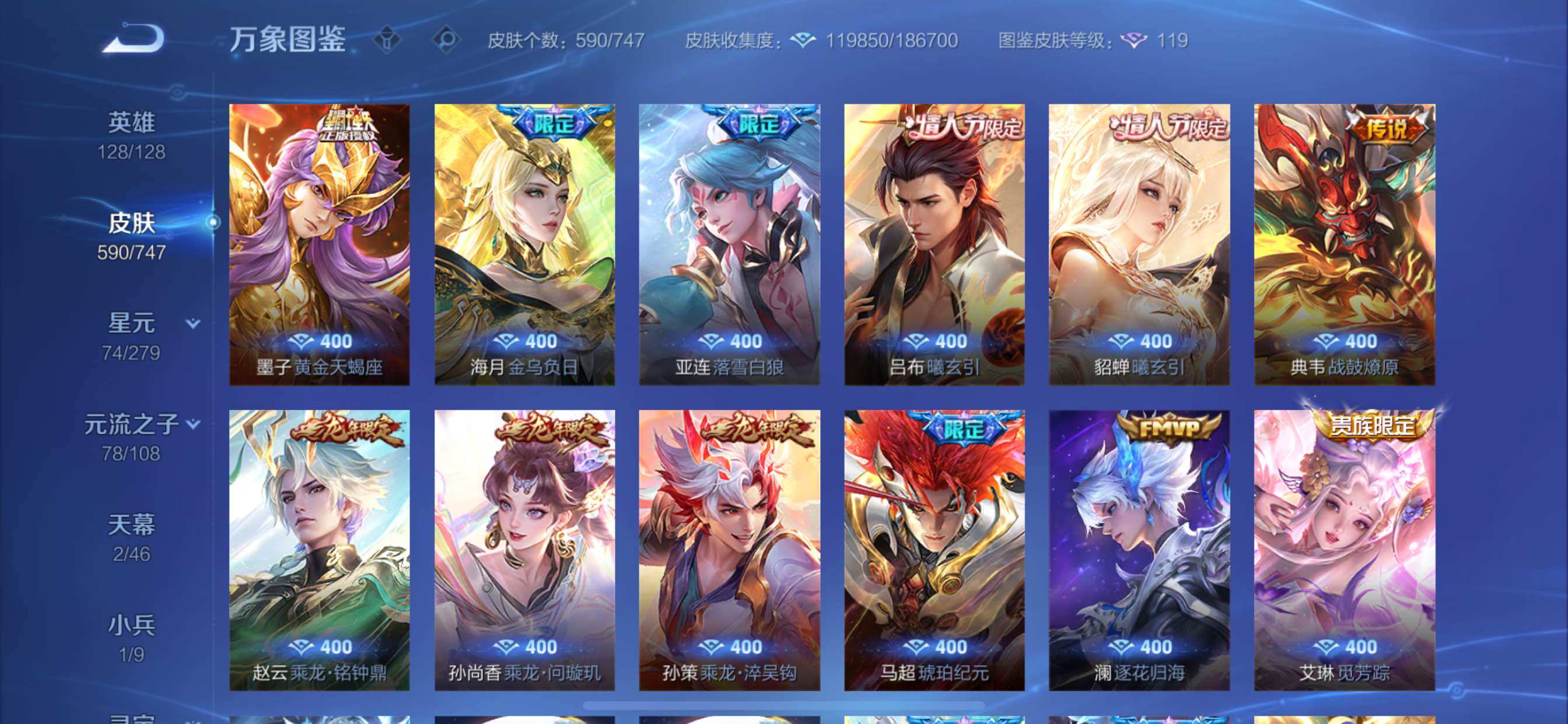 2317633-可换绑【v10精品号 金标干将弈星 中路41段 吕布全皮 西施全皮 生肖限定33个 7典藏含武则天英雄 5无双 7珍品 荣耀小兵 多传说限定质量号】 61按键,7星传说,2天幕,1小兵,77戳戳,19王者印记,满级铭文,可二次6835,苹果q-v10-590皮肤-6典藏皮肤-1典藏英雄-5无双-7珍品传说-88传说-195史诗【英雄全皮】:廉颇全皮,刘禅全皮,阿轲全皮,吕