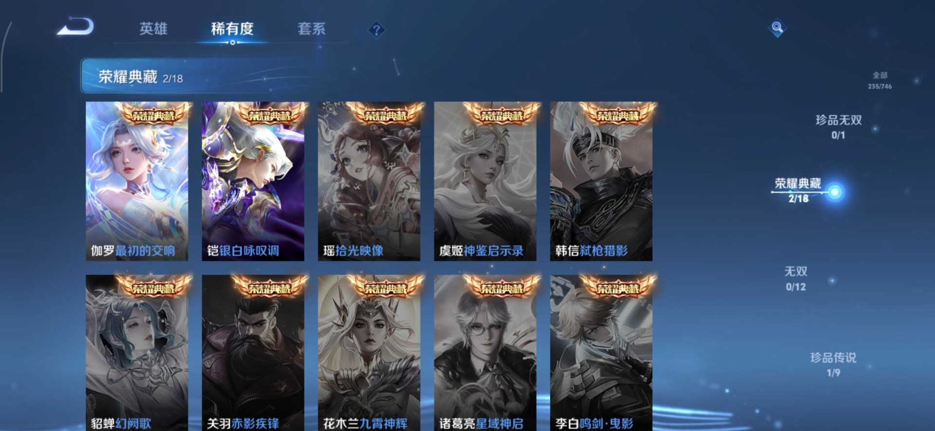 126英雄-235皮肤-[]v7 2典藏 1珍品传说 16传说 126英雄 235皮肤 可修改实名 【稀有英雄】:大司命嬴政始皇帝韩信韩跳跳夏洛特夏师傅艾琳橘右京橘子娜可露露鸟人不知火舞赵云金蝉唐僧戈娅 【荣耀水晶】:最初的交响伽罗典藏银白咏叹调倪克斯侍