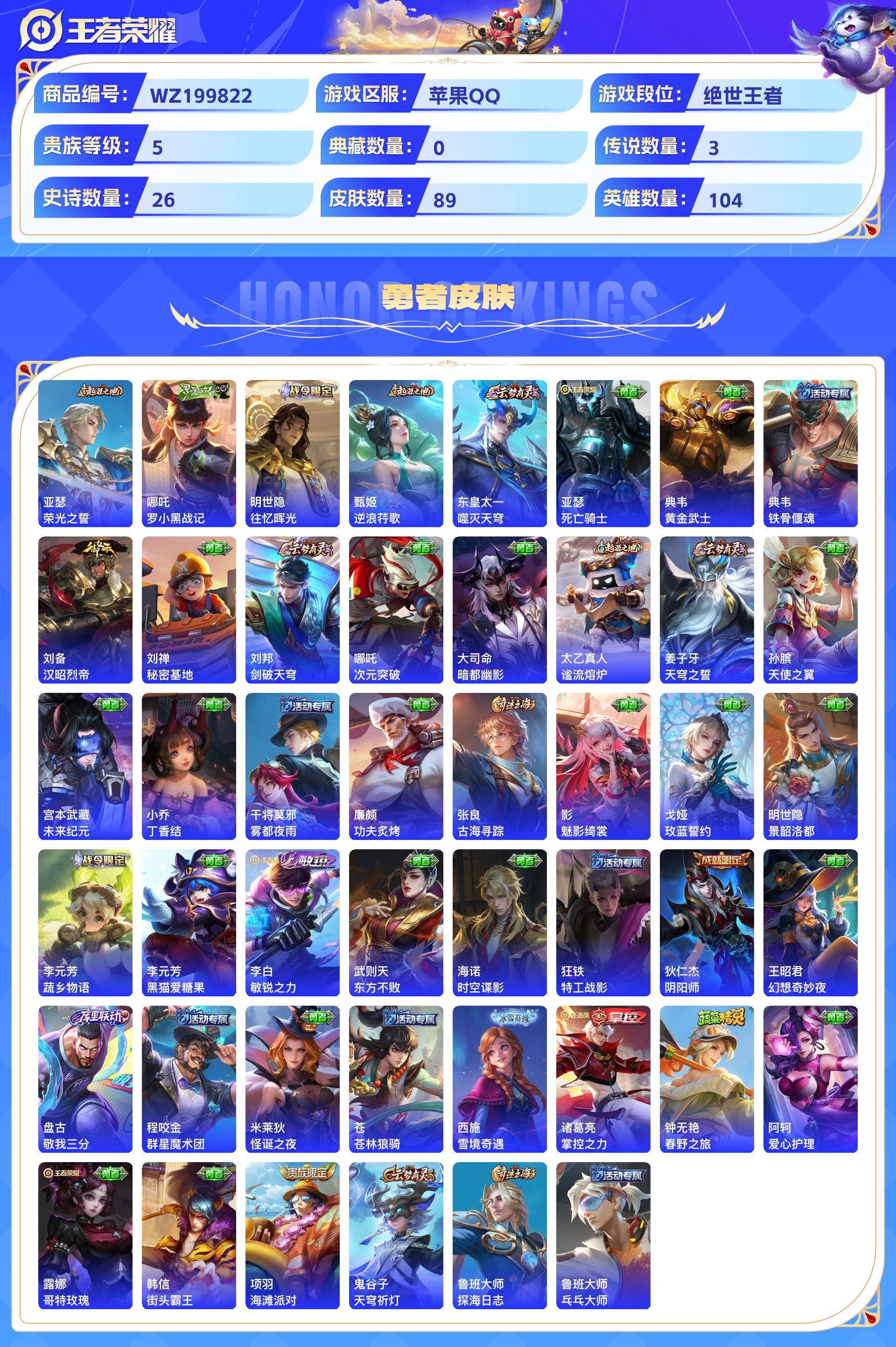 _2323376-苹果qq89皮贵族5级1珍品传说3传说26史诗【珍品传说】器灵·落星盏【传说皮肤】幻光神呛鸣野蒿愿照·九州拓【史诗皮肤】光弋星穹暗隐猎兽者天才门将乘风破浪女仆咖啡摇滚巨星水果甜心鬼剑武藏地狱岩魂乱世虎臣幽灵船长谪仙醉月星界战将龙之律动原初追逐者水晶猎龙者黄金分割率圣诞恋歌皇家上将节奏热浪暗夜猫娘化蝶舞冰冠公主黎明之约紫霞仙子蔬乡物语【勇者皮肤】荣光之誓罗小黑战记往忆晖光逆浪荇歌噬灭天穹死亡骑士黄金武士铁骨偃魂汉昭烈帝秘密基地剑破天穹次元突破暗都幽影谧流熔炉天穹之誓天使之翼未来纪元丁香结雾都夜雨功夫炙烤古海寻踪魅影绮裳玫蓝誓约景韶洛都蔬乡物语黑猫爱糖果敏锐之力东方不败时空谍影特工战影阴阳师幻想奇妙夜敬我三分群星魔术团怪诞之夜苍林狼骑雪境奇遇掌控之力春野之旅爱心护理哥特玫瑰街头霸王海滩派对天穹祈灯探海日志乓乓大师【其他皮肤】东海龙王赤焰之缨海军大将西部大镖客海之征途未来旅行碧珀绯影孤猎威尼斯狂欢剑舞者街头旋风激情绿茵福禄兄弟