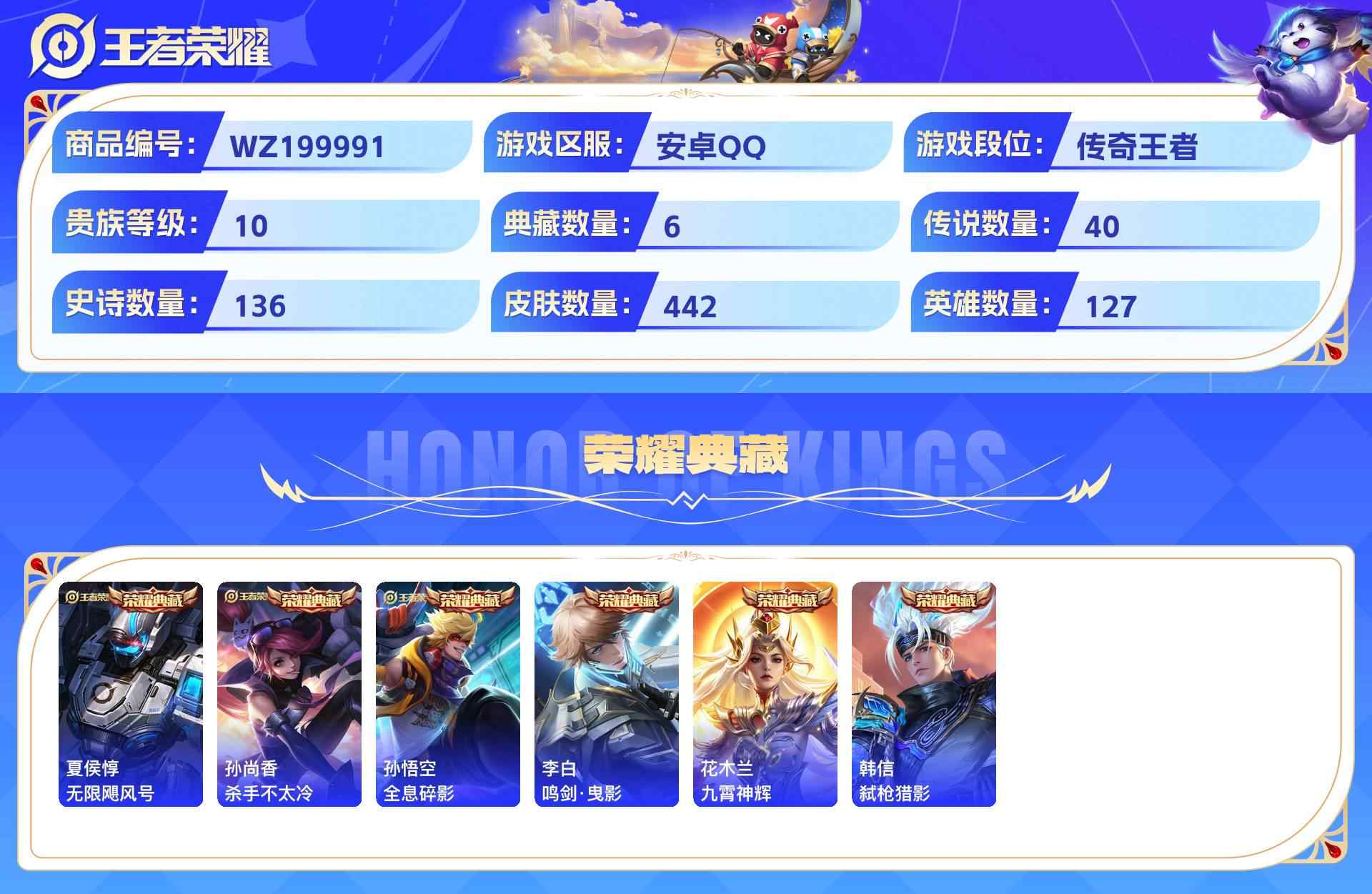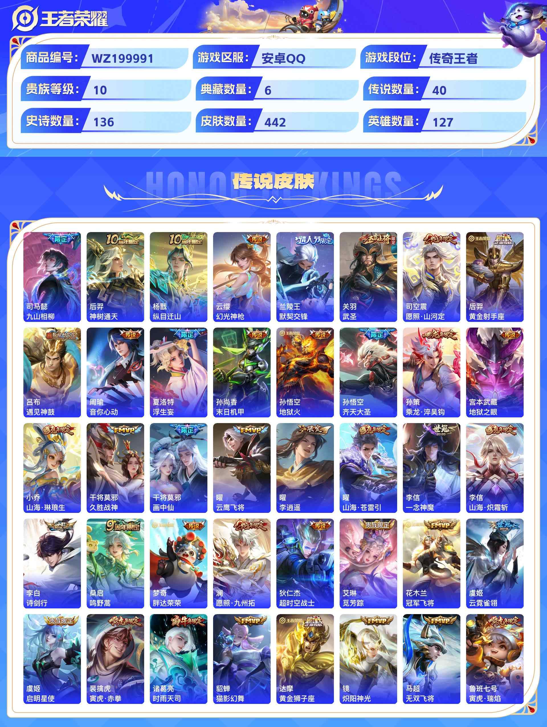 wz199991|精品金标号安卓qq 贵族10级1金标(曜) 442皮6典藏 (无限飓风号杀手不太冷全息碎影鸣剑·曳影九霄神辉弑呛猎影)1珍品传说 (怪盗基德)1无双(器灵·螭龙剑) 40传说(九山相柳神树通天纵目迁山幻光神呛默契交锋武圣愿照·山河定黄金射手座) 136史诗4星传说19个性按键1天幕