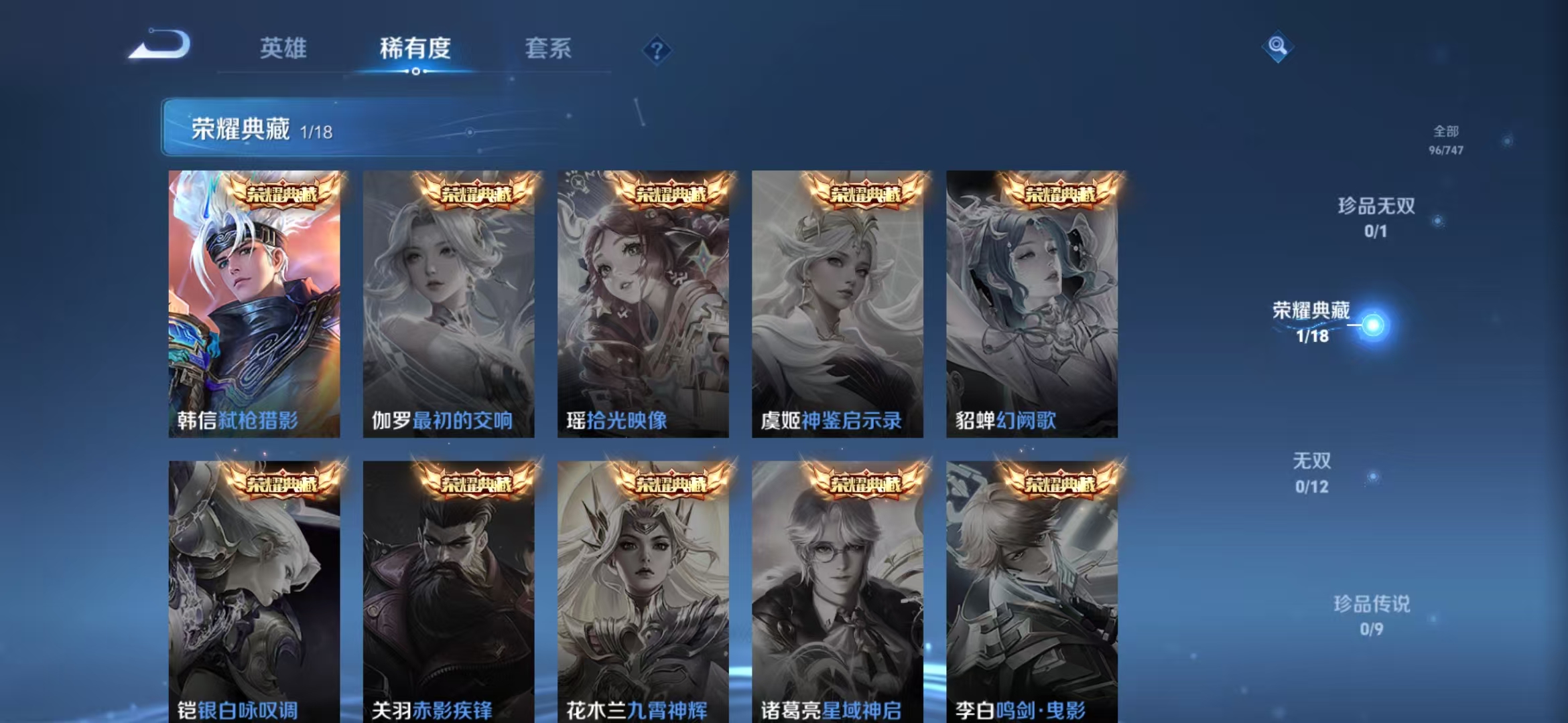 txwz25101 李 v5 96皮 1典藏-韩信 7传说-久胜战神,神树通天,黄金射手座,幻光神呛,鸣野蒿,诗剑行,李 22史诗龙之律动,舞动绿茵,遇见神鹿,女仆咖啡,缤纷独角兽,水晶猎龙者,高山流水,特工魅影,星夜王子,暗夜猫娘,德古拉伯爵,皇家上将,水果甜心,冰冠公主,无心,神器·万象笔,摇滚巨星,五谷丰年,未来纪元,黄金分割率,天狼溯光者,魅力维加斯